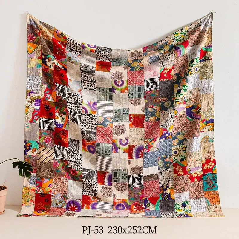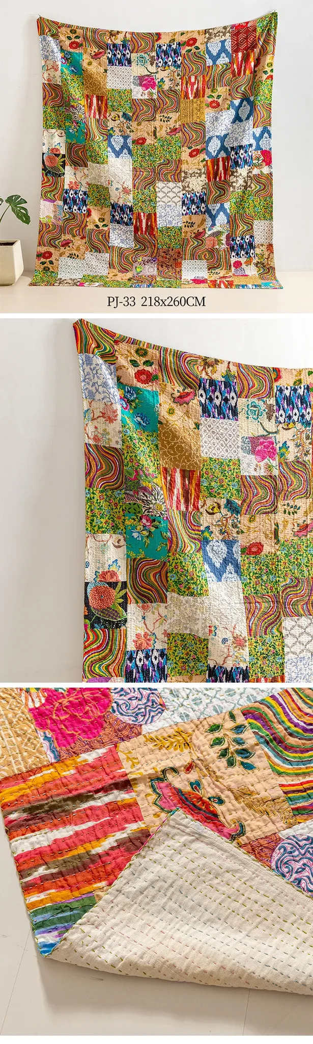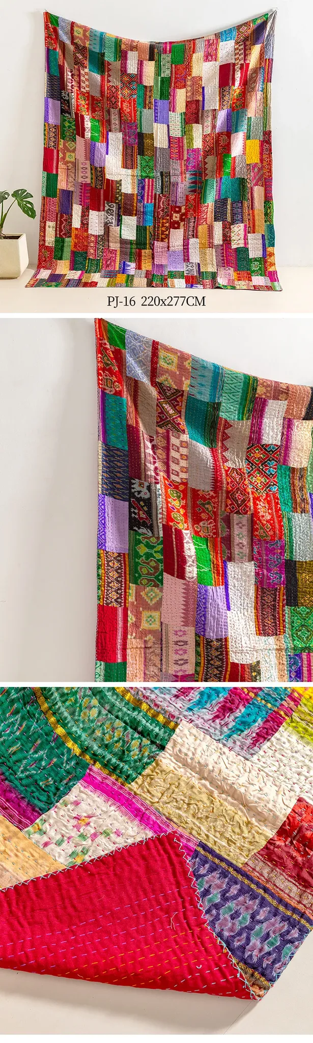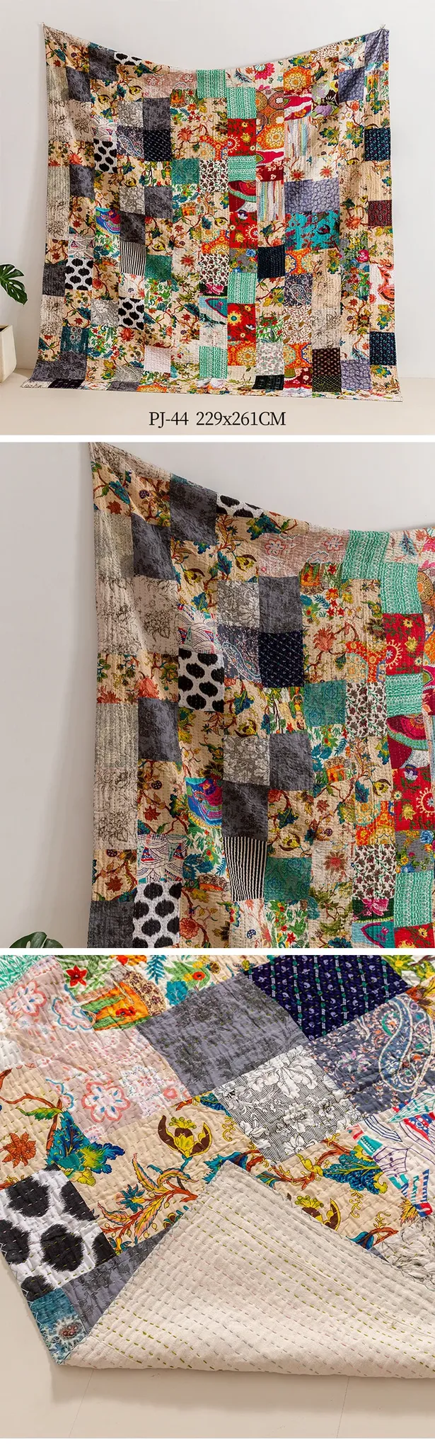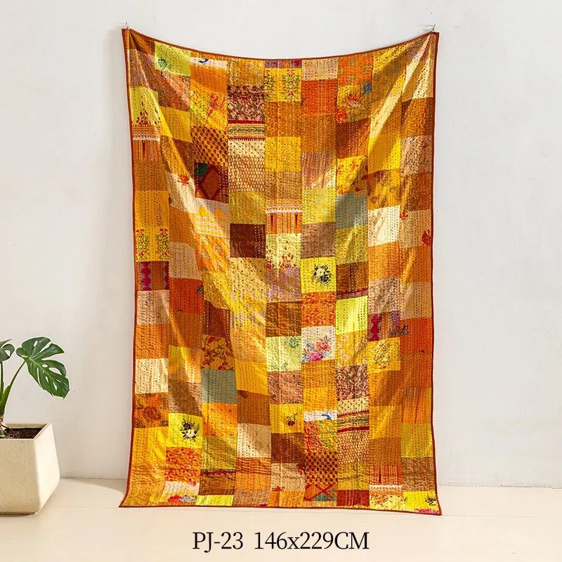 インド製手作りパッチワークキルトカバー - DIYカーテン、クッション、民族風ファッション、テーブルクロス、ソファカバーに最適!あなたの空間を華やかに彩るアイテムです。