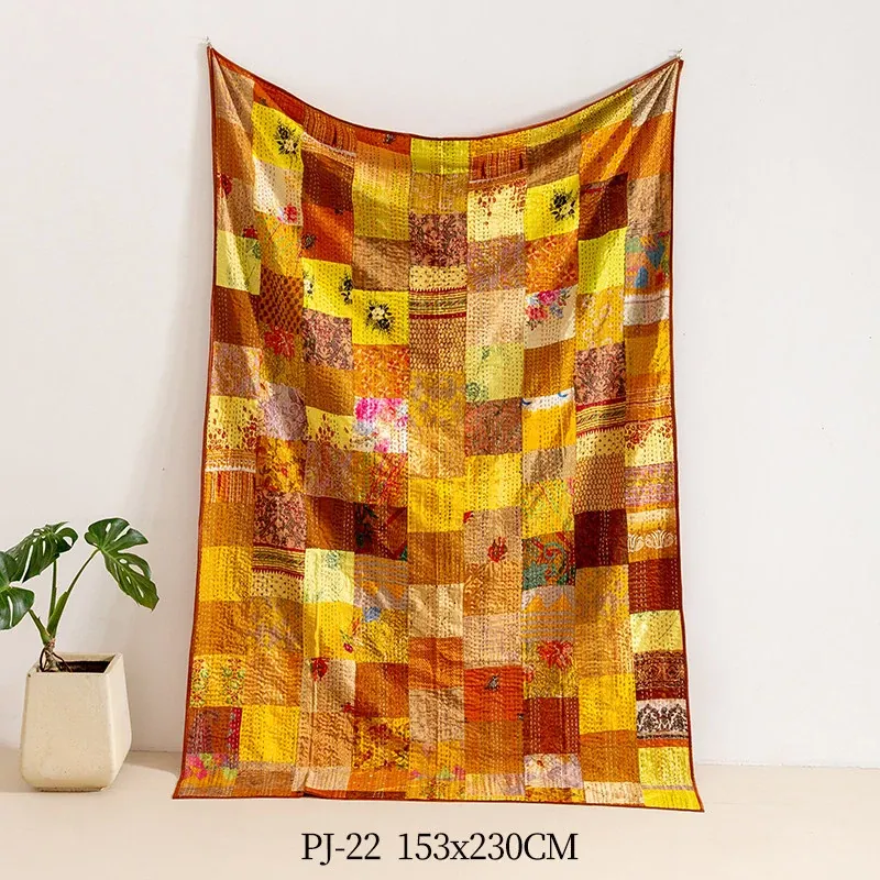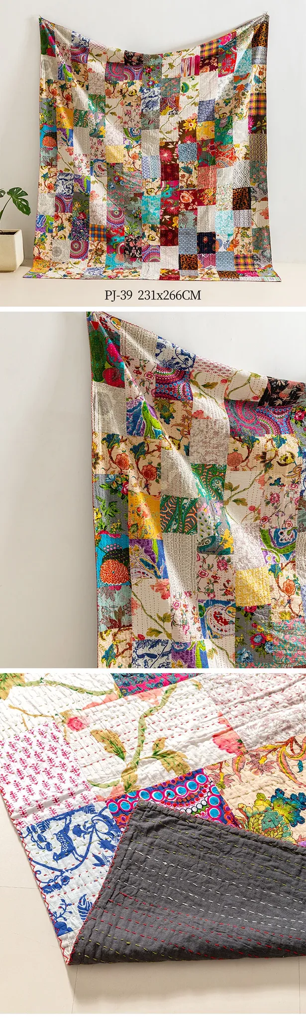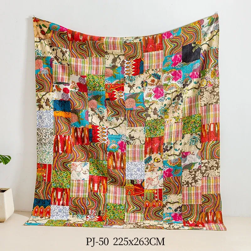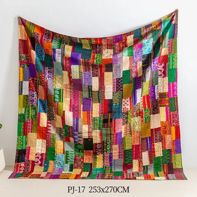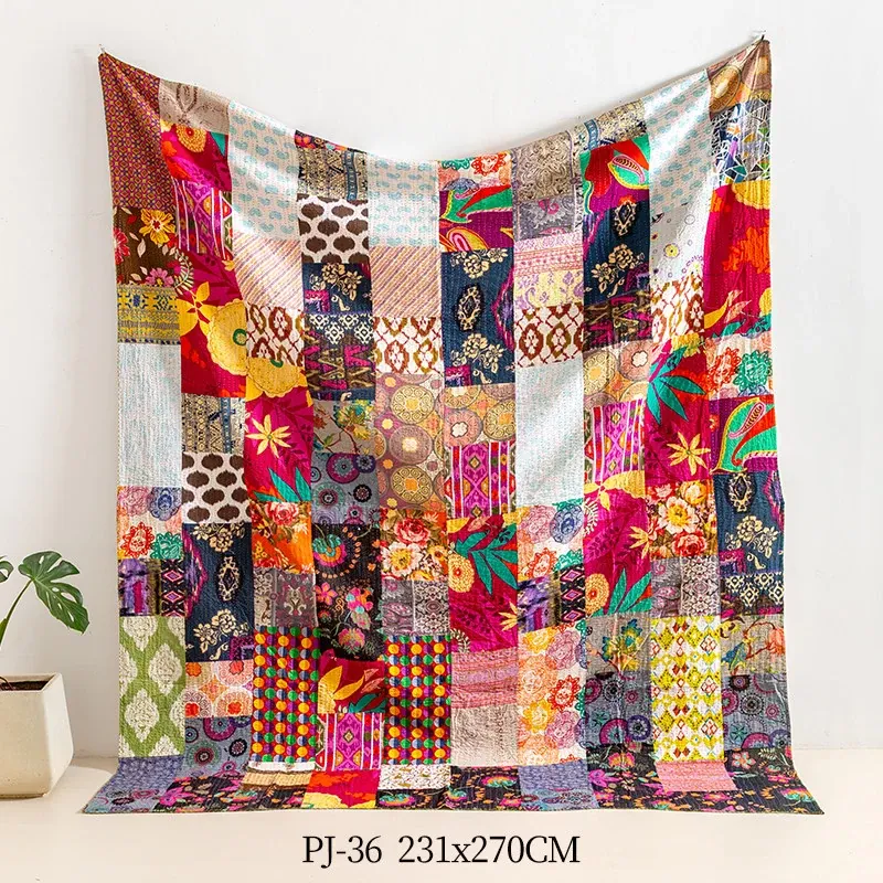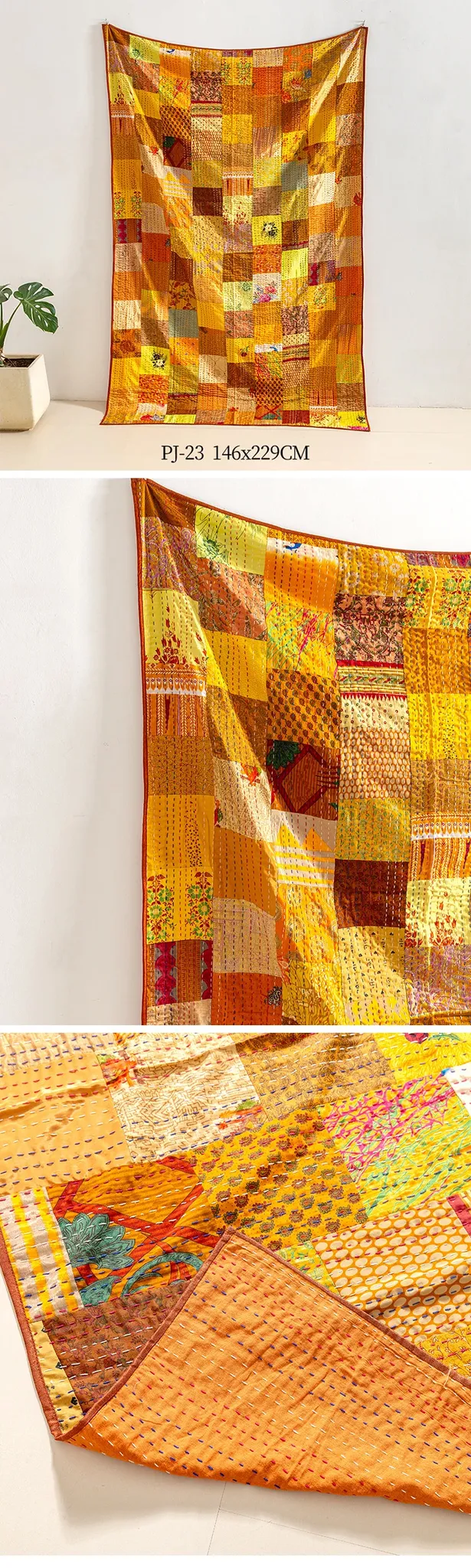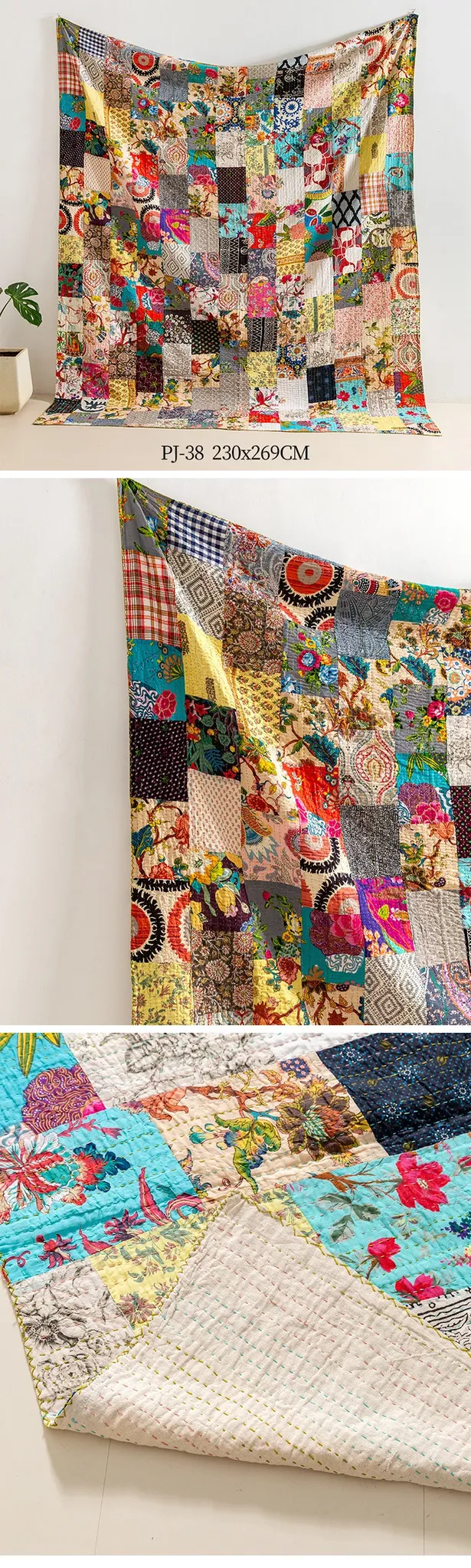 インド製手作りパッチワークキルトカバー - DIYカーテン、クッション、民族風ファッション、テーブルクロス、ソファカバーに最適!あなたの空間を華やかに彩るアイテムです。