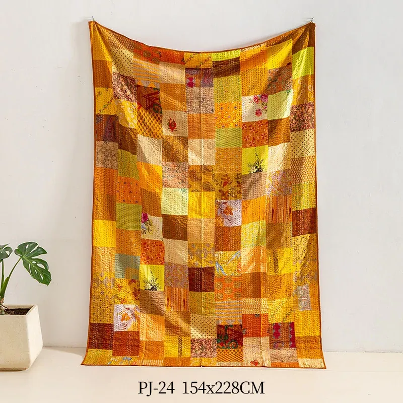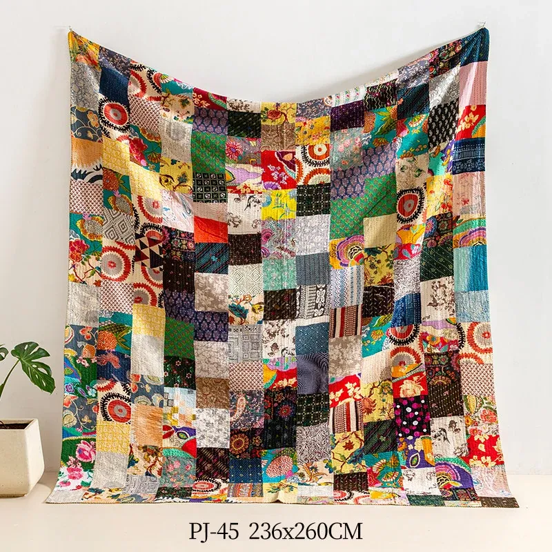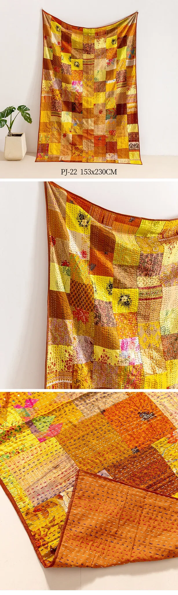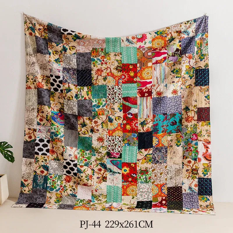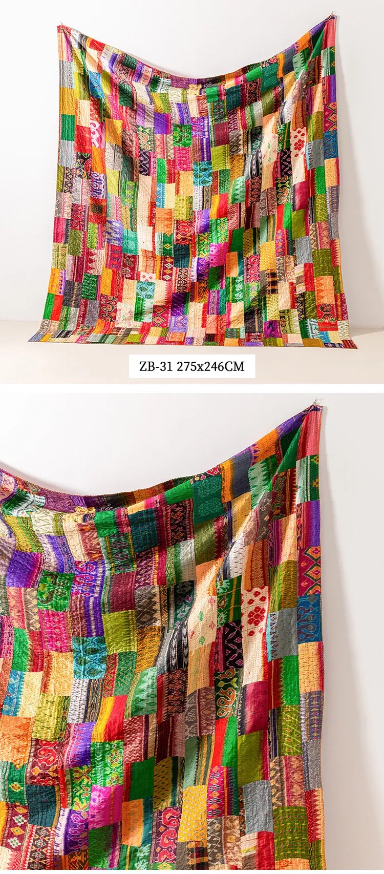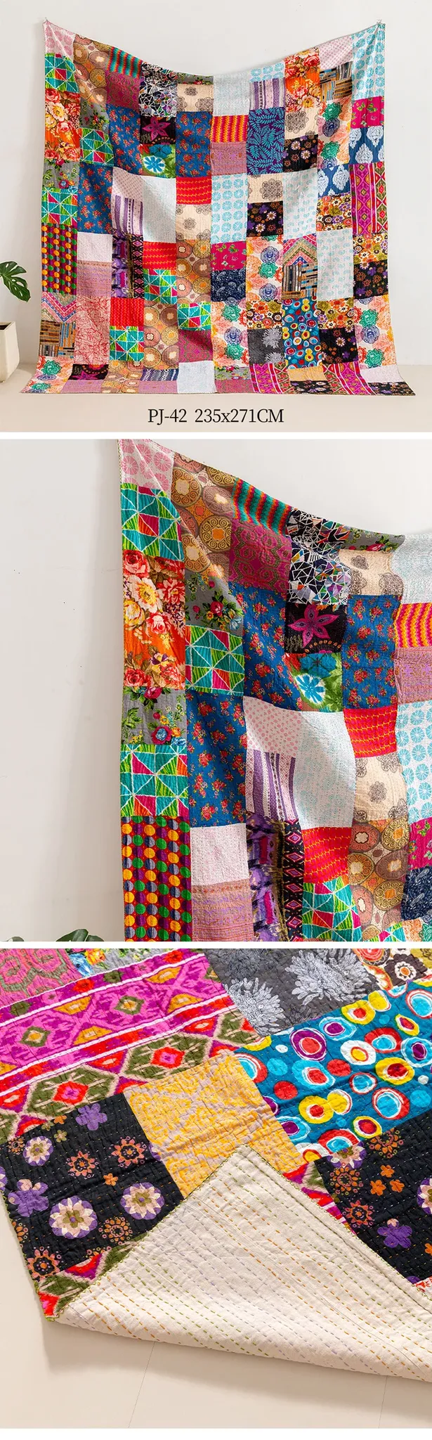 インド製手作りパッチワークキルトカバー - DIYカーテン、クッション、民族風ファッション、テーブルクロス、ソファカバーに最適!あなたの空間を華やかに彩るアイテムです。