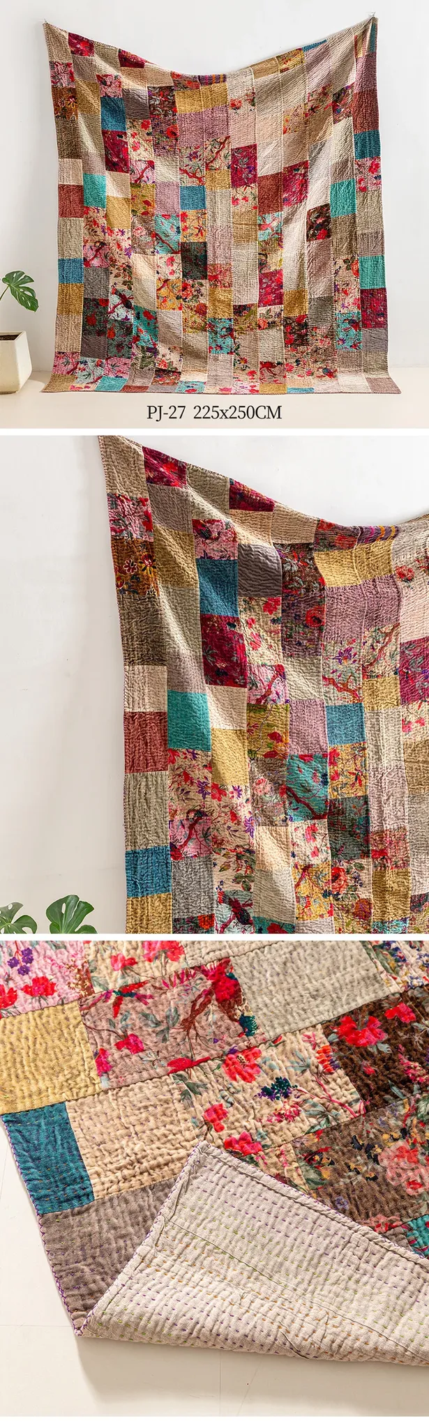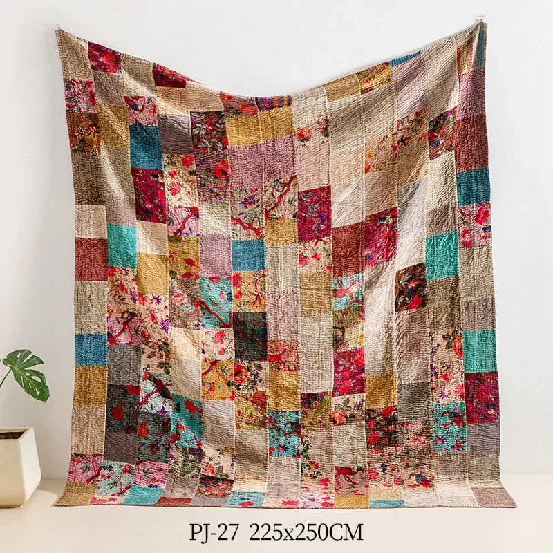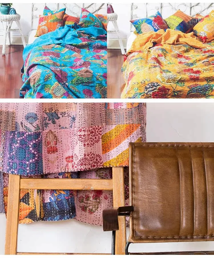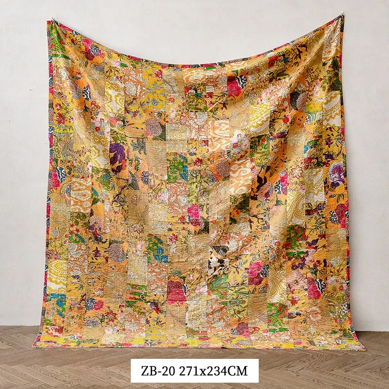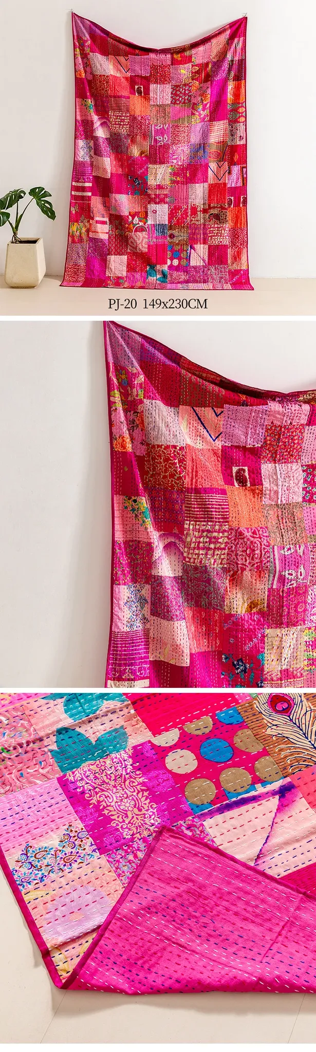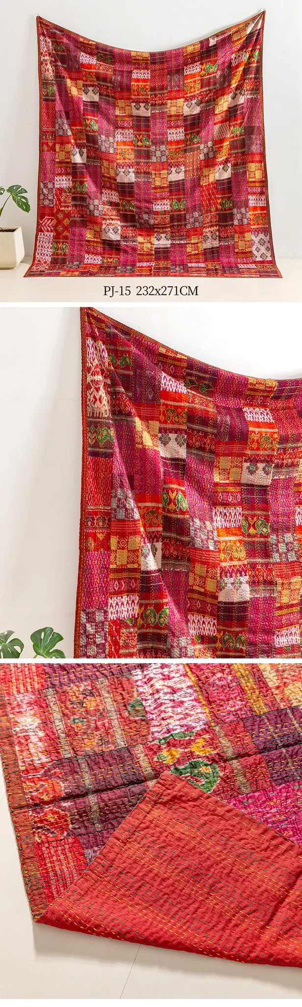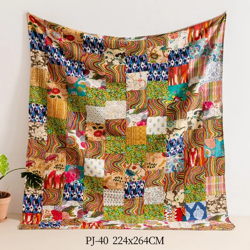 インド製手作りパッチワークキルトカバー - DIYカーテン、クッション、民族風ファッション、テーブルクロス、ソファカバーに最適!あなたの空間を華やかに彩るアイテムです。