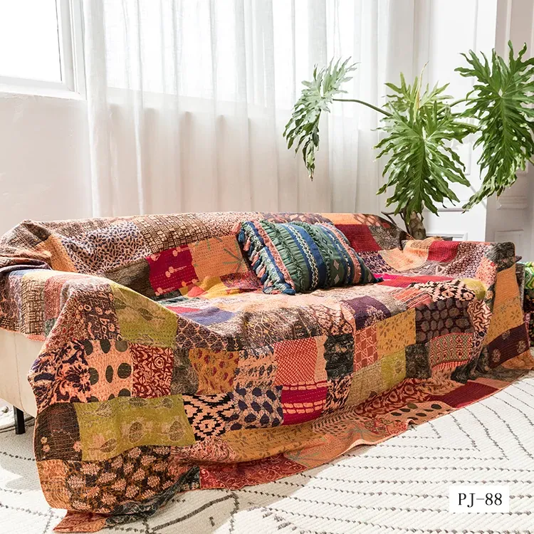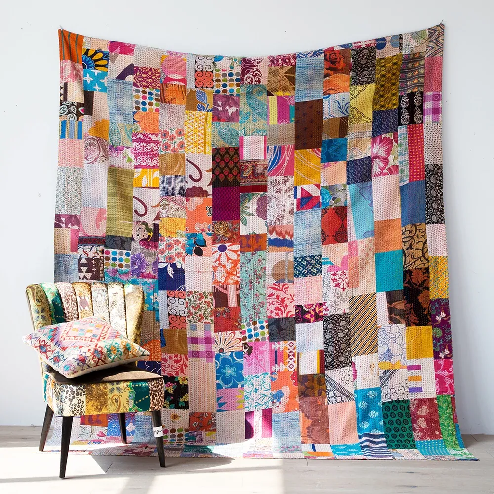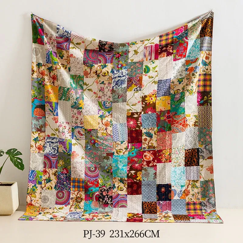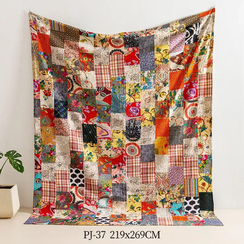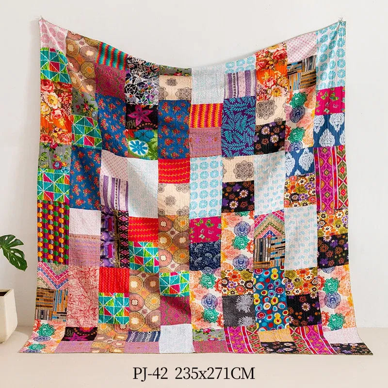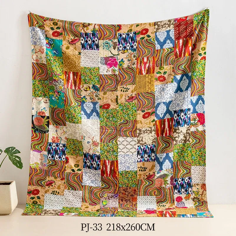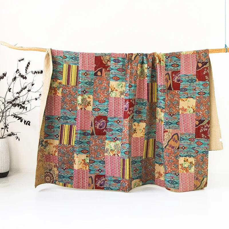 インド製手作りパッチワークキルトカバー - DIYカーテン、クッション、民族風ファッション、テーブルクロス、ソファカバーに最適!あなたの空間を華やかに彩るアイテムです。