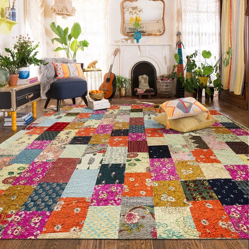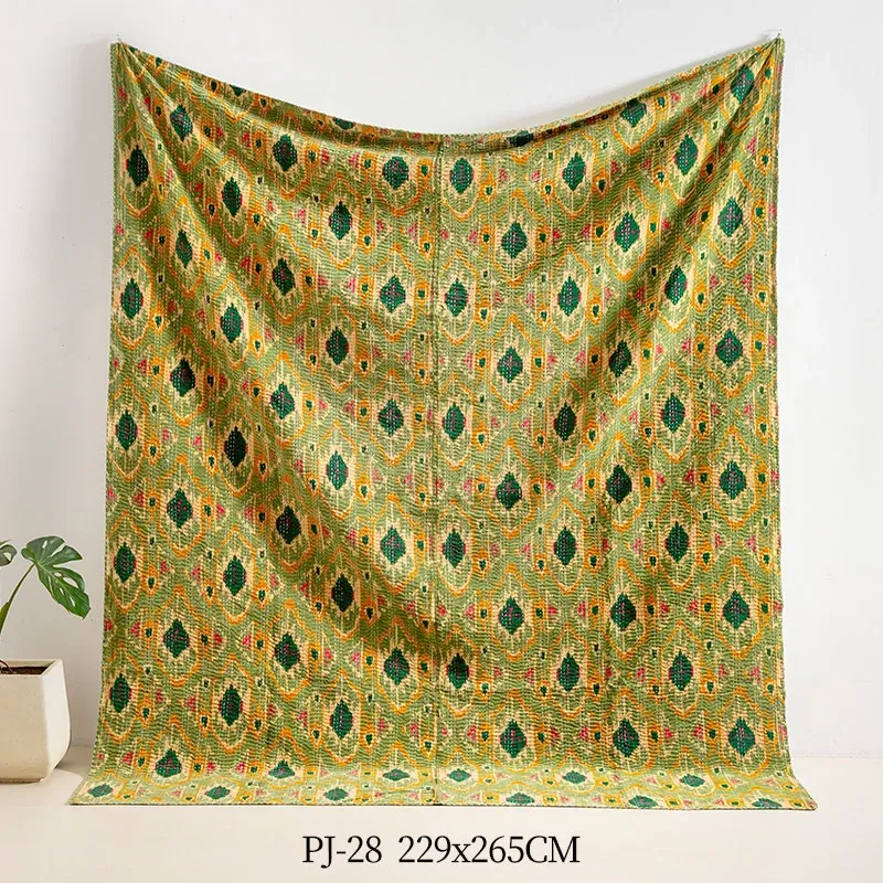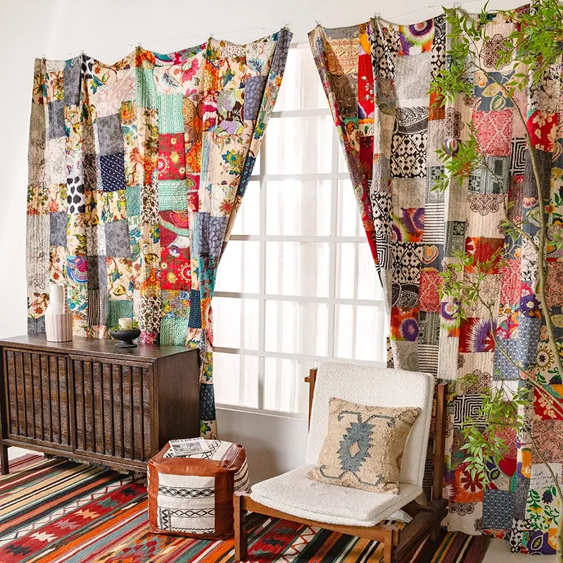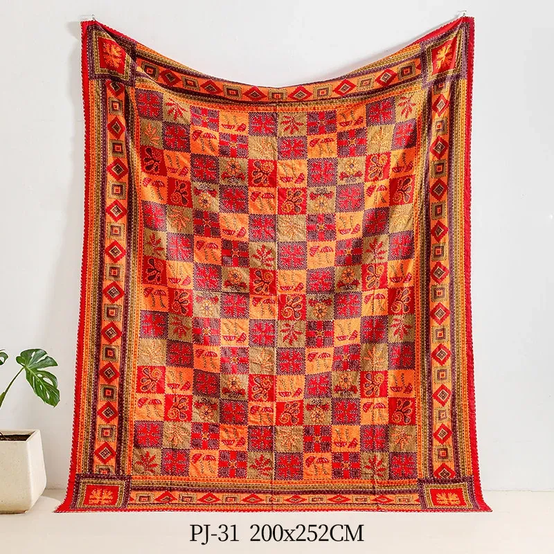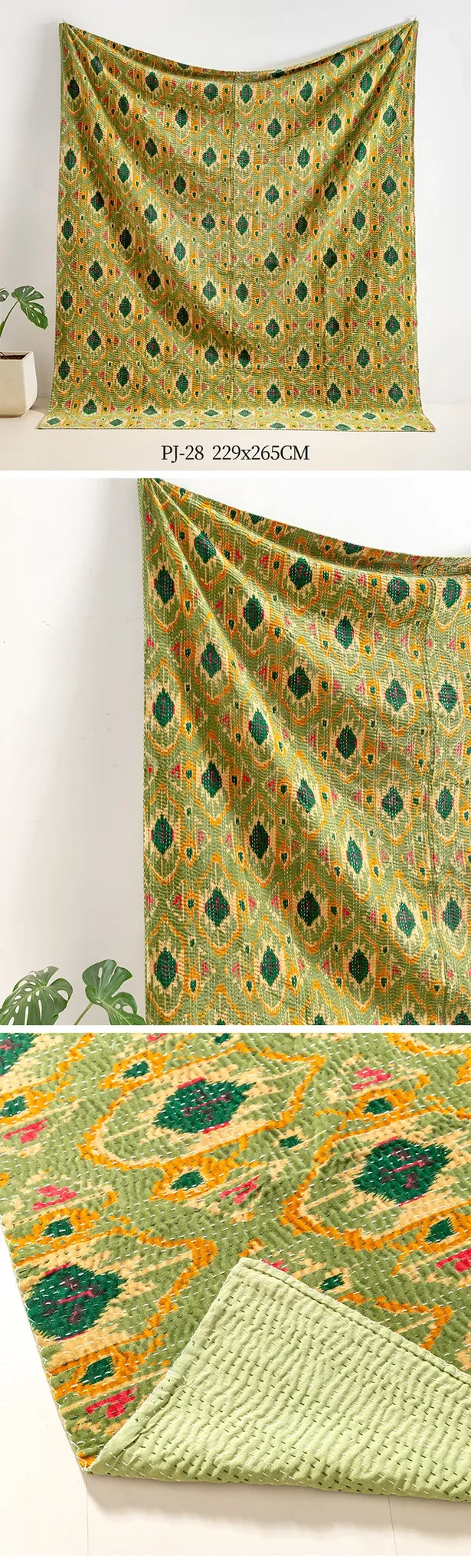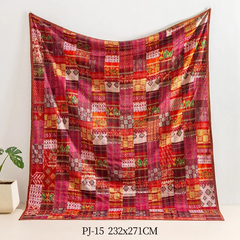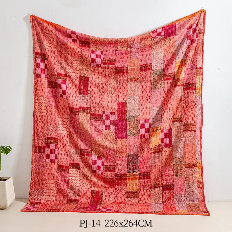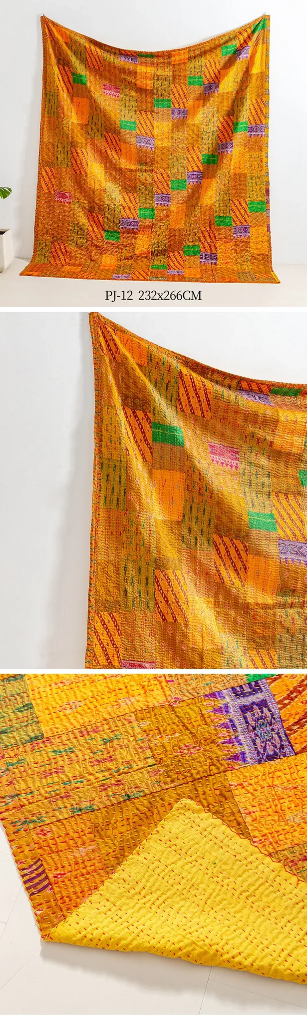 インド製手作りパッチワークキルトカバー - DIYカーテン、クッション、民族風ファッション、テーブルクロス、ソファカバーに最適!あなたの空間を華やかに彩るアイテムです。