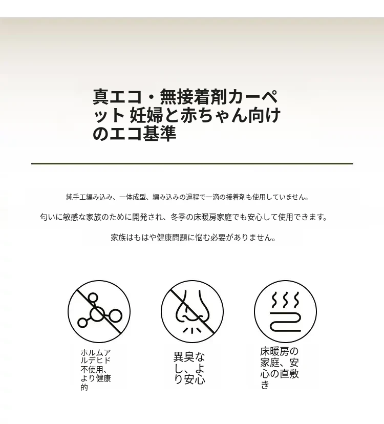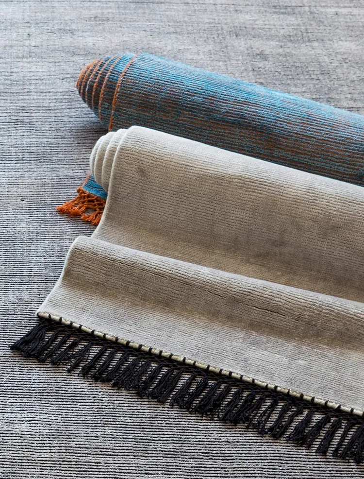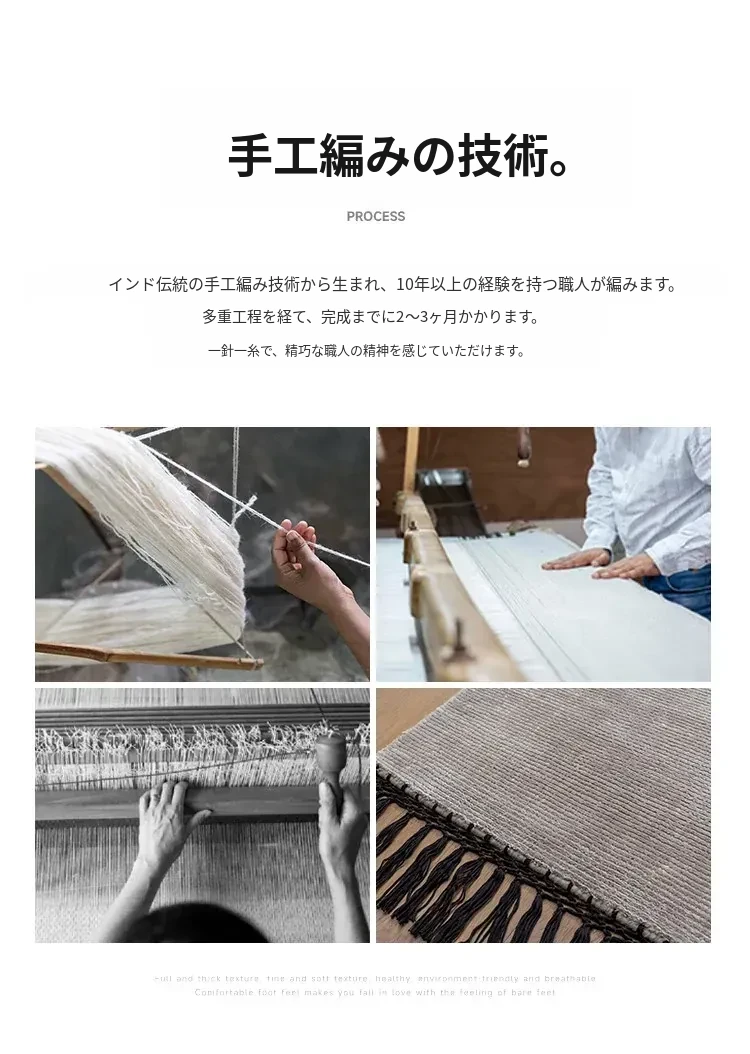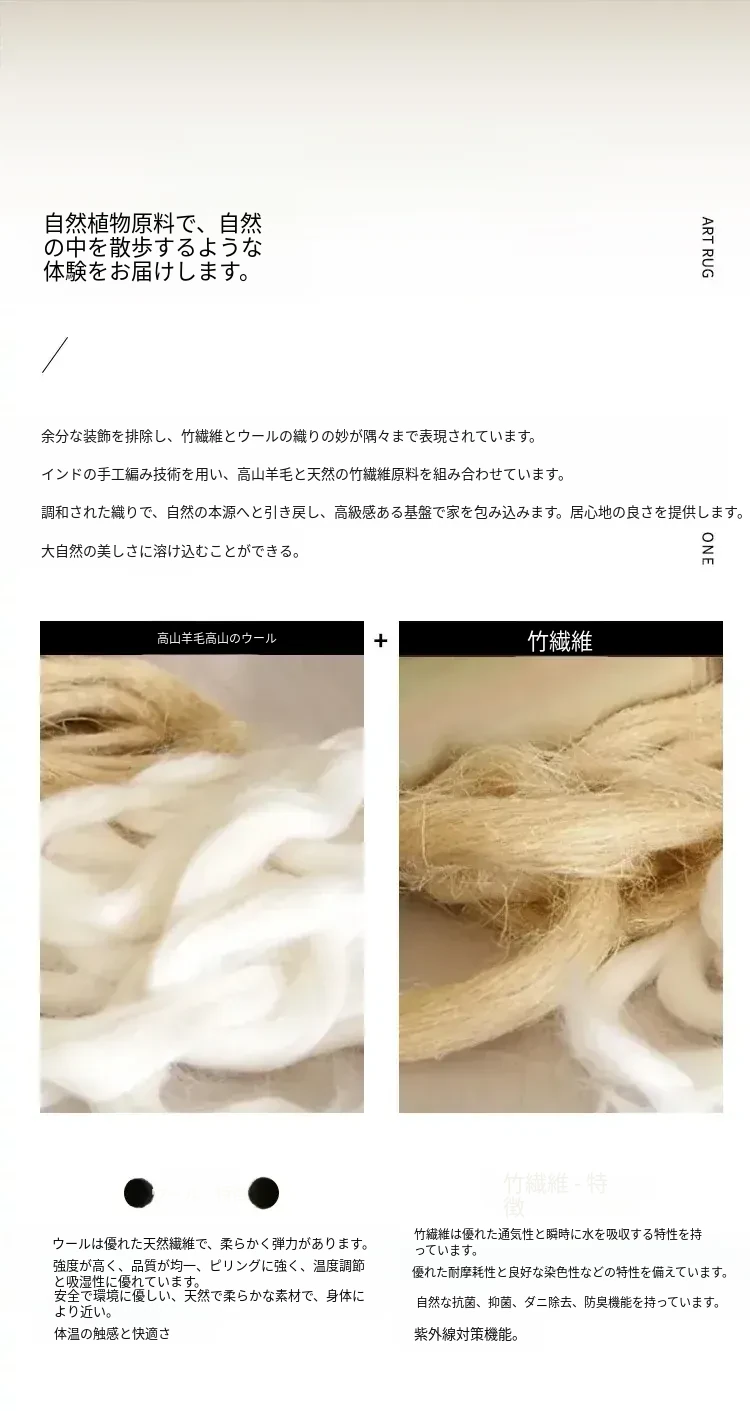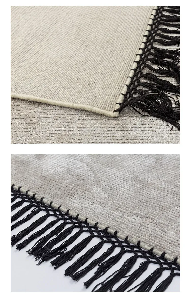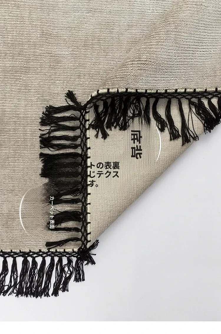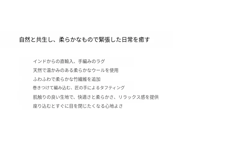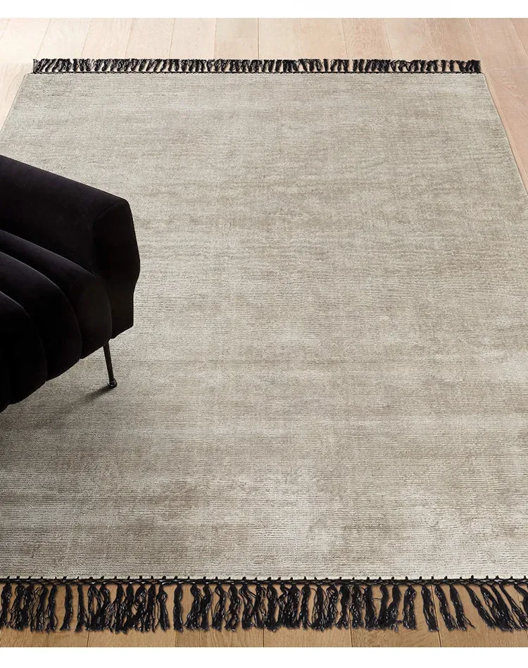 フォーマルな空間にぴったり!無ホルムアルデヒド・無接着剤の高級感漂うグレーのラグ。輸入手作り、モダンな軽奢スタイルで、竹繊維シルクの心地よさをお楽しみください。
