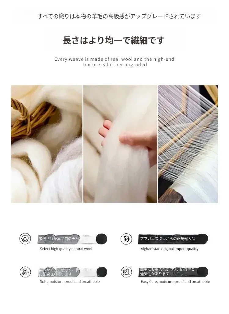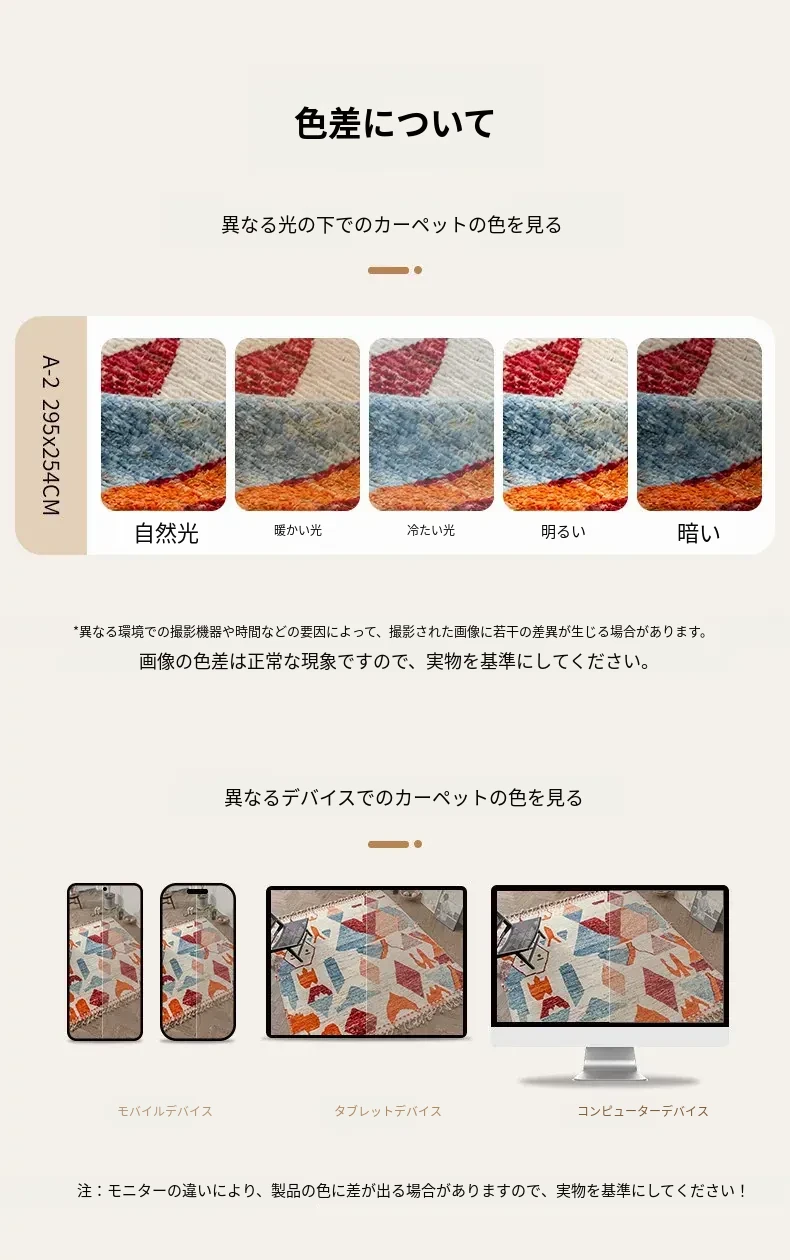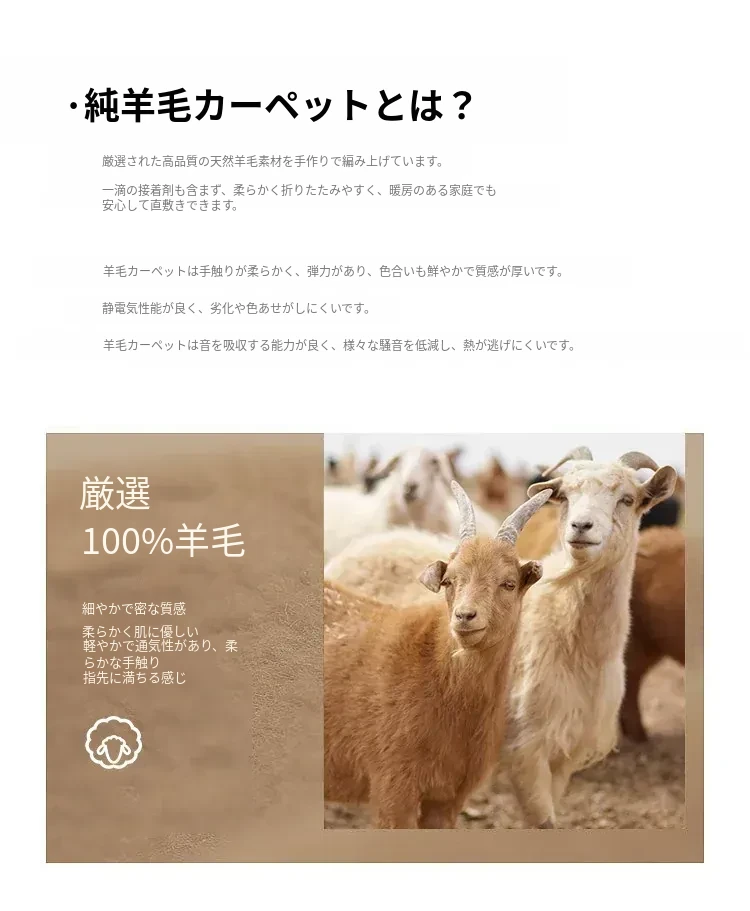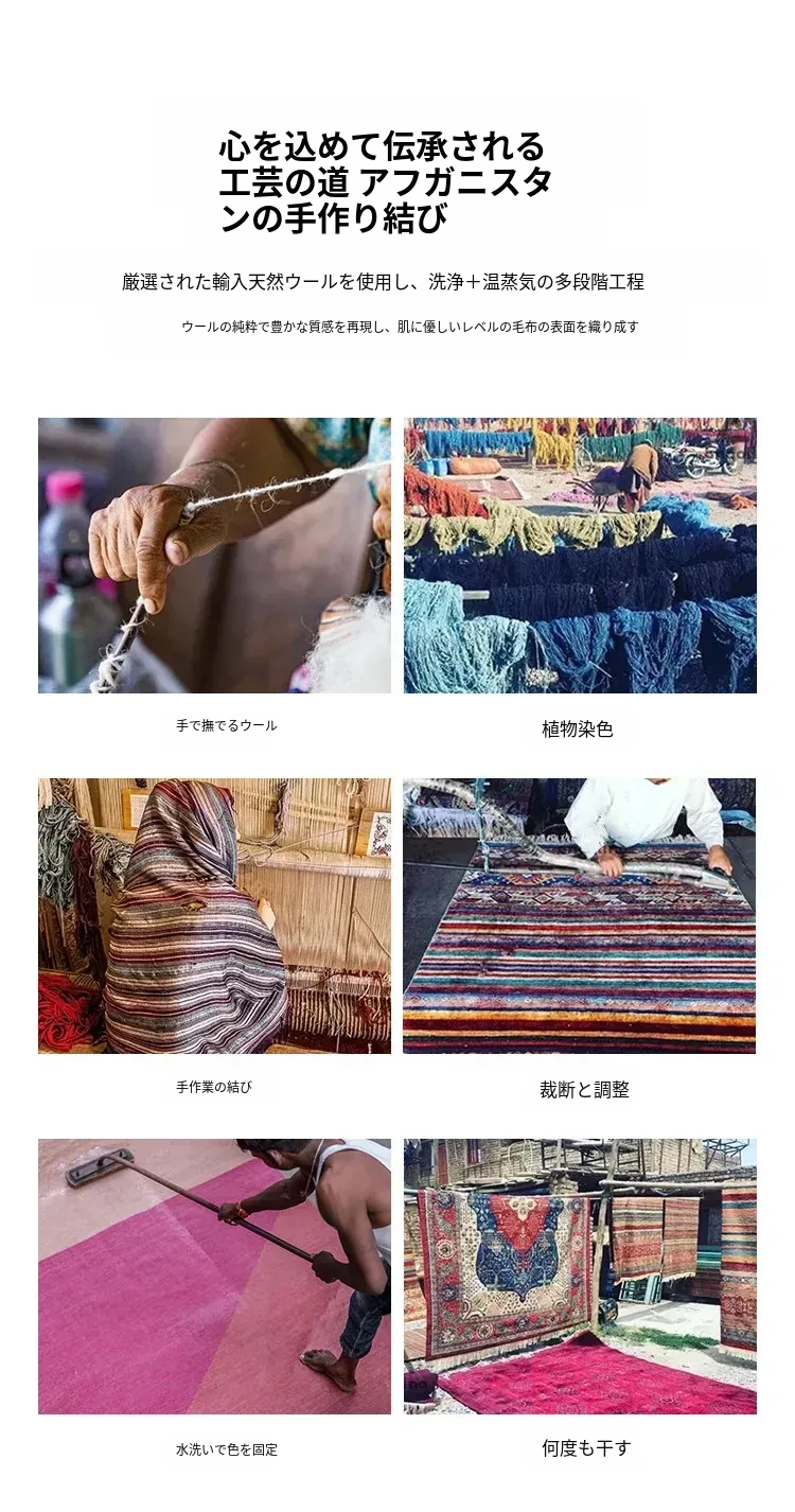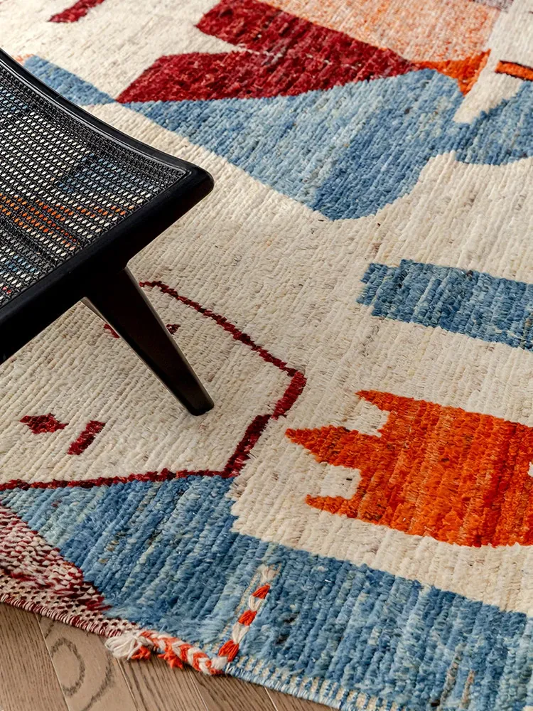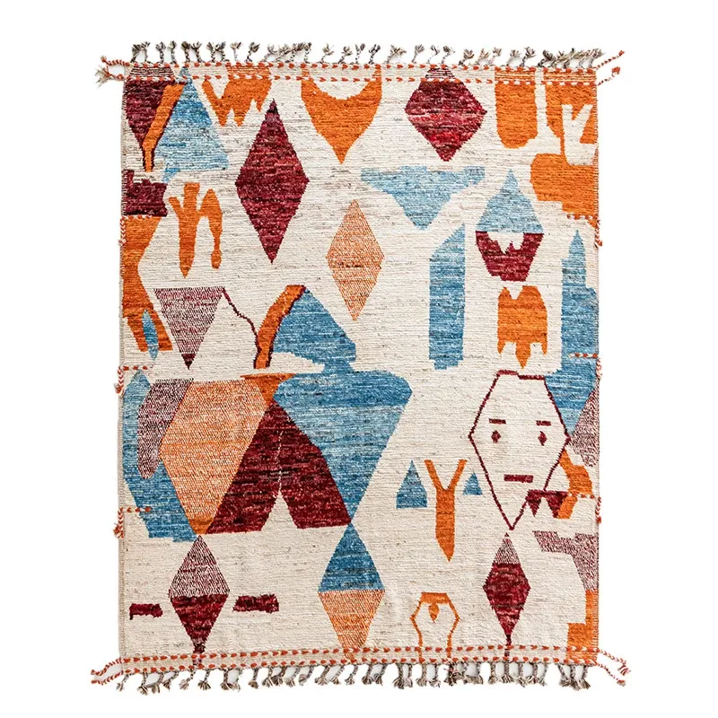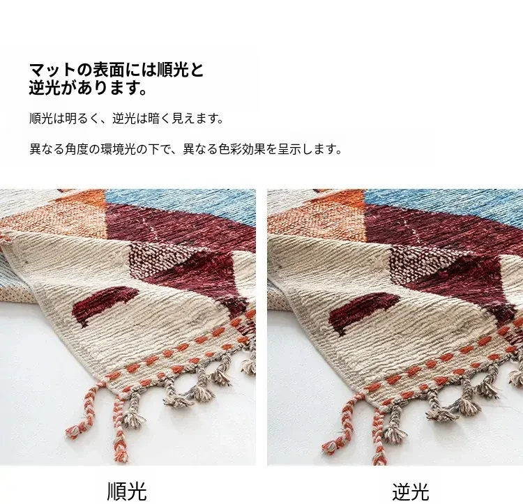 ビジュアルテイストの輸入手作りウールラグ - モダンなモロッコスタイルで、リビングにぴったり!暖かく、音を吸収し、ノン接着剤・ノンホルムアルデヒドで安心。快適な空間を演出します!
