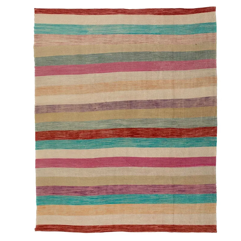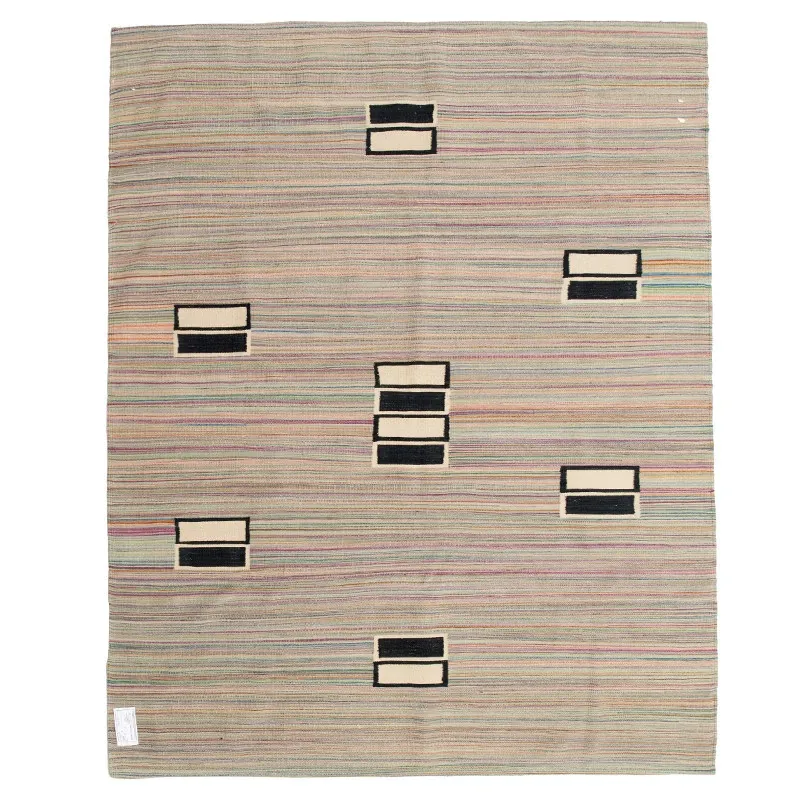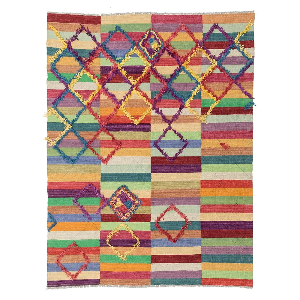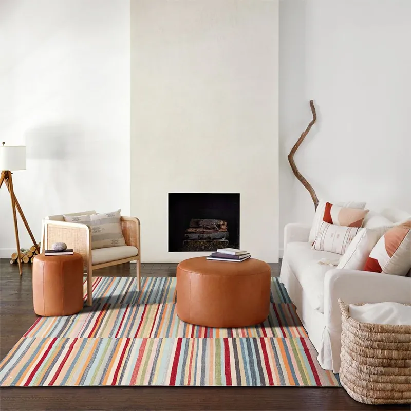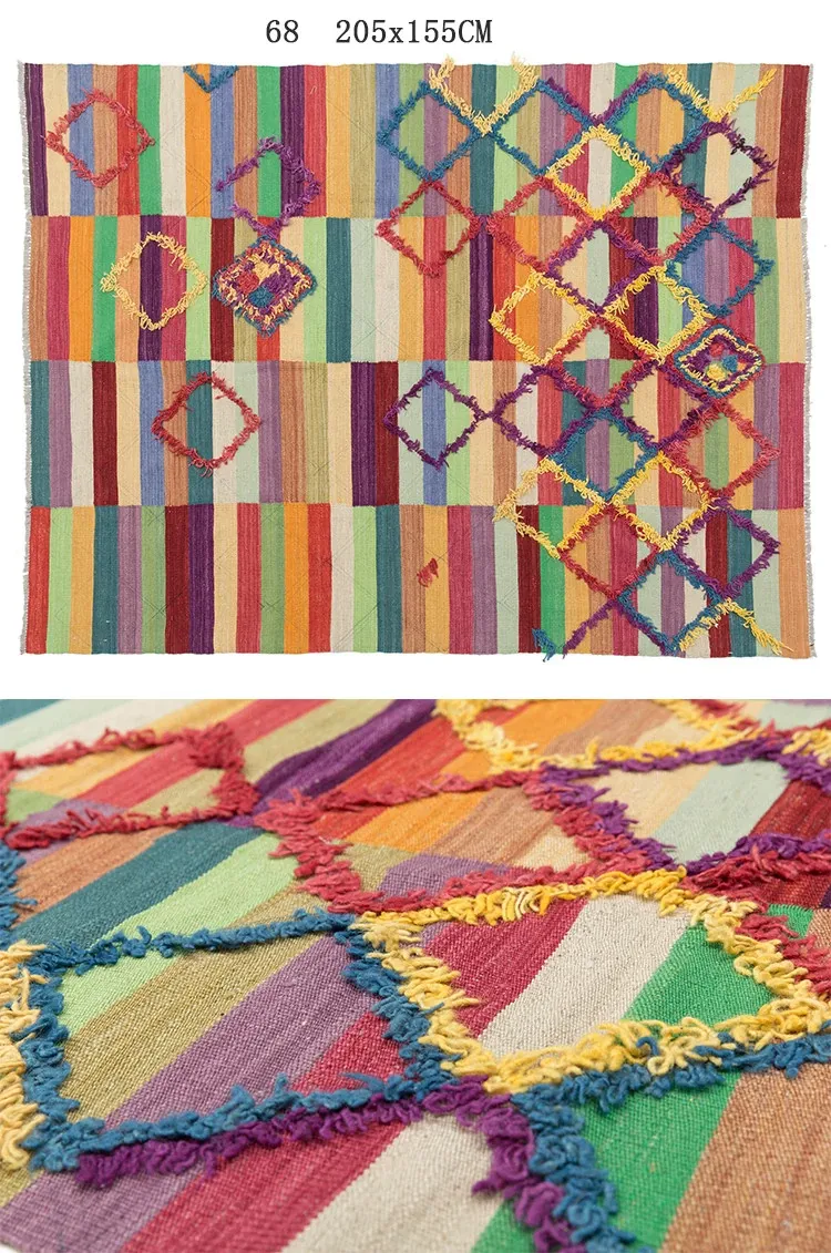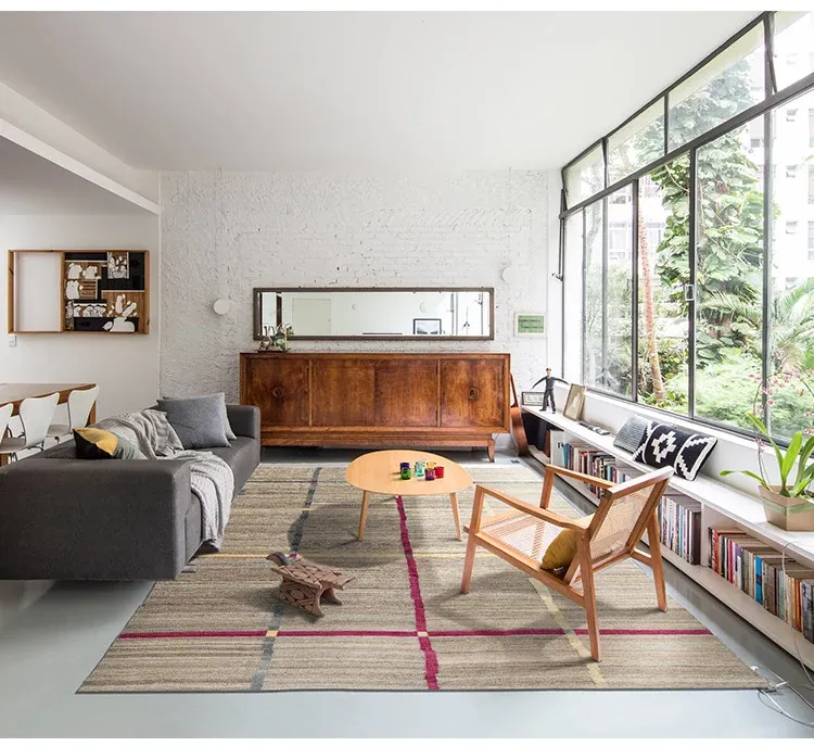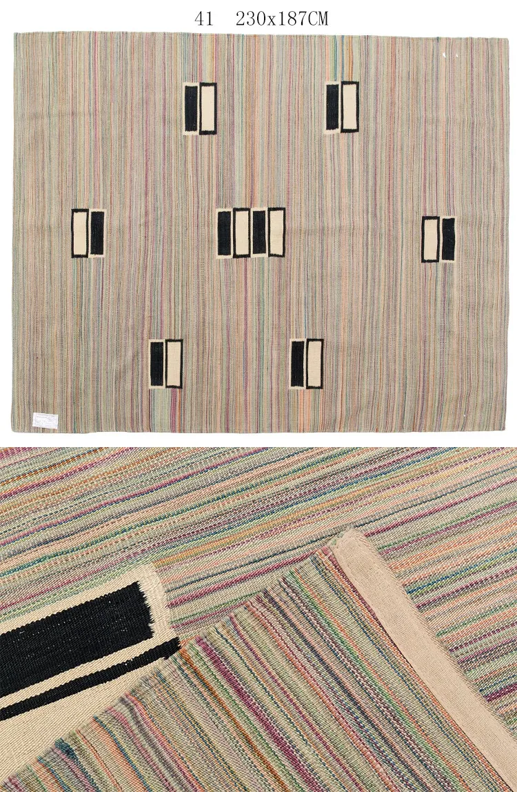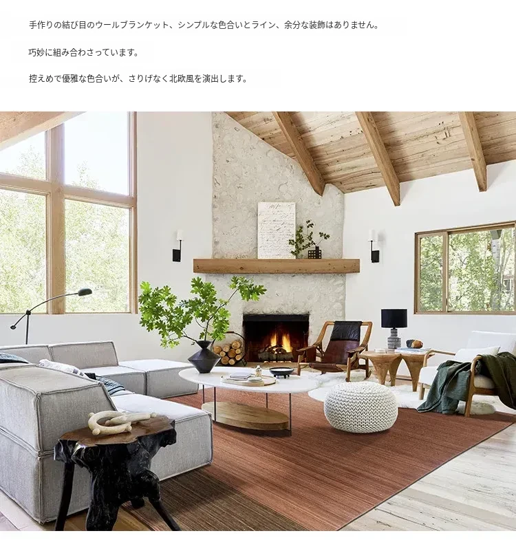 パキスタン製ハンドメイドウールラグ - 現代的な幾何学模様と北欧の侘び寂び美学を融合した、心地よい寝室やリビングにぴったりのカーペット。おしゃれな空間作りをサポートします!