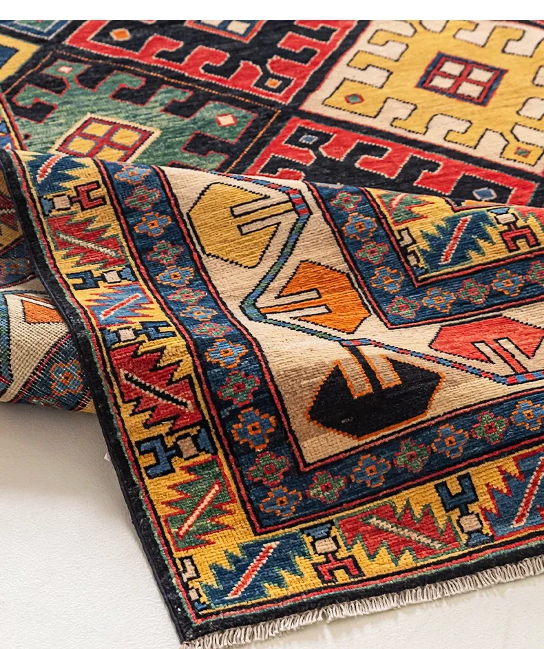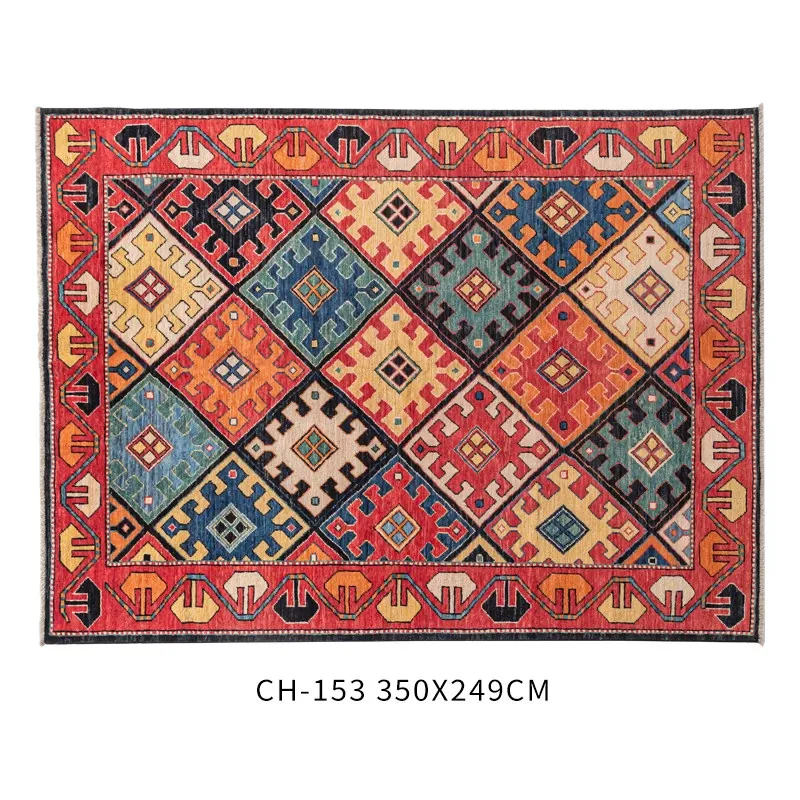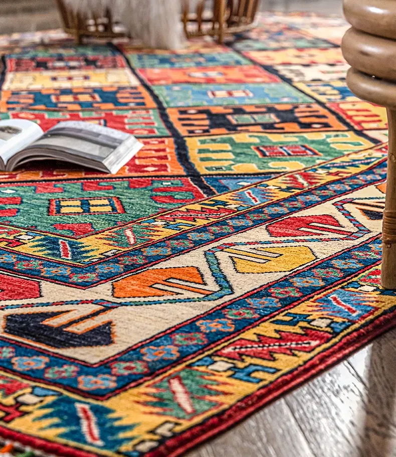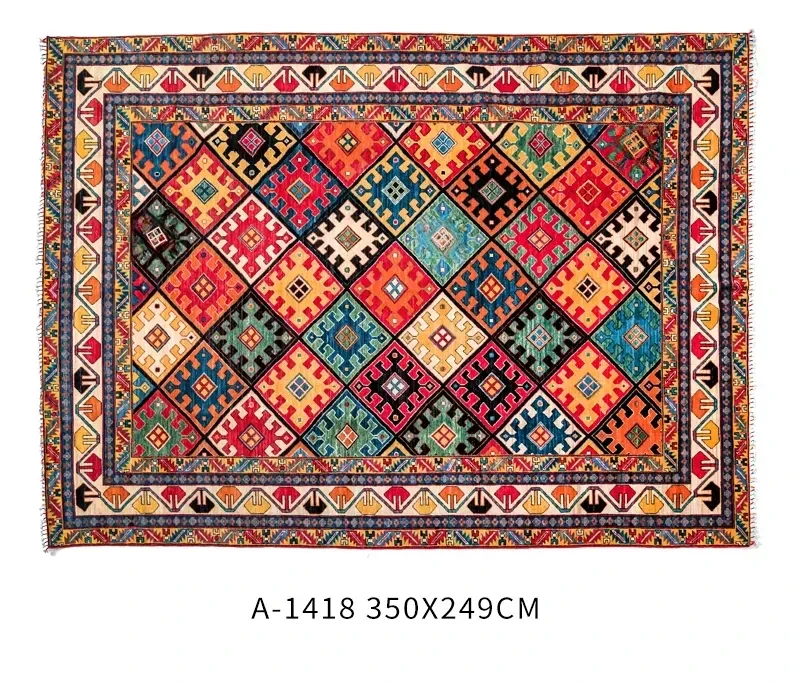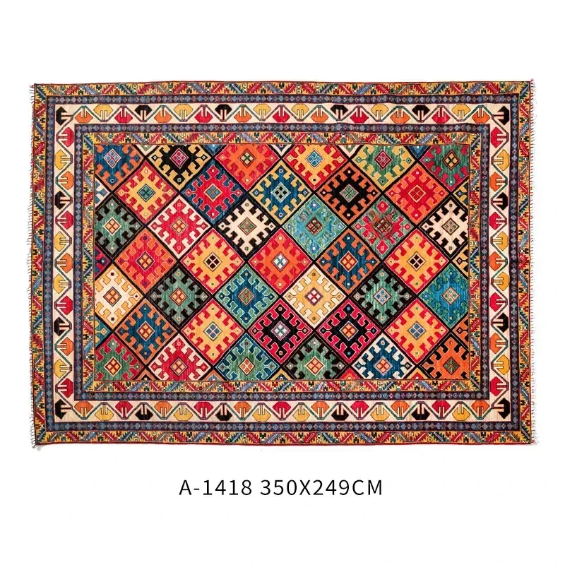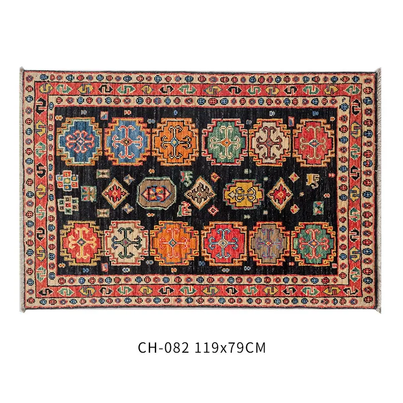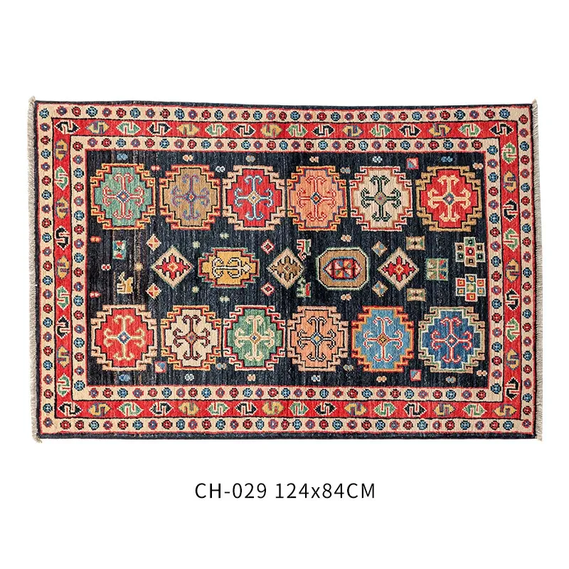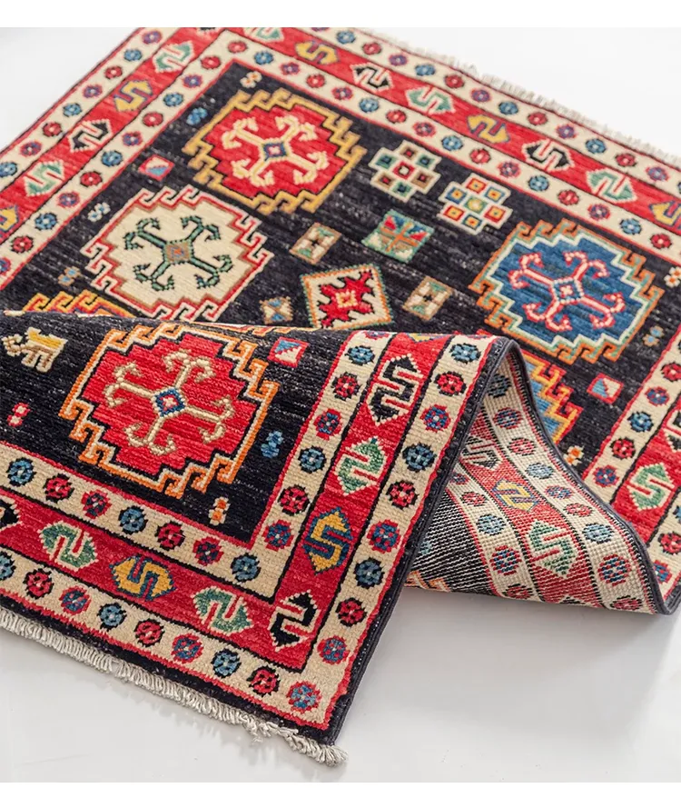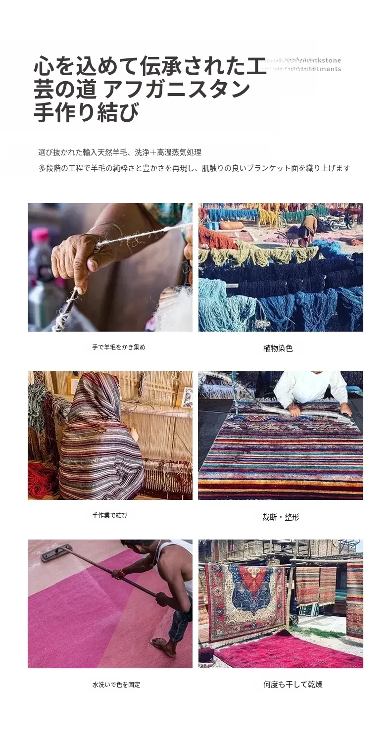 アフガニスタン直輸入の手織りウールカーペット - 高級感溢れるリビングやソファ、テーブルに最適!無接着剤で安心の品質、コレクションにもぴったりな一品。