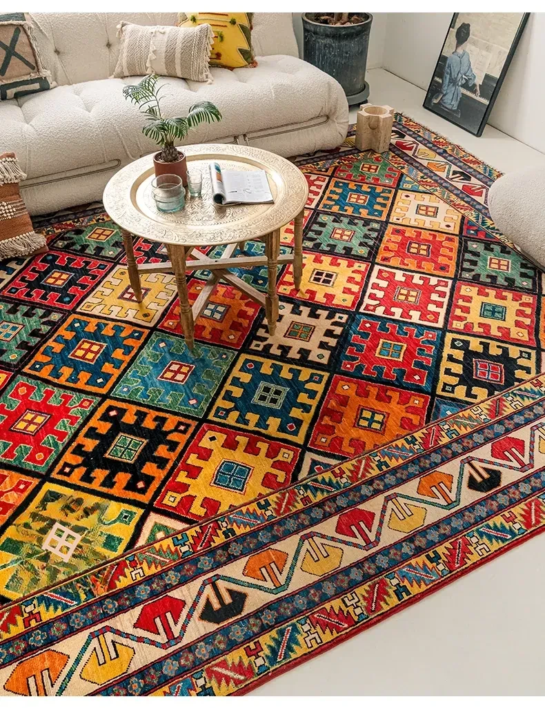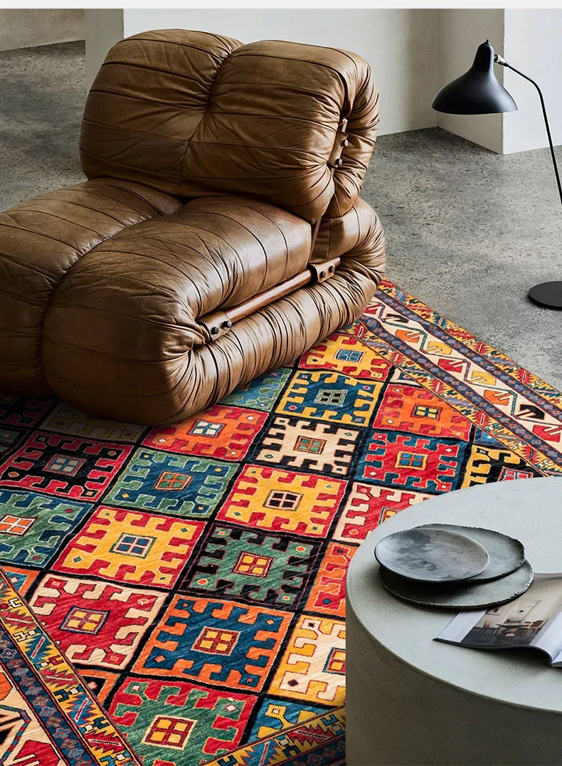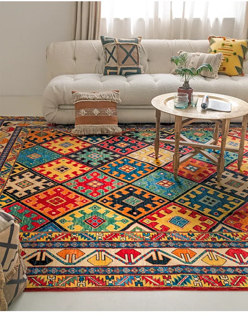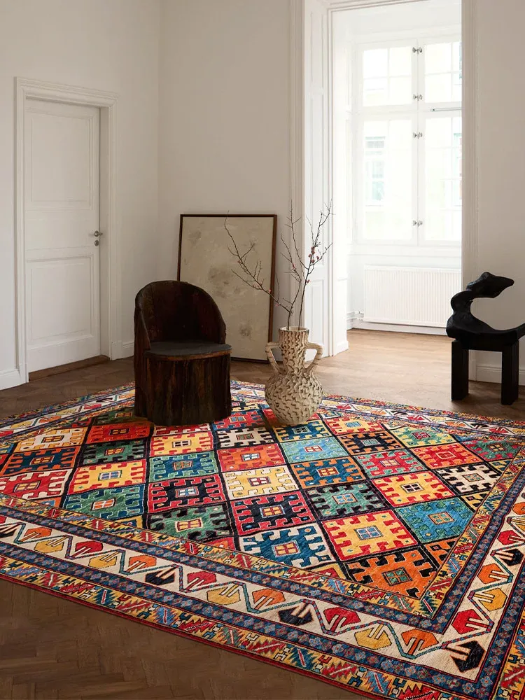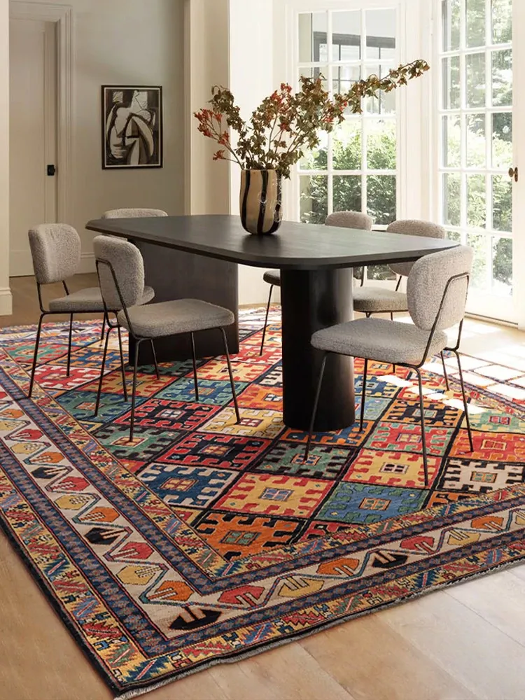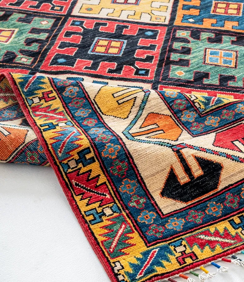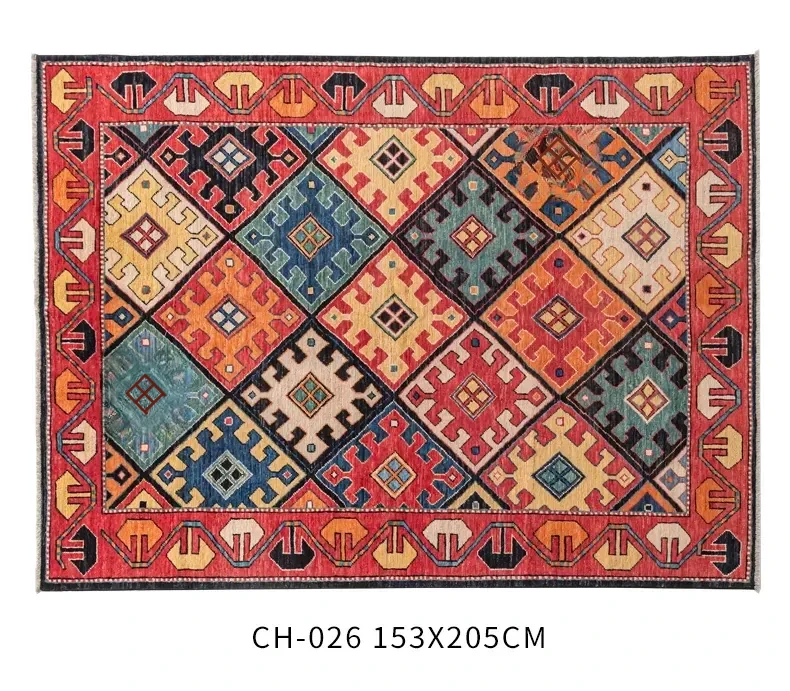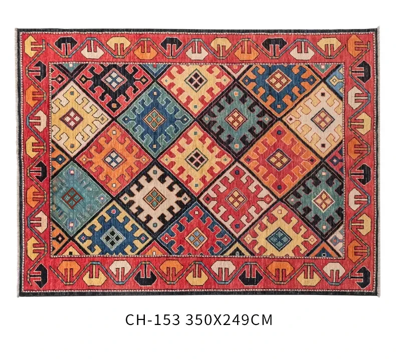 アフガニスタン直輸入の手織りウールカーペット - 高級感溢れるリビングやソファ、テーブルに最適!無接着剤で安心の品質、コレクションにもぴったりな一品。