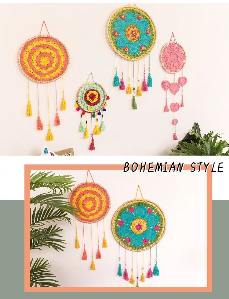 インド直輸入 手作りボヘミアンスタイルのドリームキャッチャー タペストリー 和室用クッション 可愛い抱き枕 クッションカバー