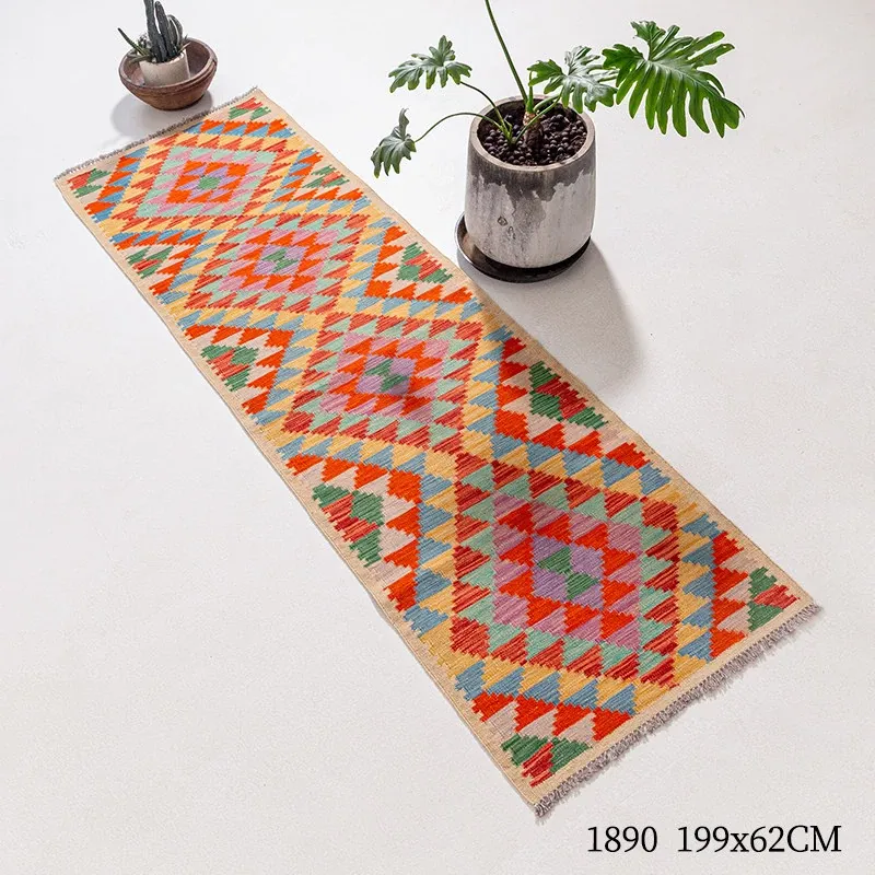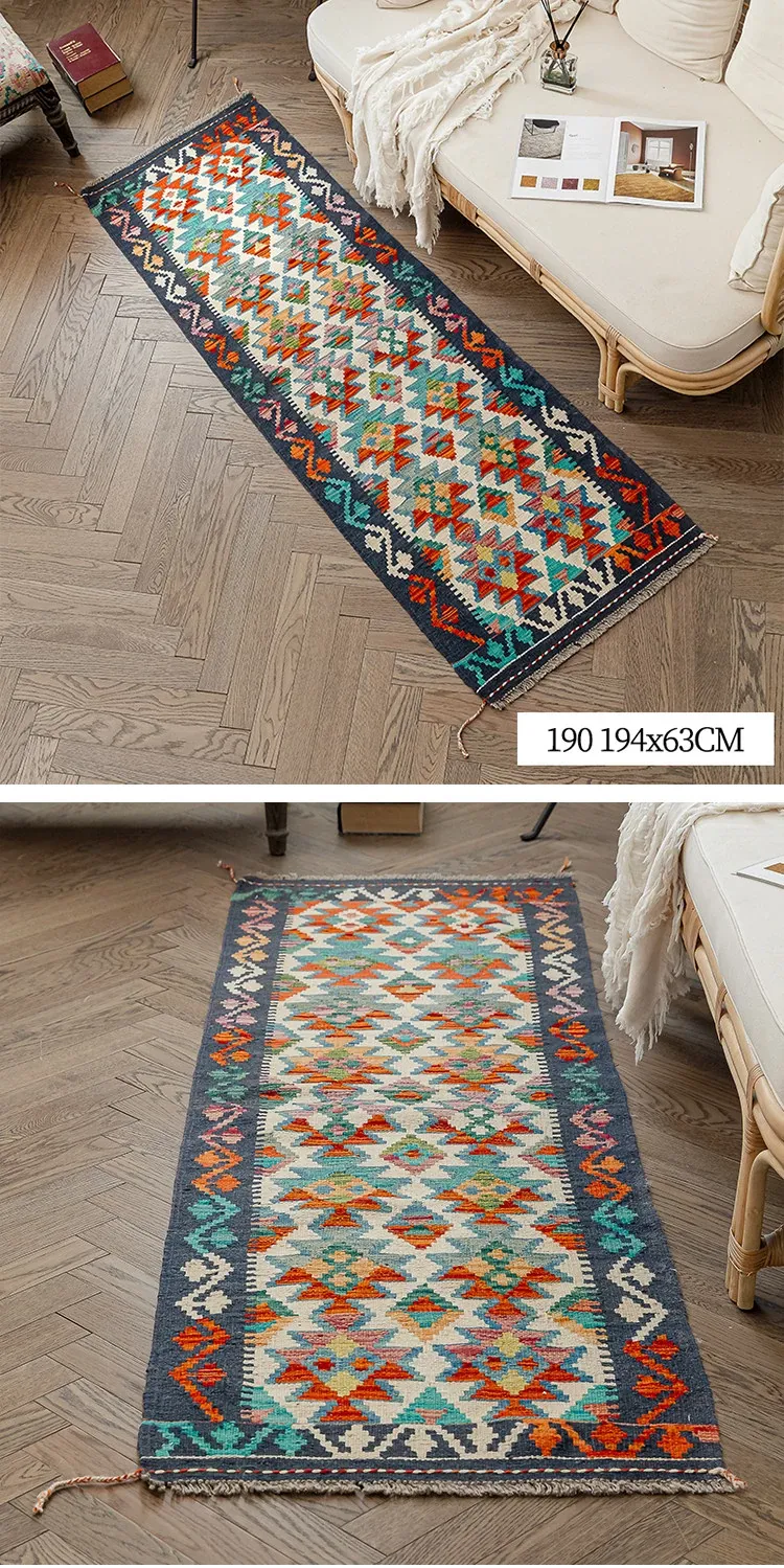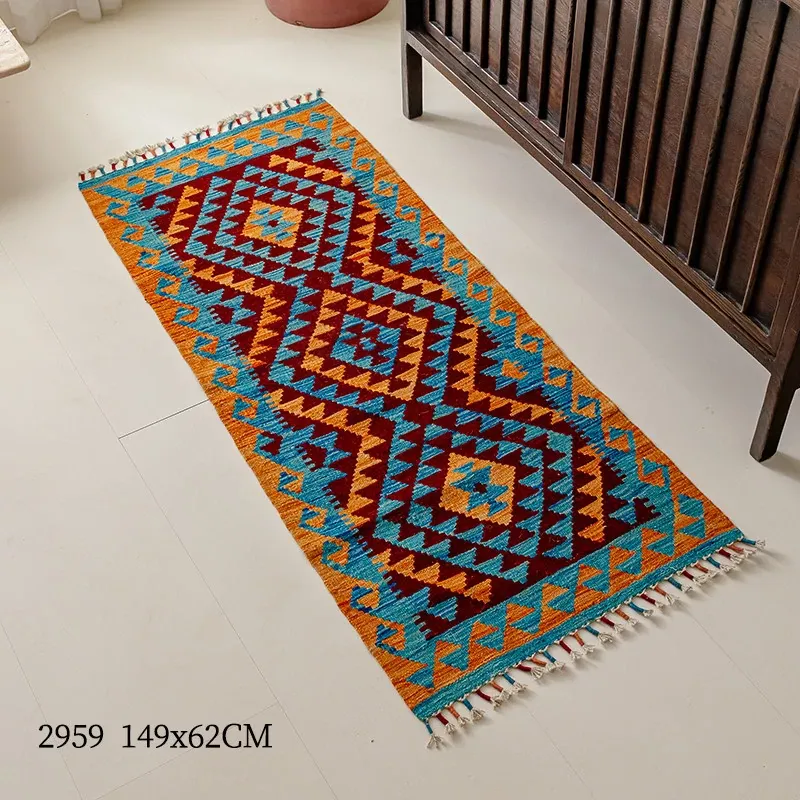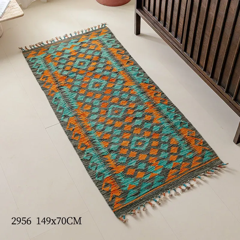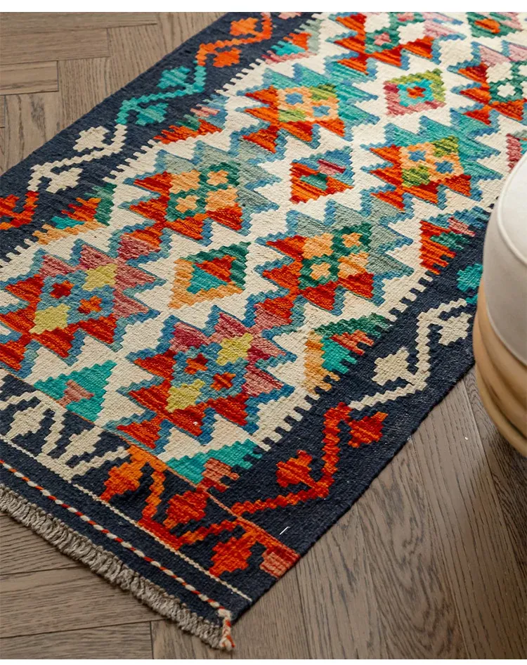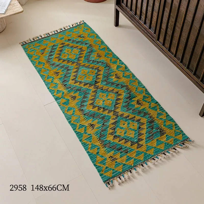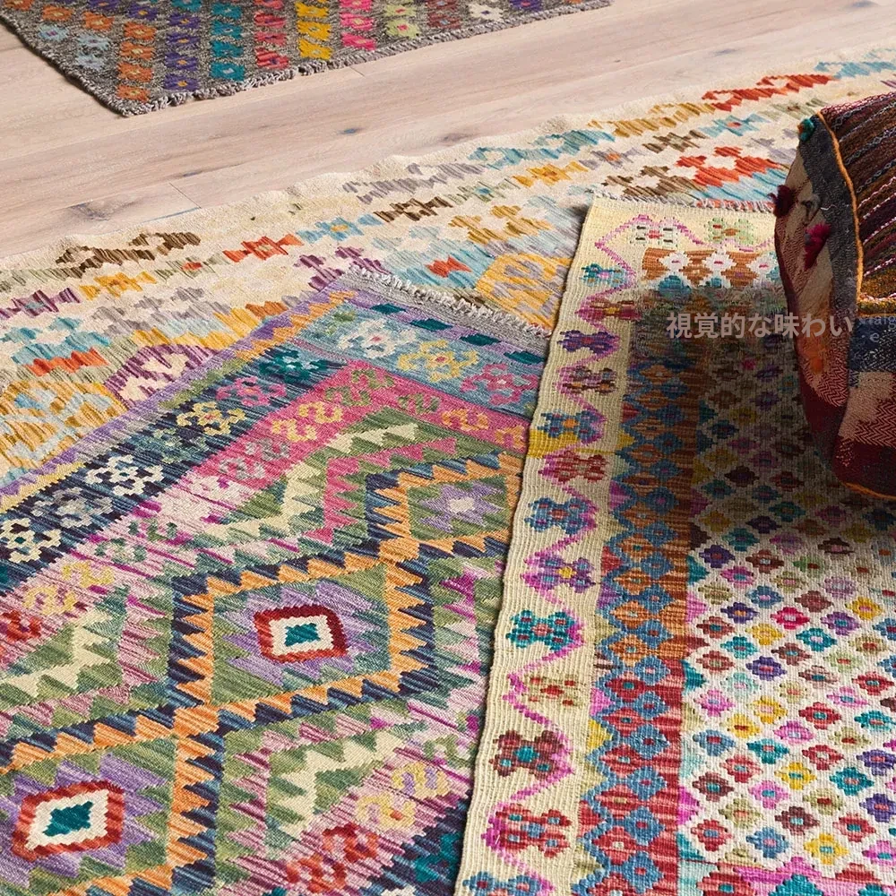 パキスタン直輸入のキリム手織りウールラグ|玄関・寝室・廊下に最適!おしゃれで温かみのあるデザイン、結婚式にもぴったりな特別なカーペット!