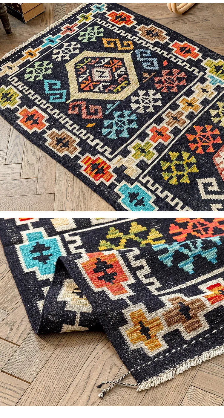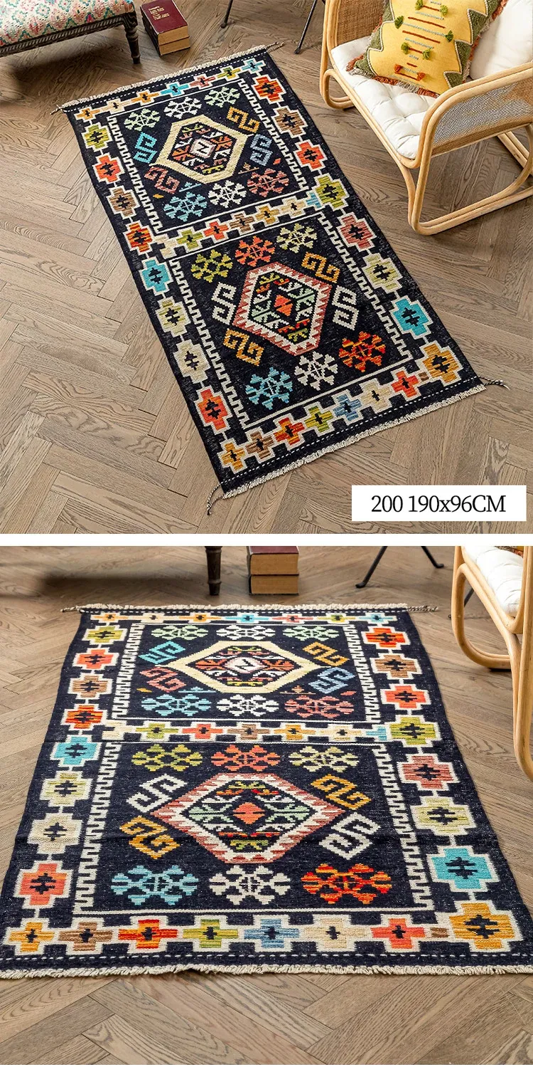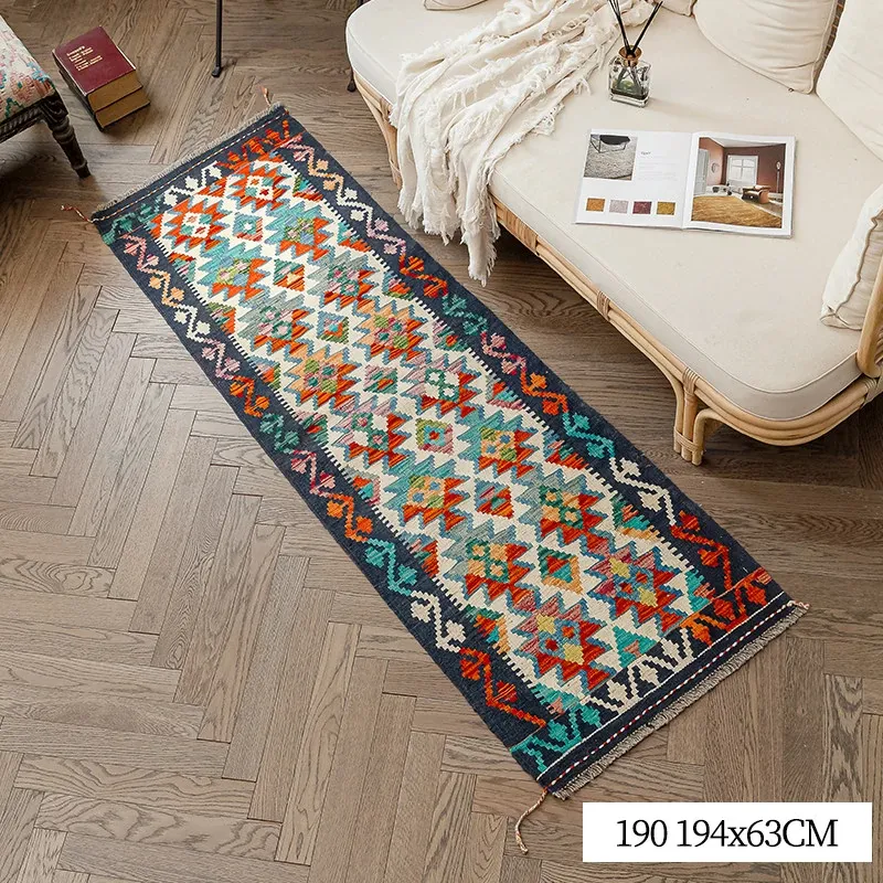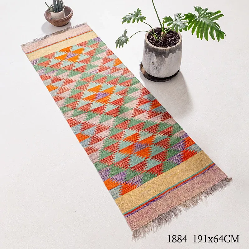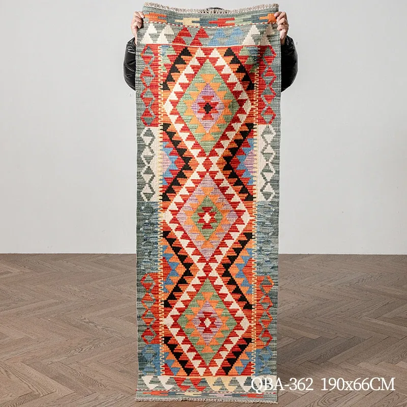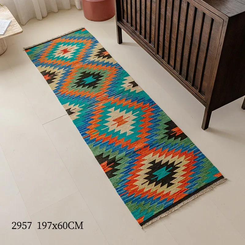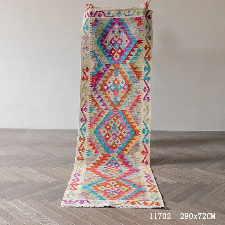 パキスタン直輸入のキリム手織りウールラグ|玄関・寝室・廊下に最適!おしゃれで温かみのあるデザイン、結婚式にもぴったりな特別なカーペット!