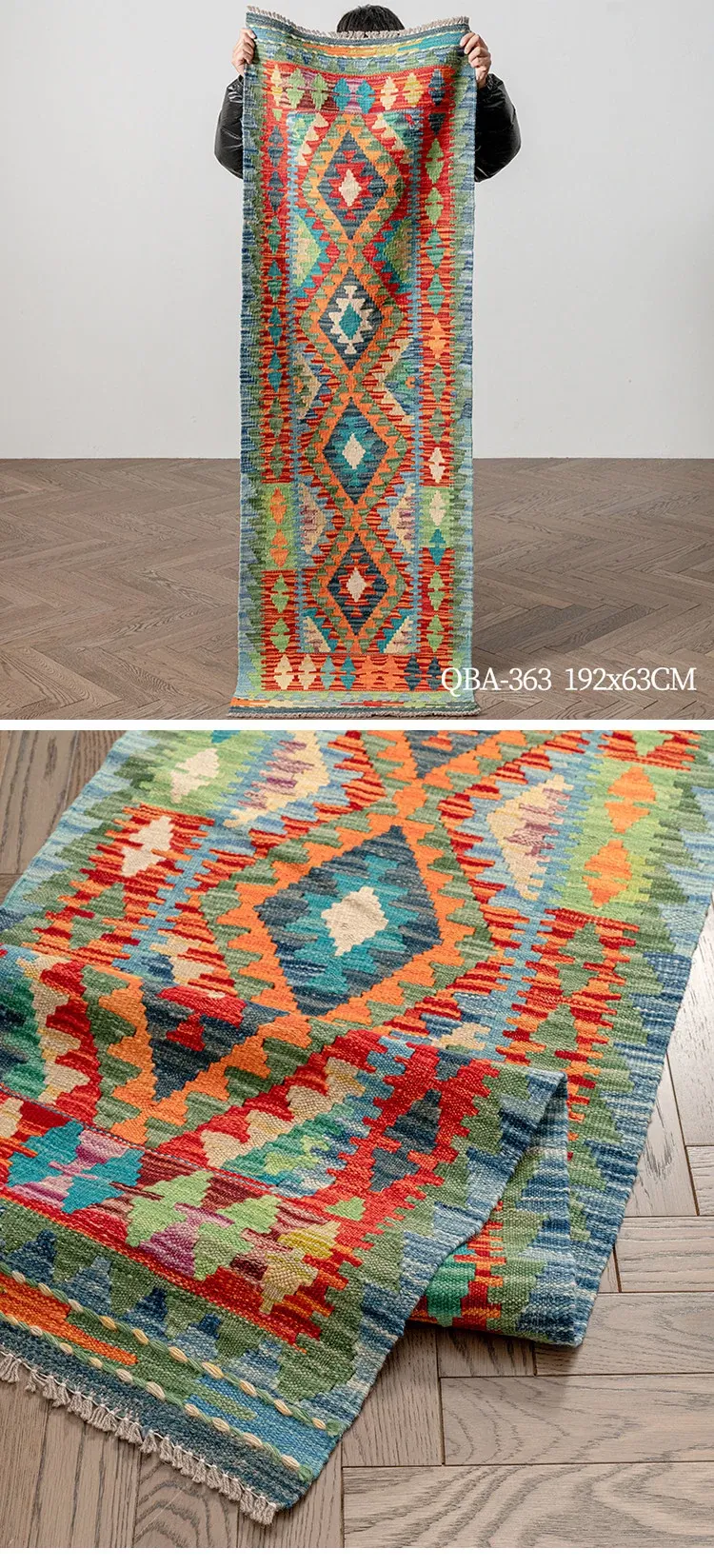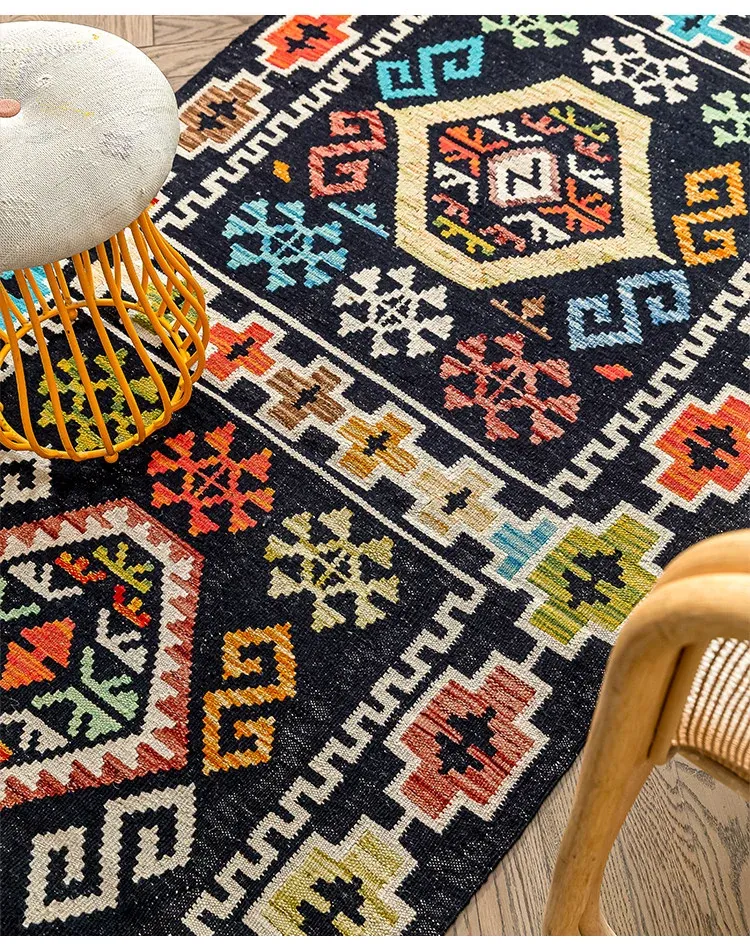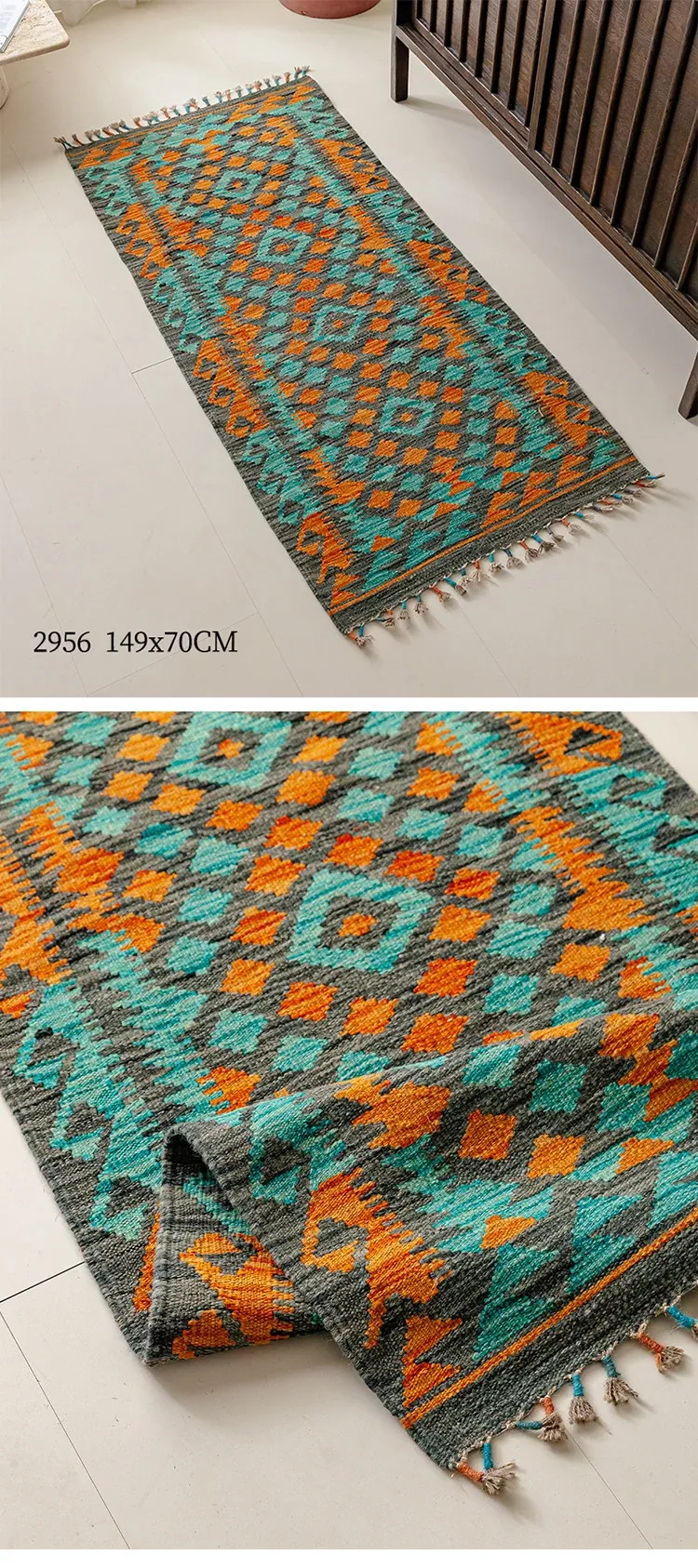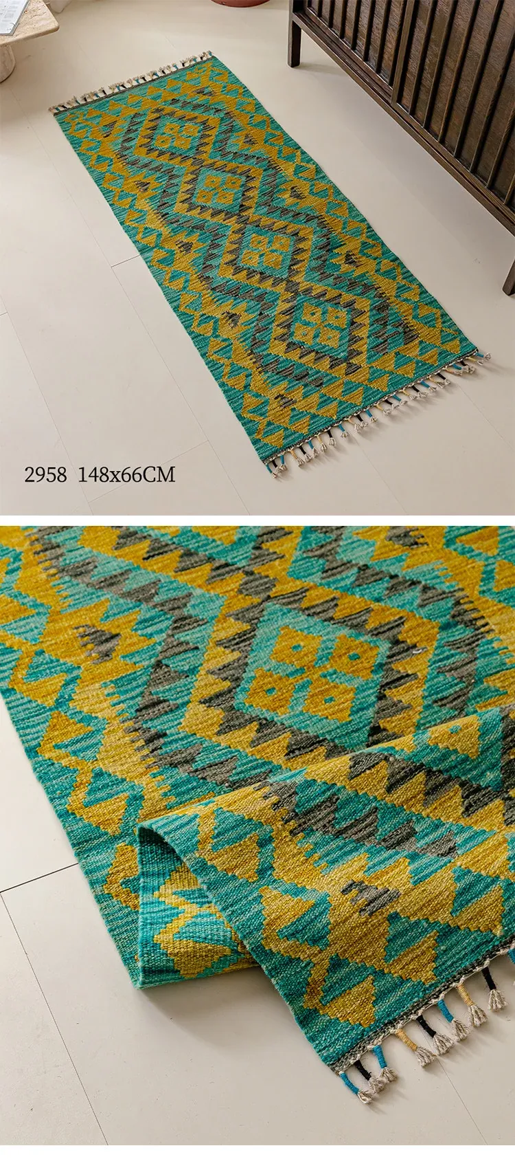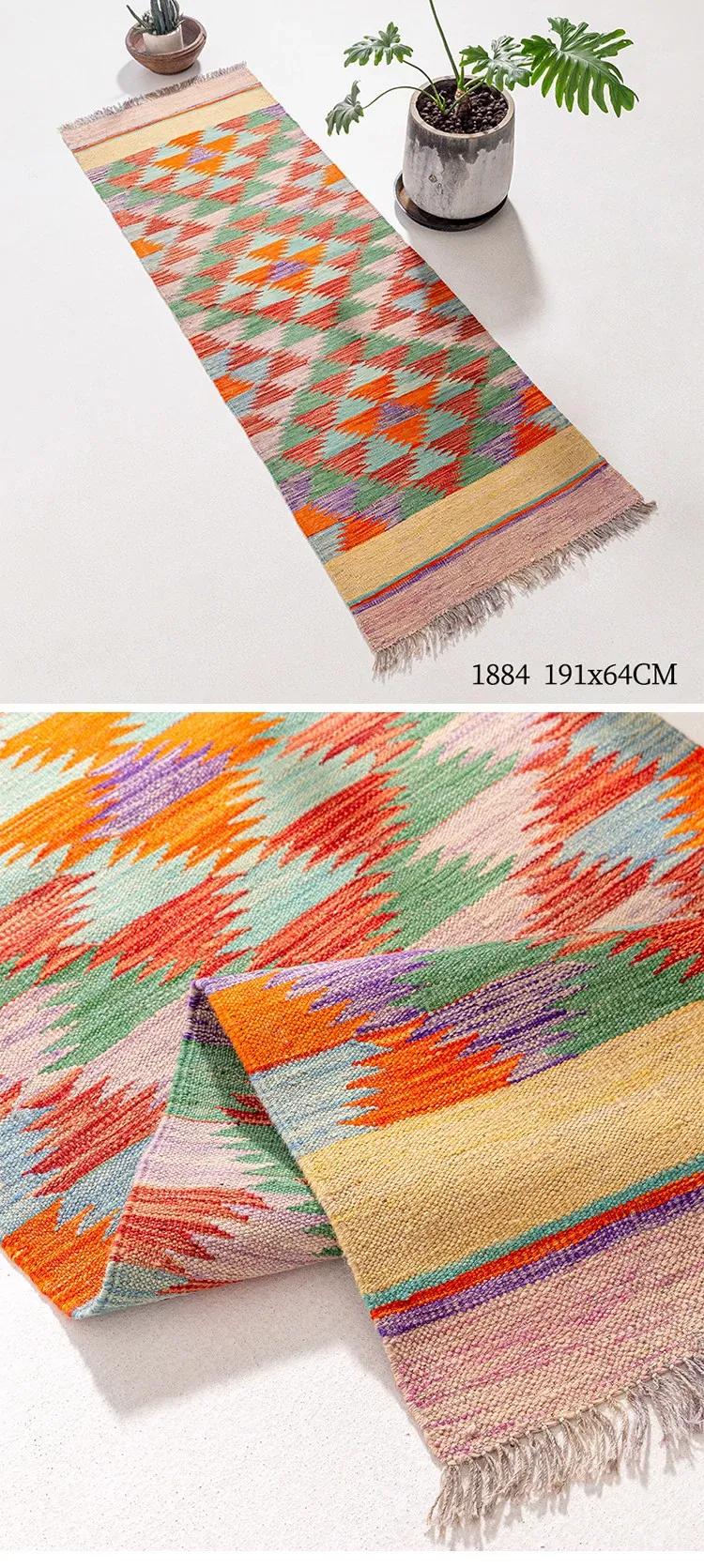 パキスタン直輸入のキリム手織りウールラグ|玄関・寝室・廊下に最適!おしゃれで温かみのあるデザイン、結婚式にもぴったりな特別なカーペット!