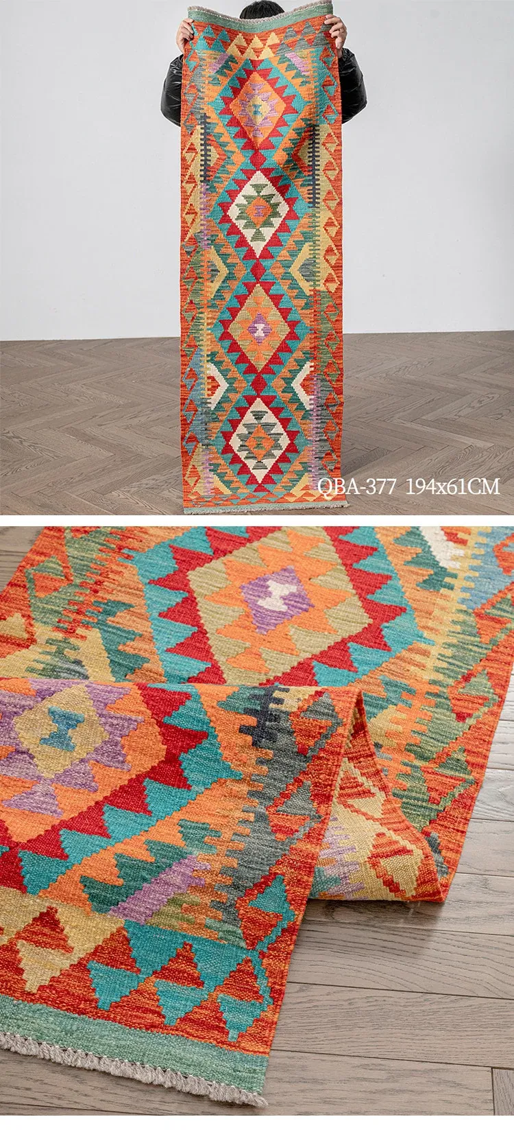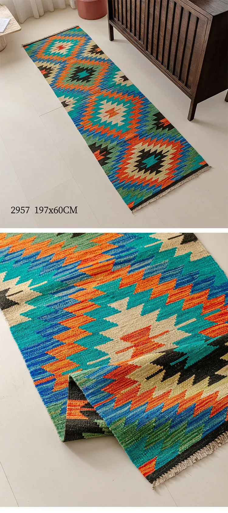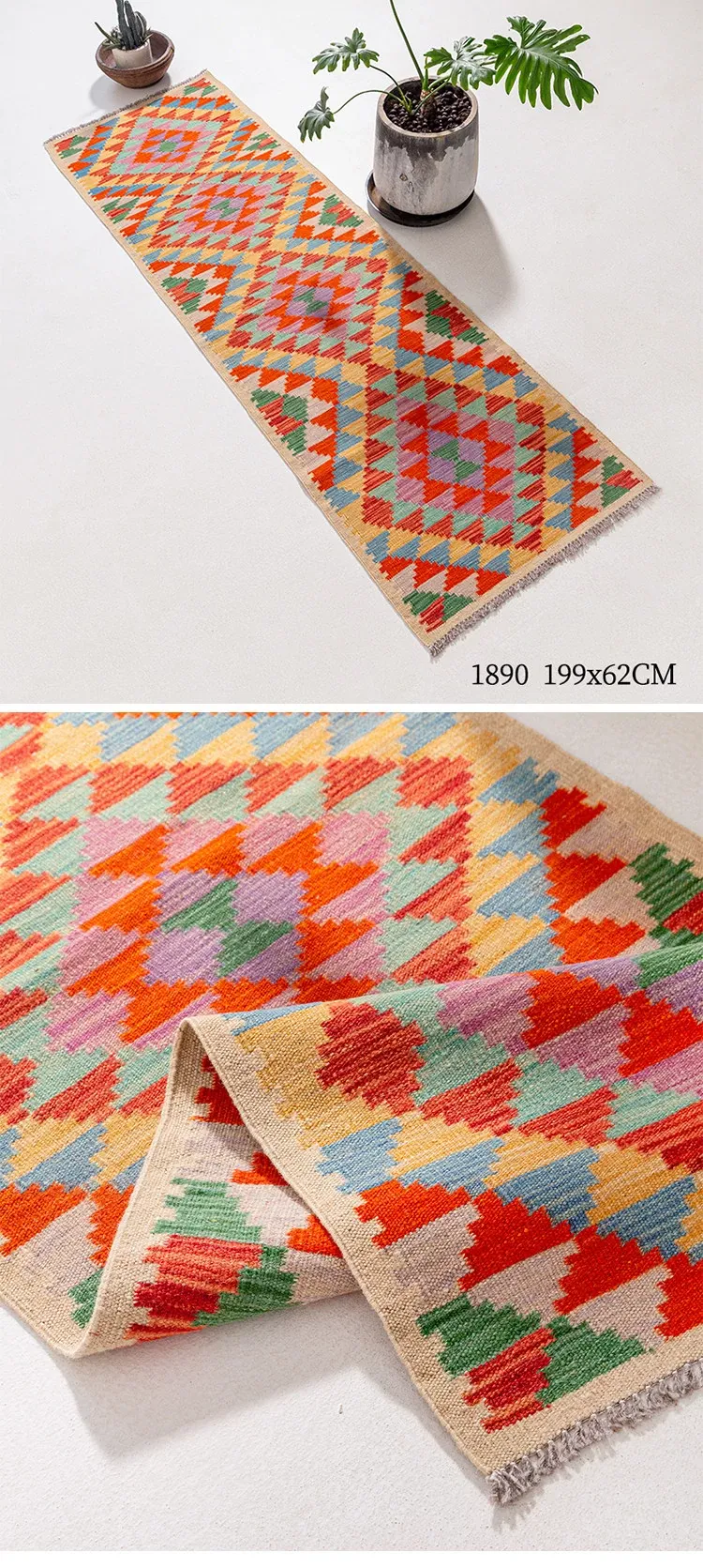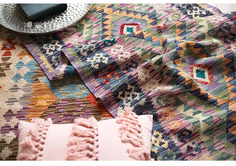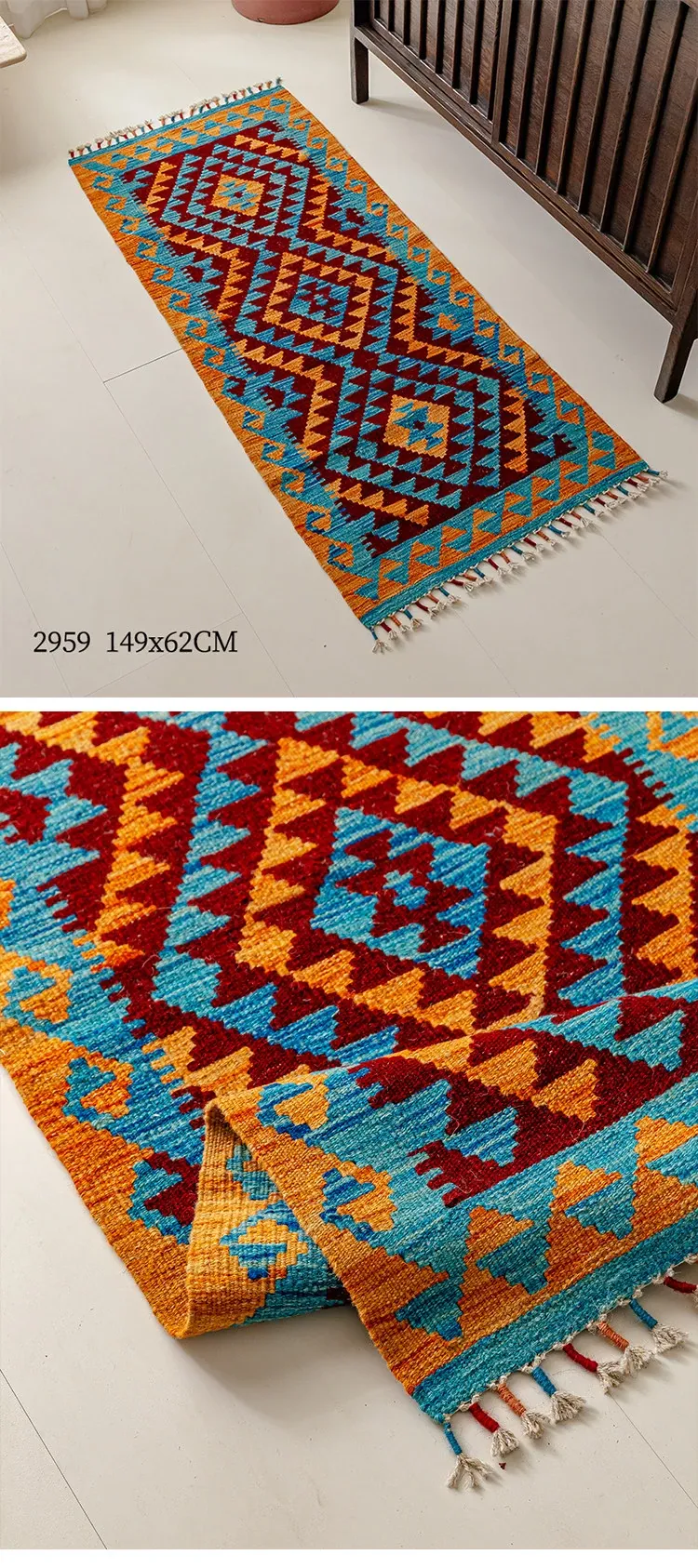 パキスタン直輸入のキリム手織りウールラグ|玄関・寝室・廊下に最適!おしゃれで温かみのあるデザイン、結婚式にもぴったりな特別なカーペット!