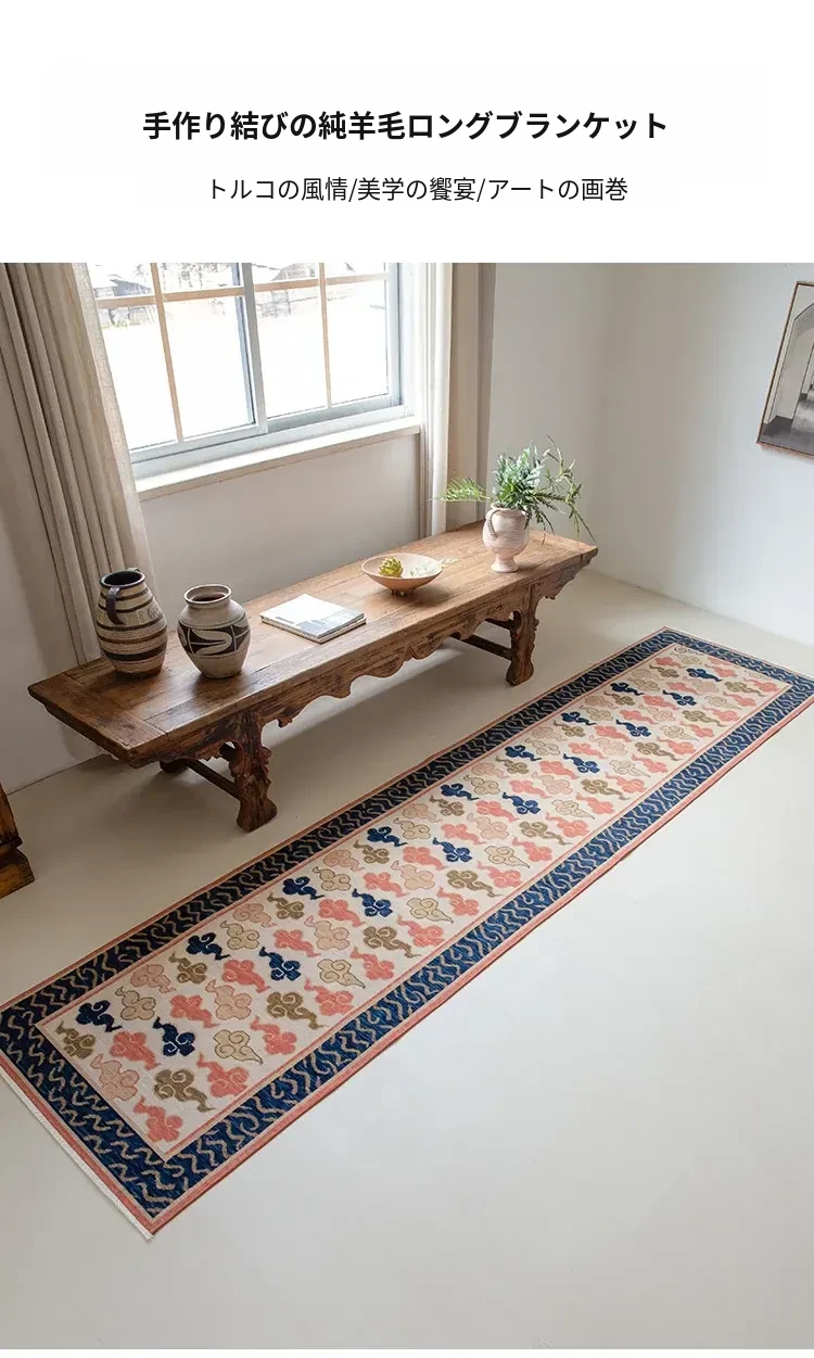 視覚的な美しさと味わいを兼ね備えたトルコ直輸入ウールラグ!手織りのロングストリップカーペットは、玄関や廊下を華やかに彩り、寝室にもぴったり。高品質な素材で心地よい触り心地を実現!