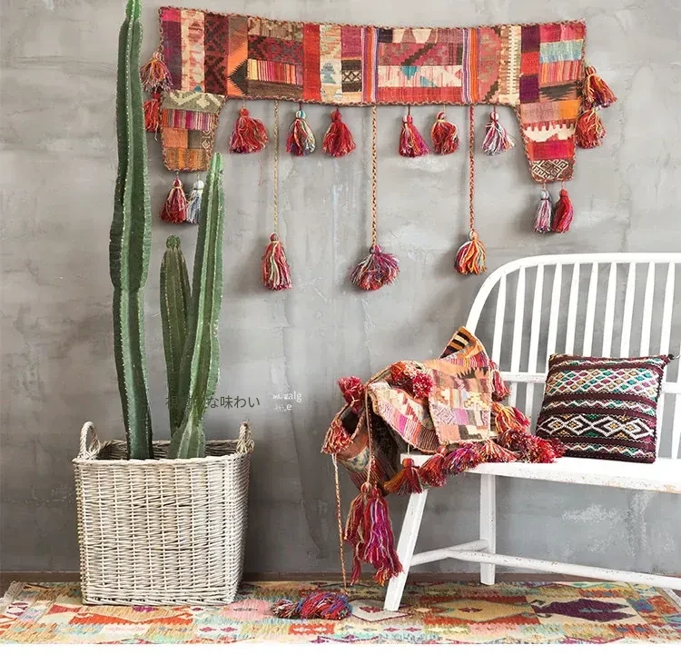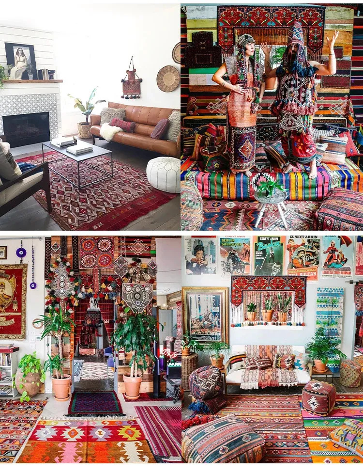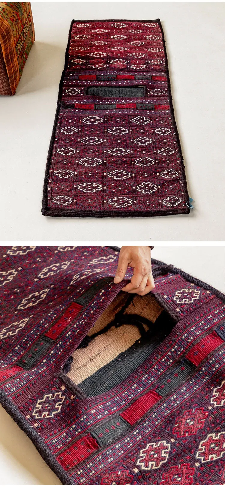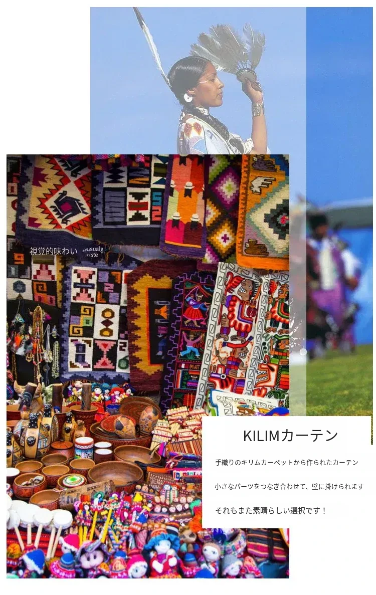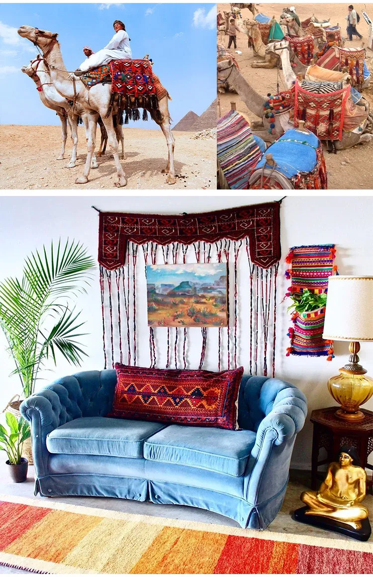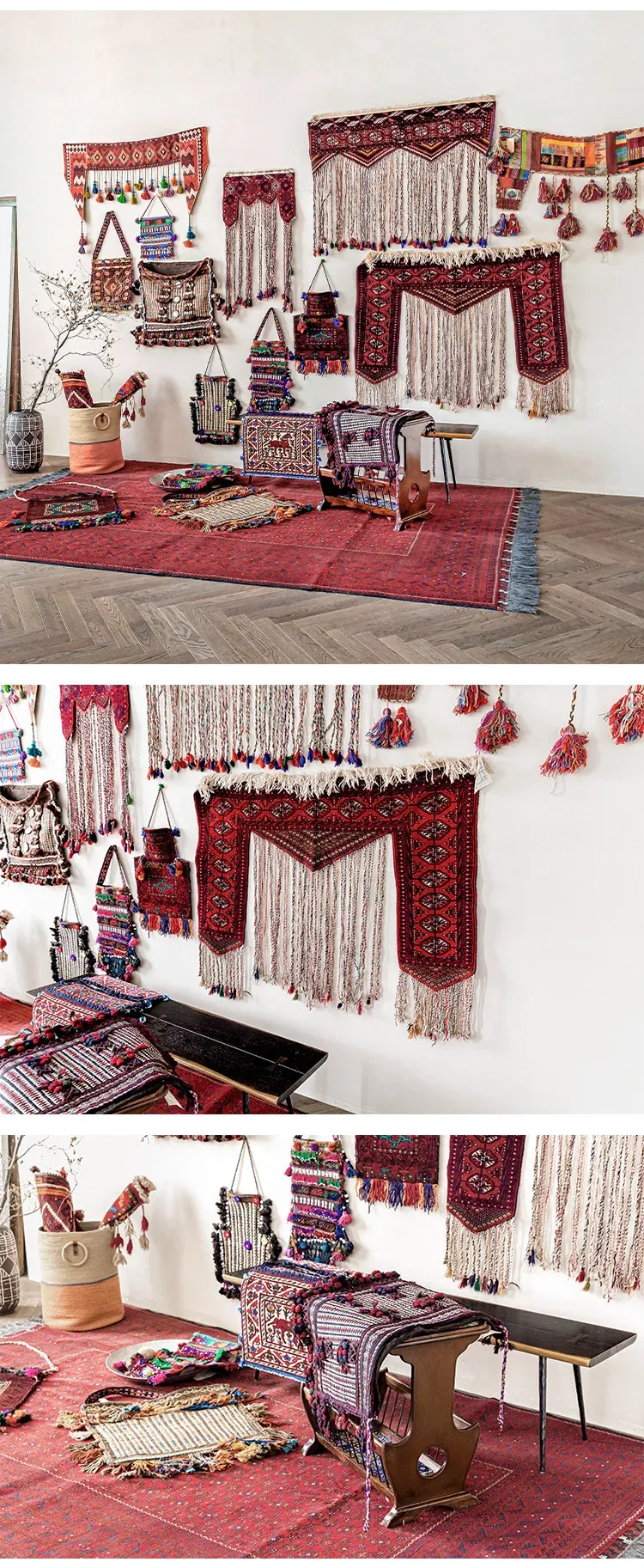 輸入手作ウールのインスタ風タペストリー|民宿に最適なラグ・マット|おしゃれな小型タペストリーと収納バッグ|壁面装飾にもぴったり!