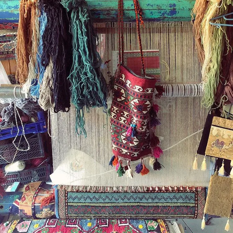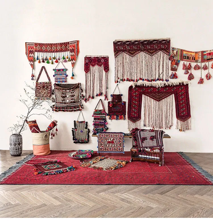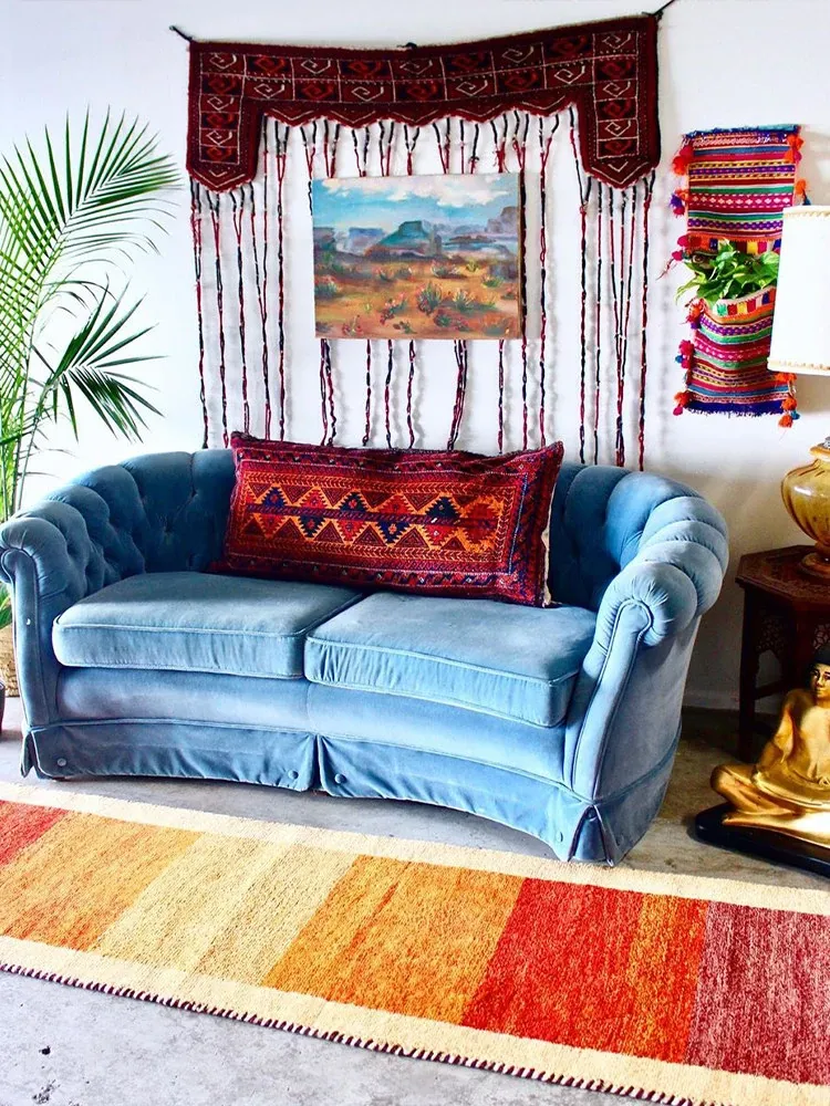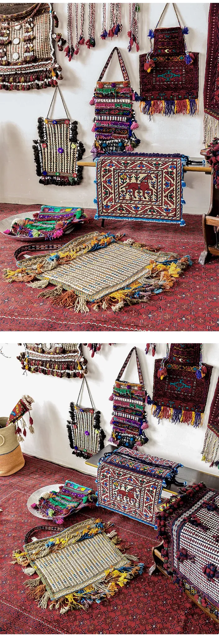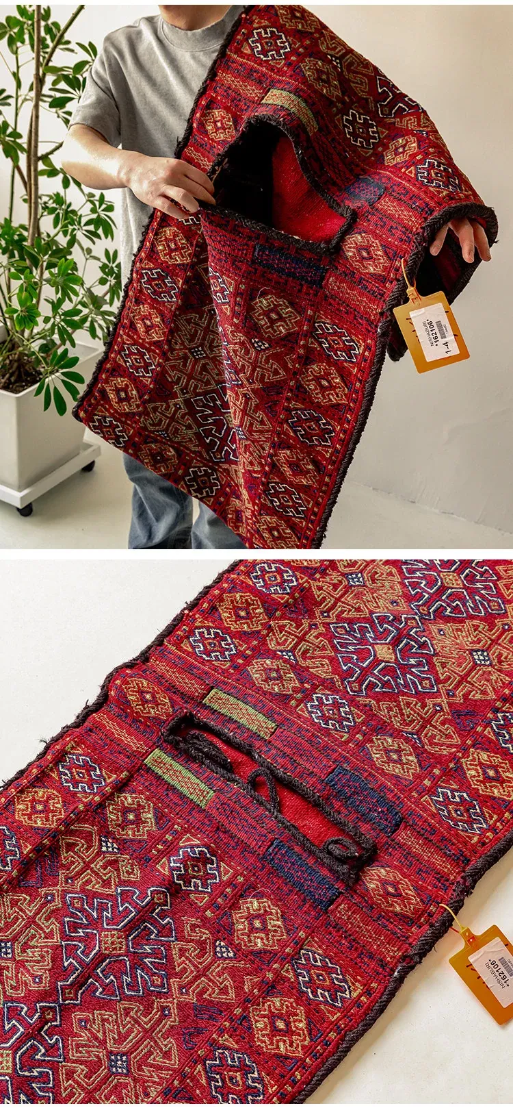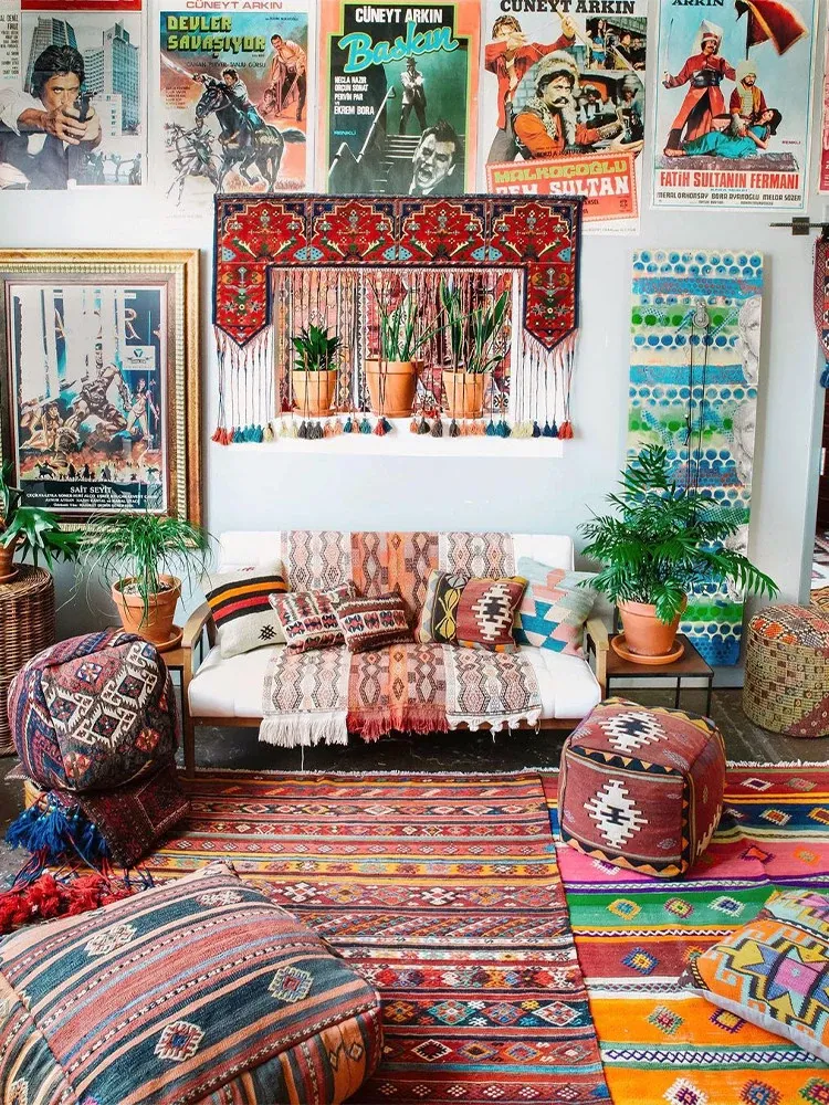 輸入手作ウールのインスタ風タペストリー|民宿に最適なラグ・マット|おしゃれな小型タペストリーと収納バッグ|壁面装飾にもぴったり!