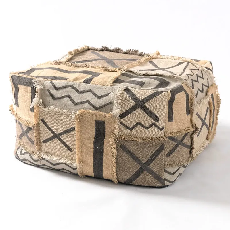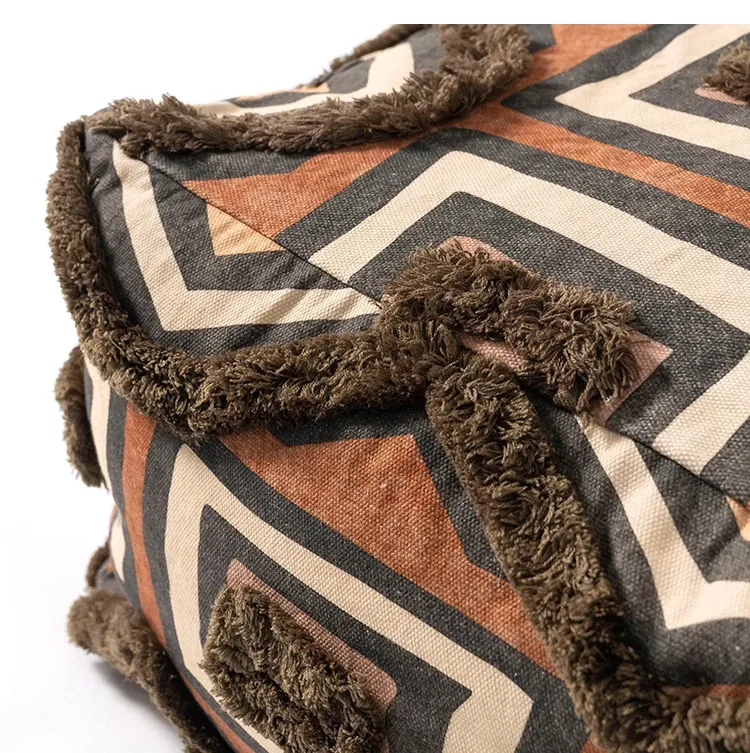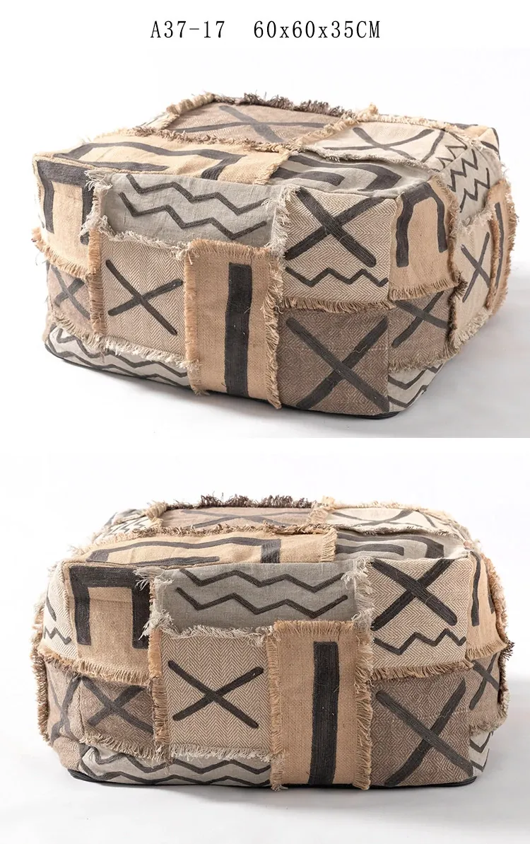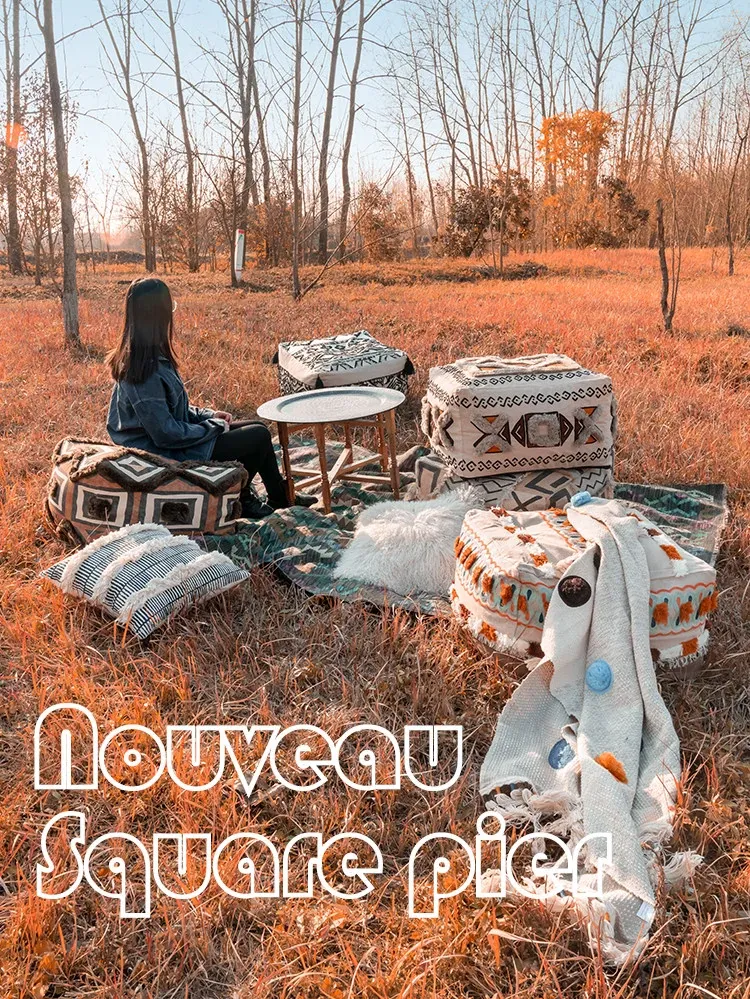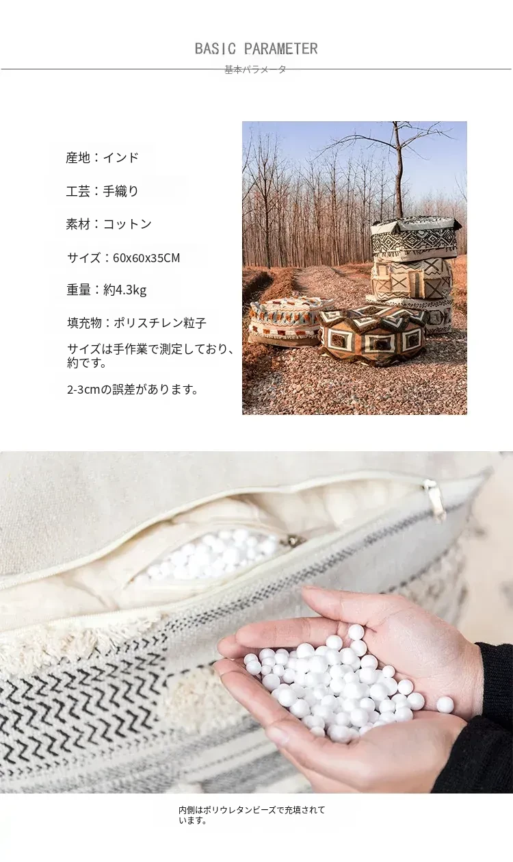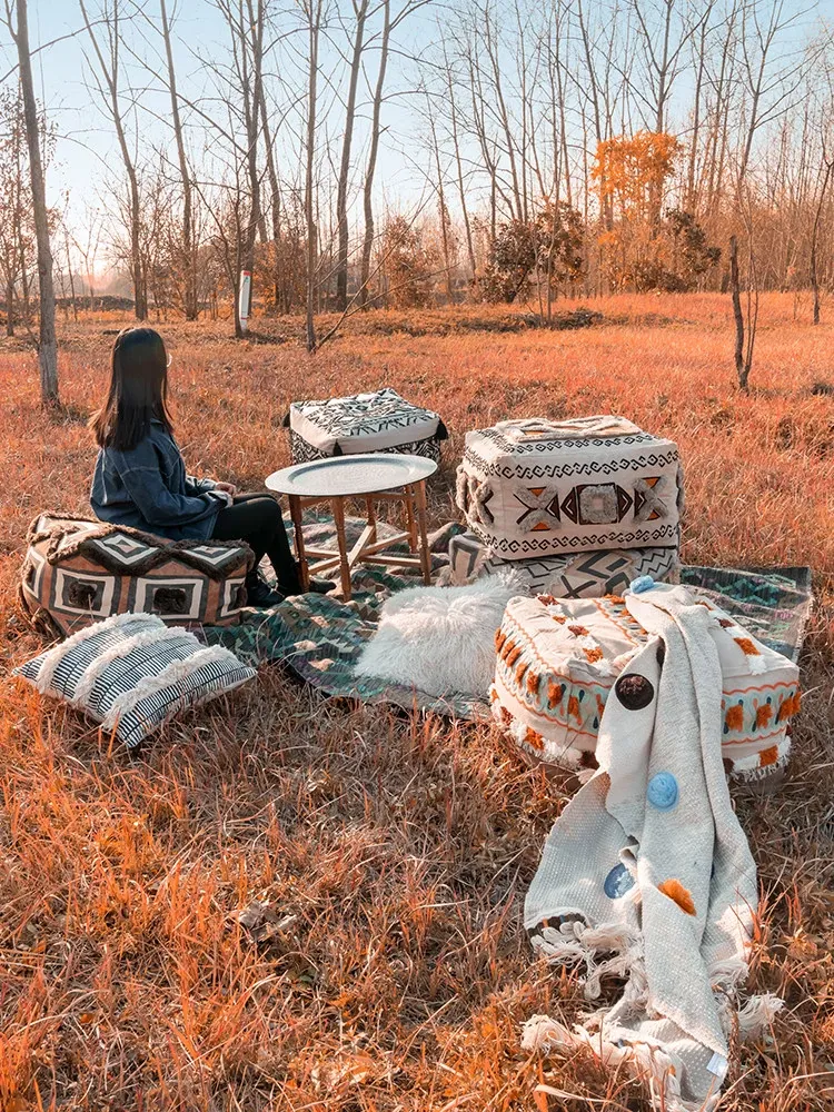 輸入手作刺繍モロッコクッションスツール|ふわふわの豆袋ラウンジソファ|リラックスできる足置きや靴を履くためのスツールにも最適!おしゃれで機能的な四角いスツールです。