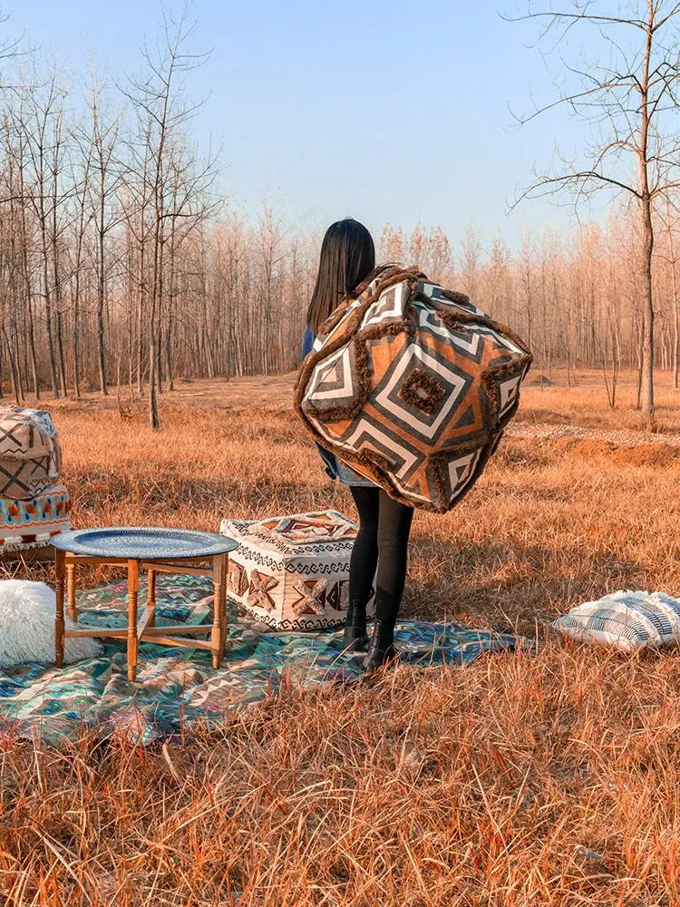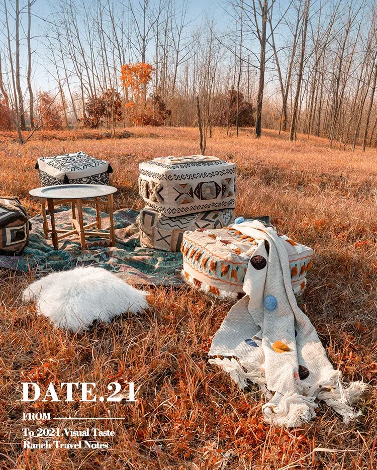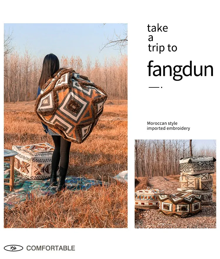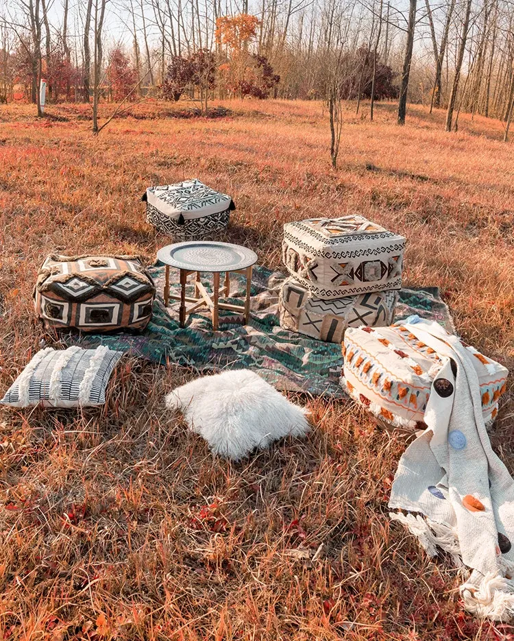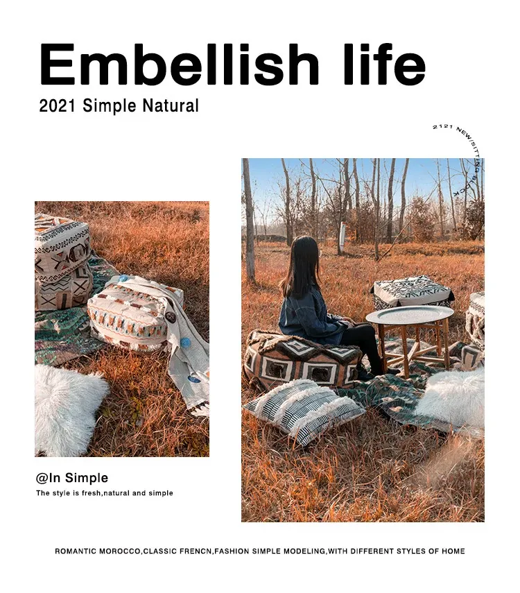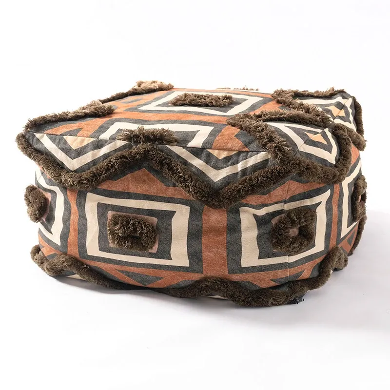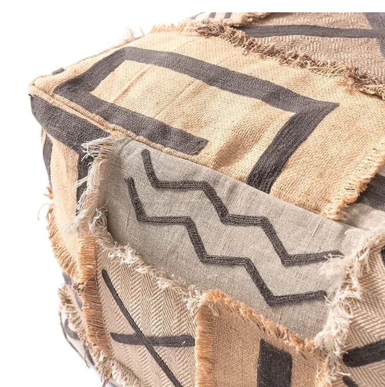 輸入手作刺繍モロッコクッションスツール|ふわふわの豆袋ラウンジソファ|リラックスできる足置きや靴を履くためのスツールにも最適!おしゃれで機能的な四角いスツールです。