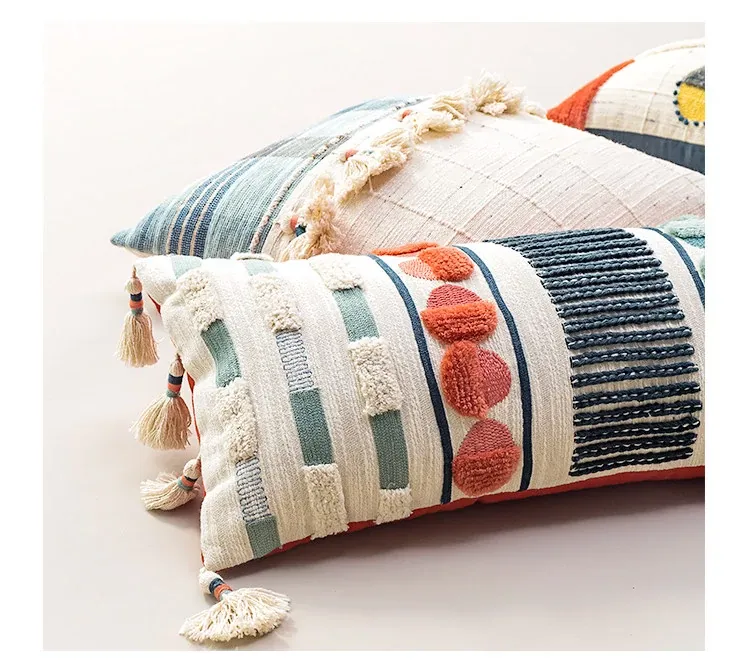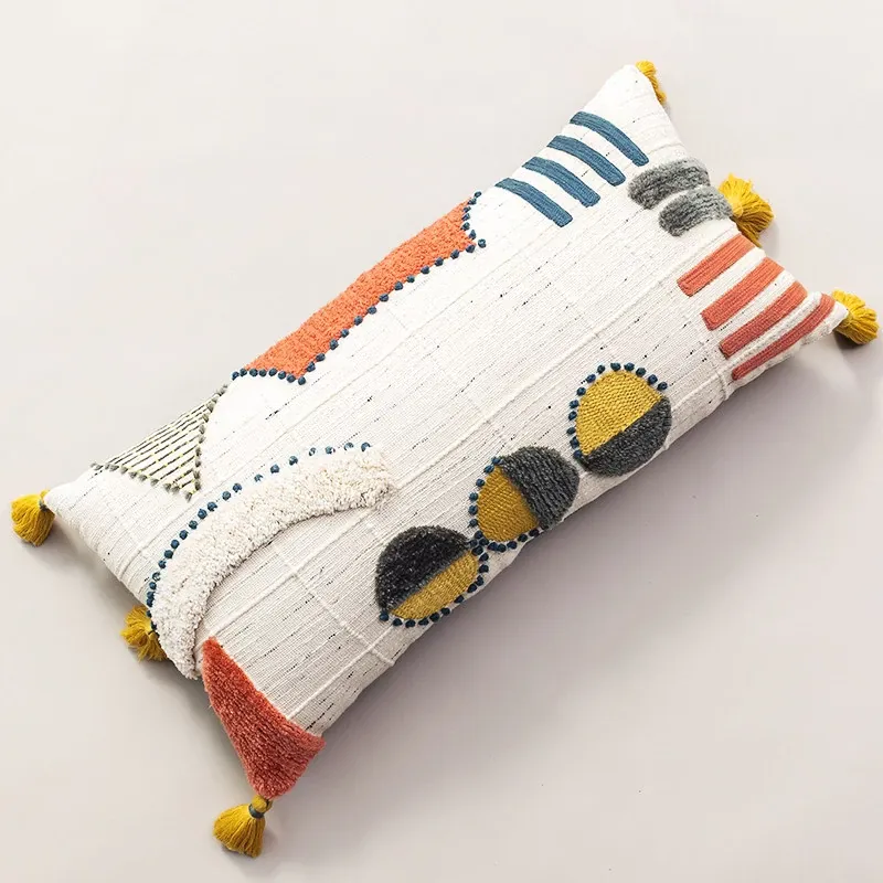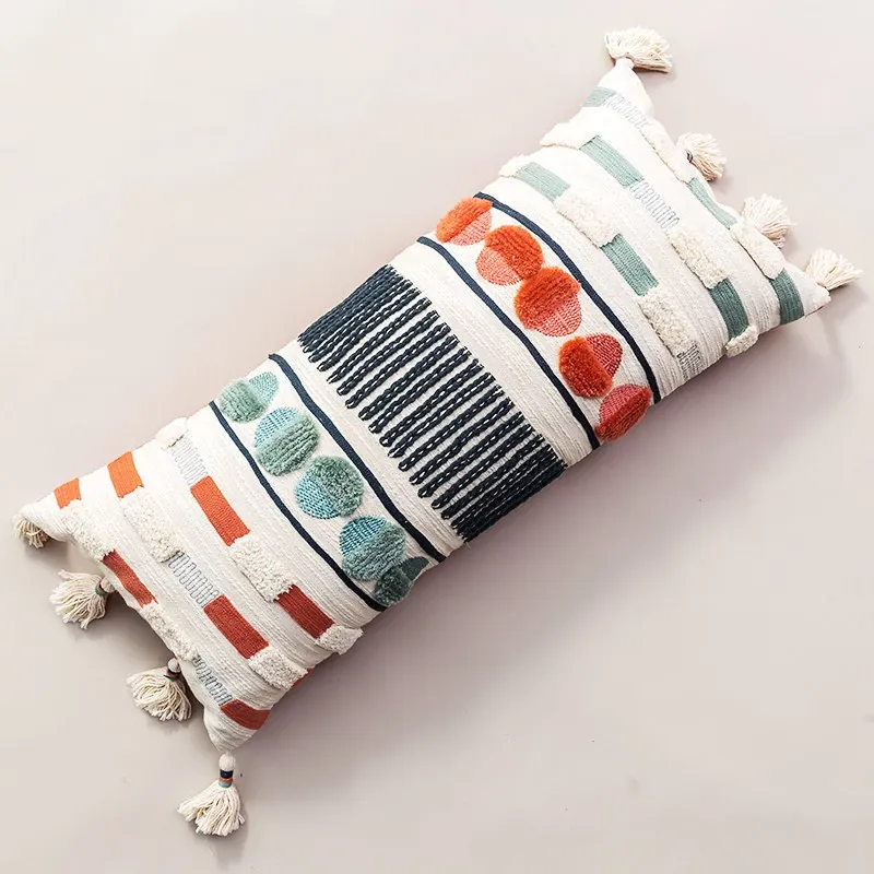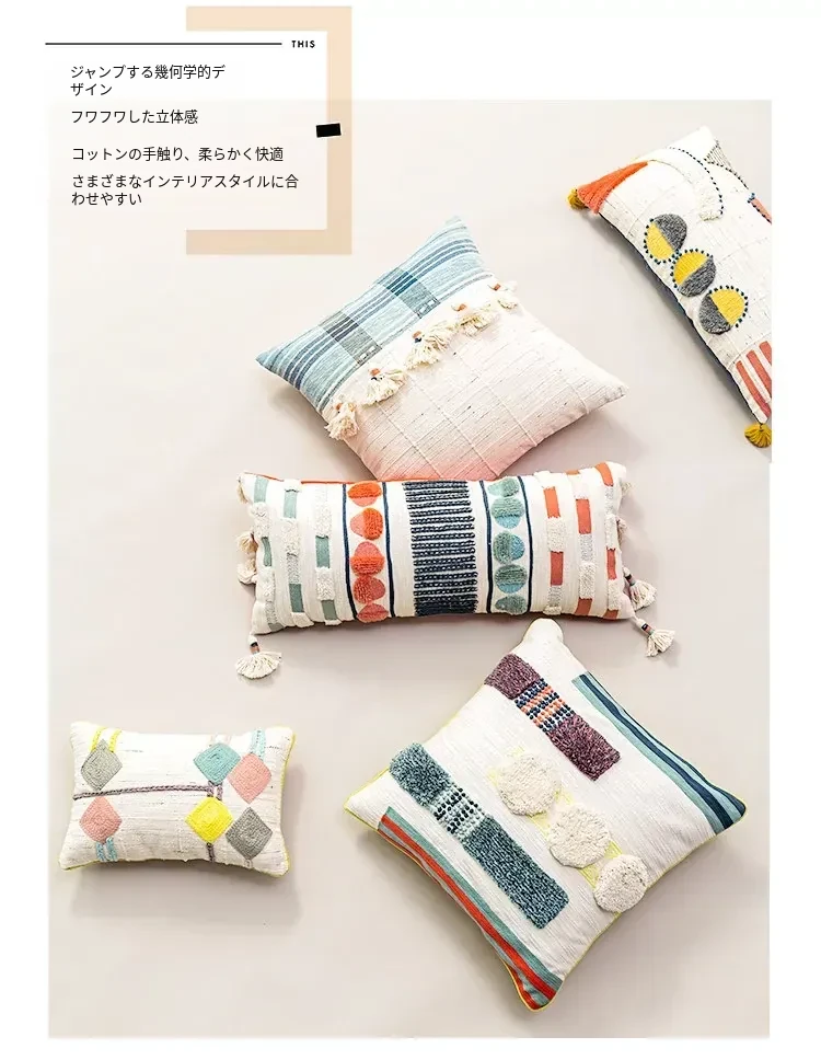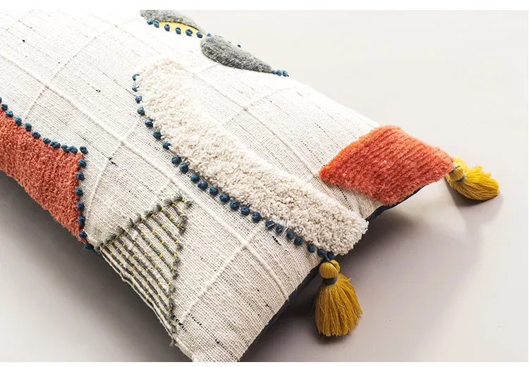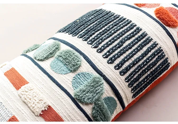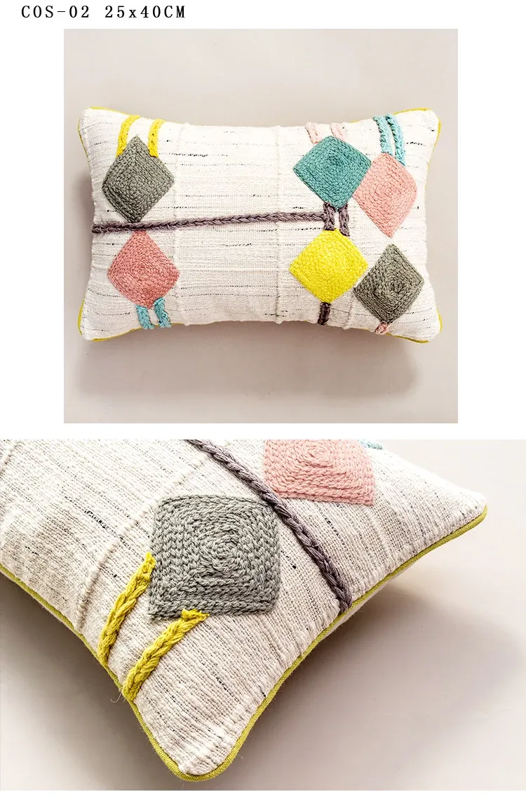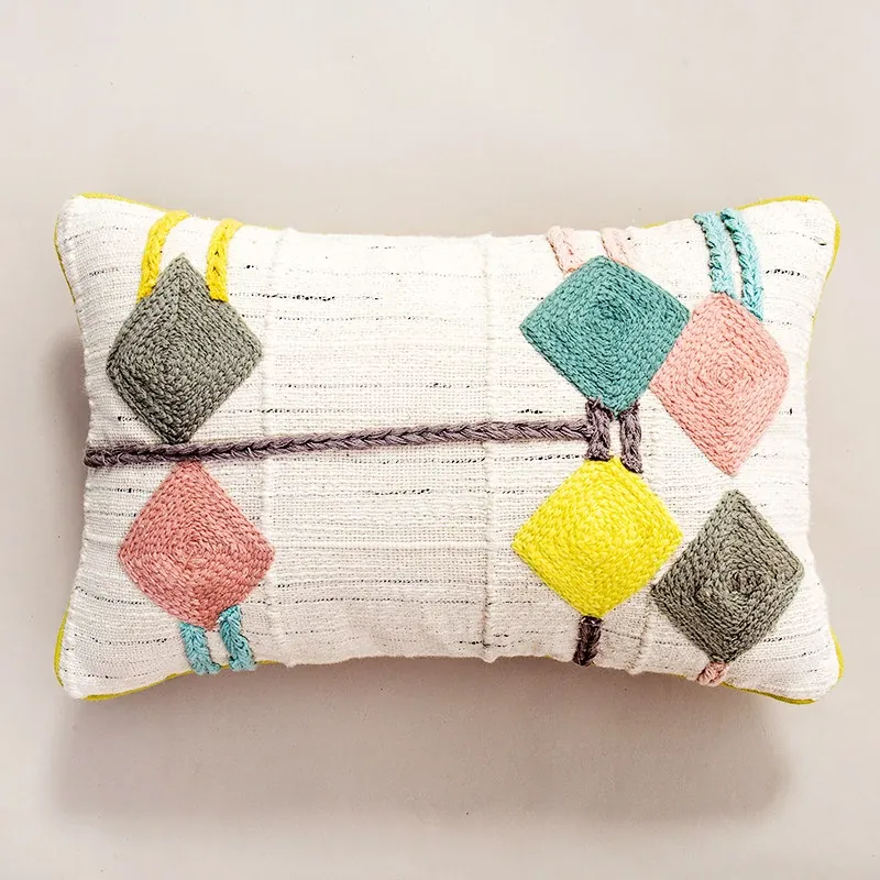 輸入手作刺繍クッション|北欧風インスピレーションデザイン|ソファや車用に最適な長方形抱き枕|おしゃれで心地よい腰サポートクッション