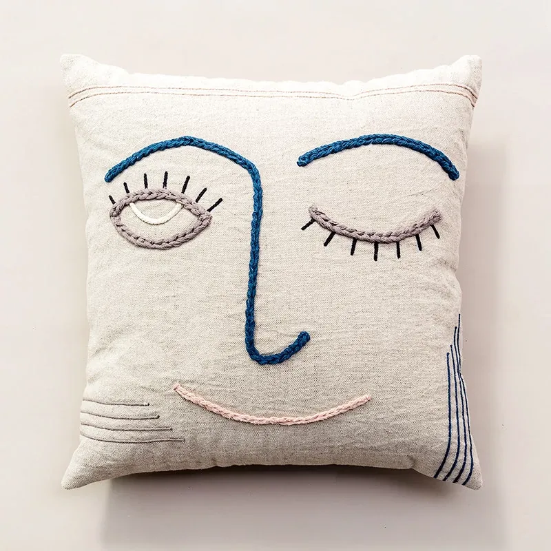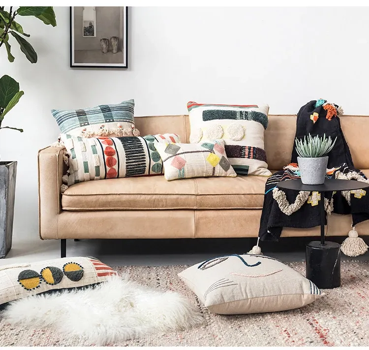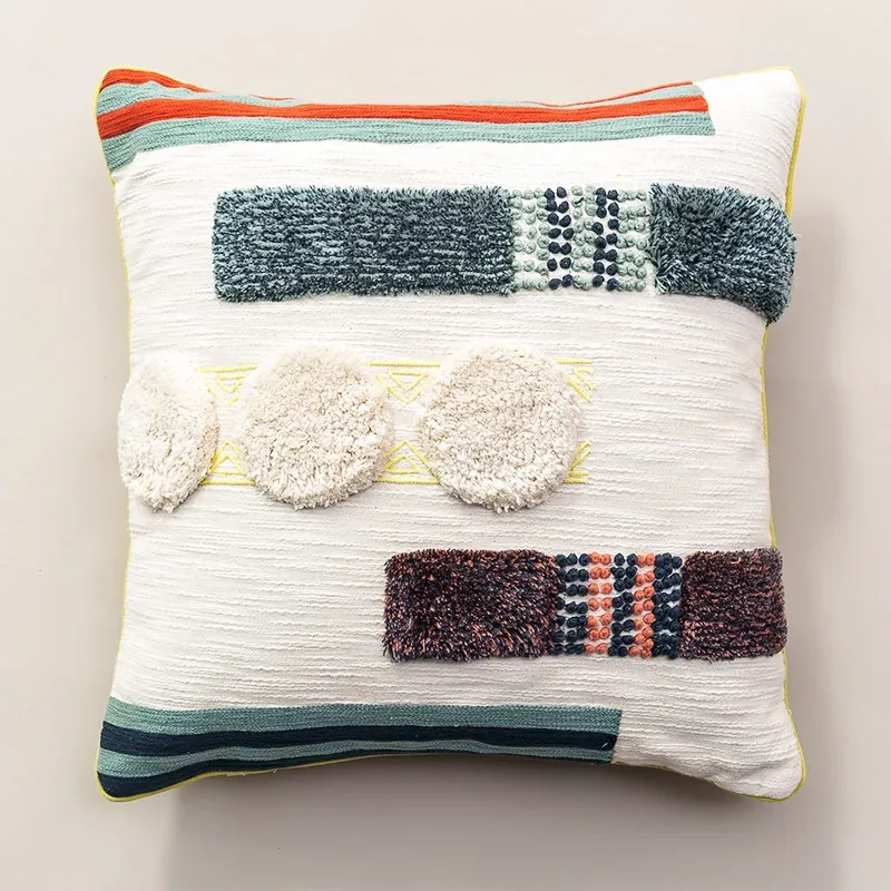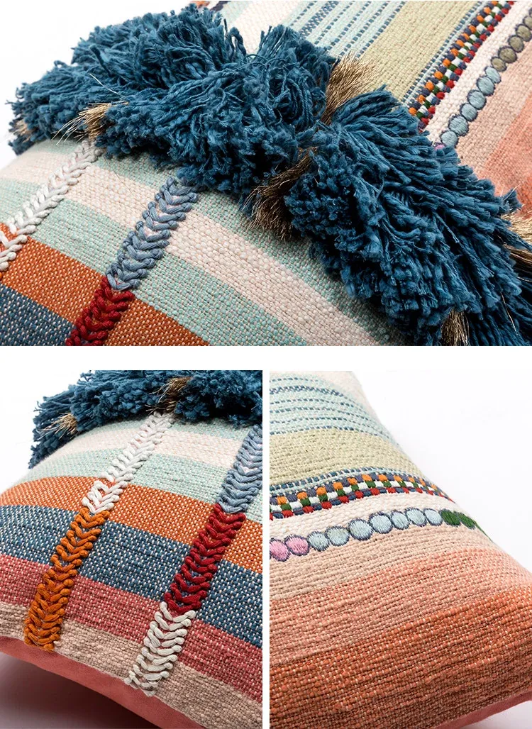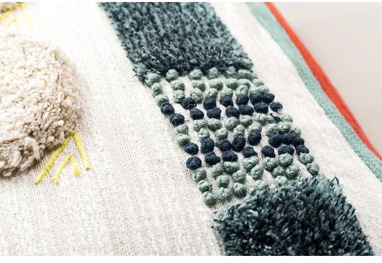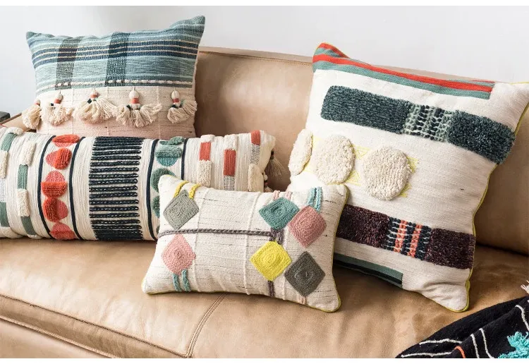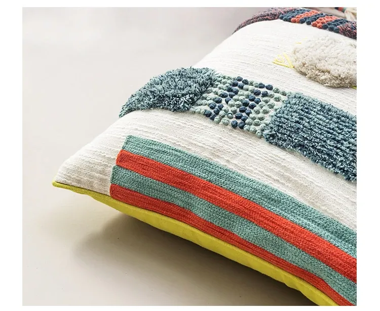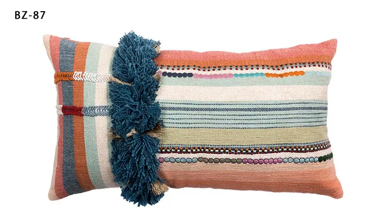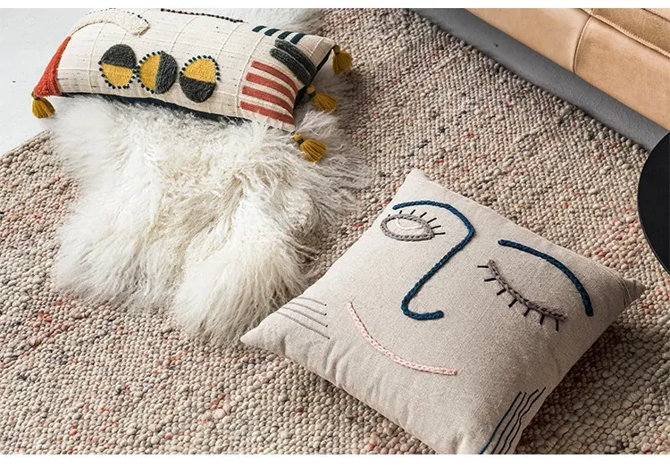 輸入手作刺繍クッション|北欧風インスピレーションデザイン|ソファや車用に最適な長方形抱き枕|おしゃれで心地よい腰サポートクッション