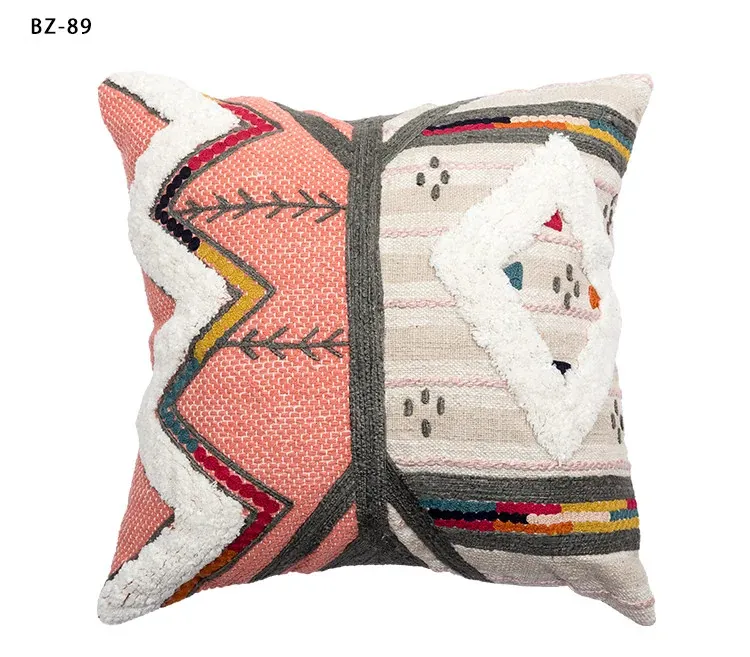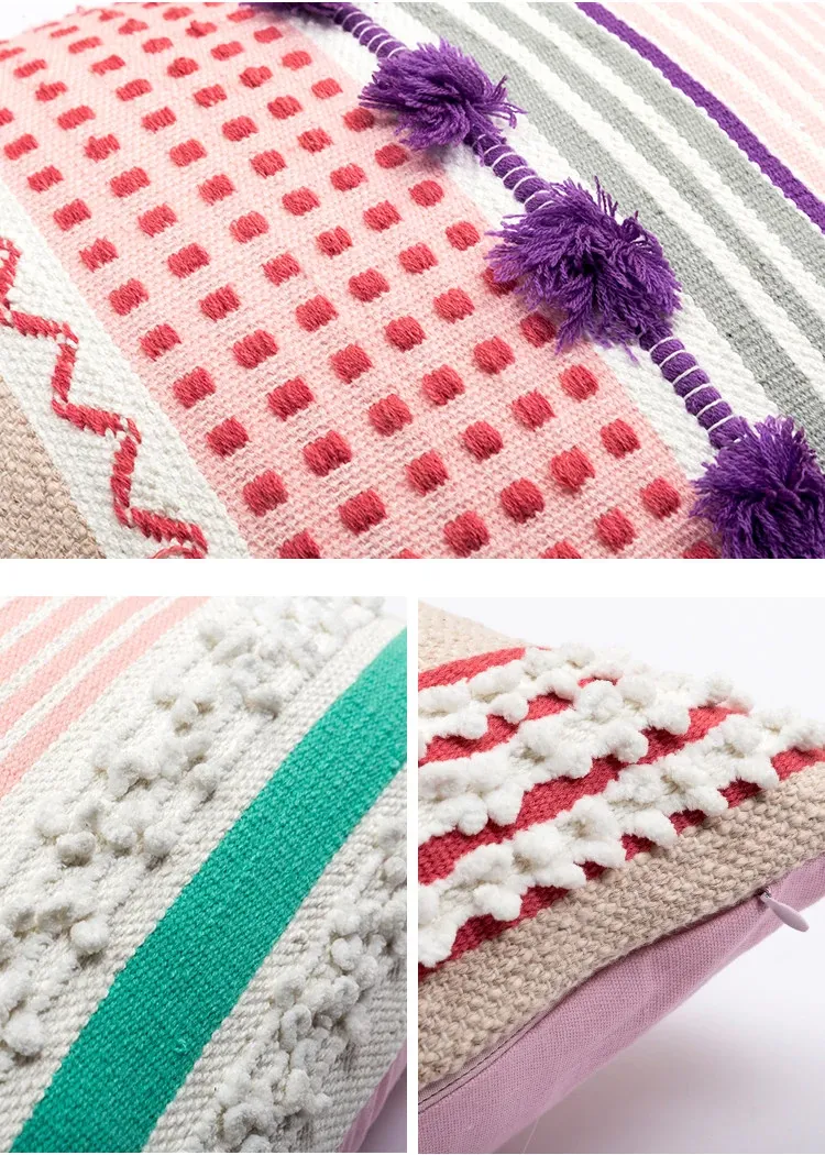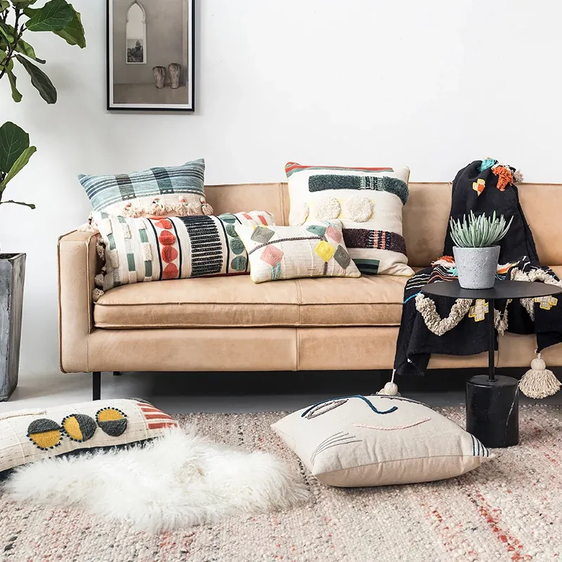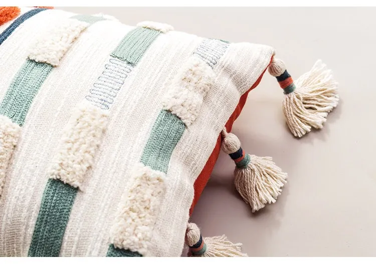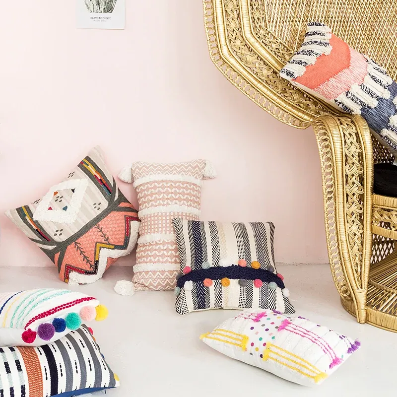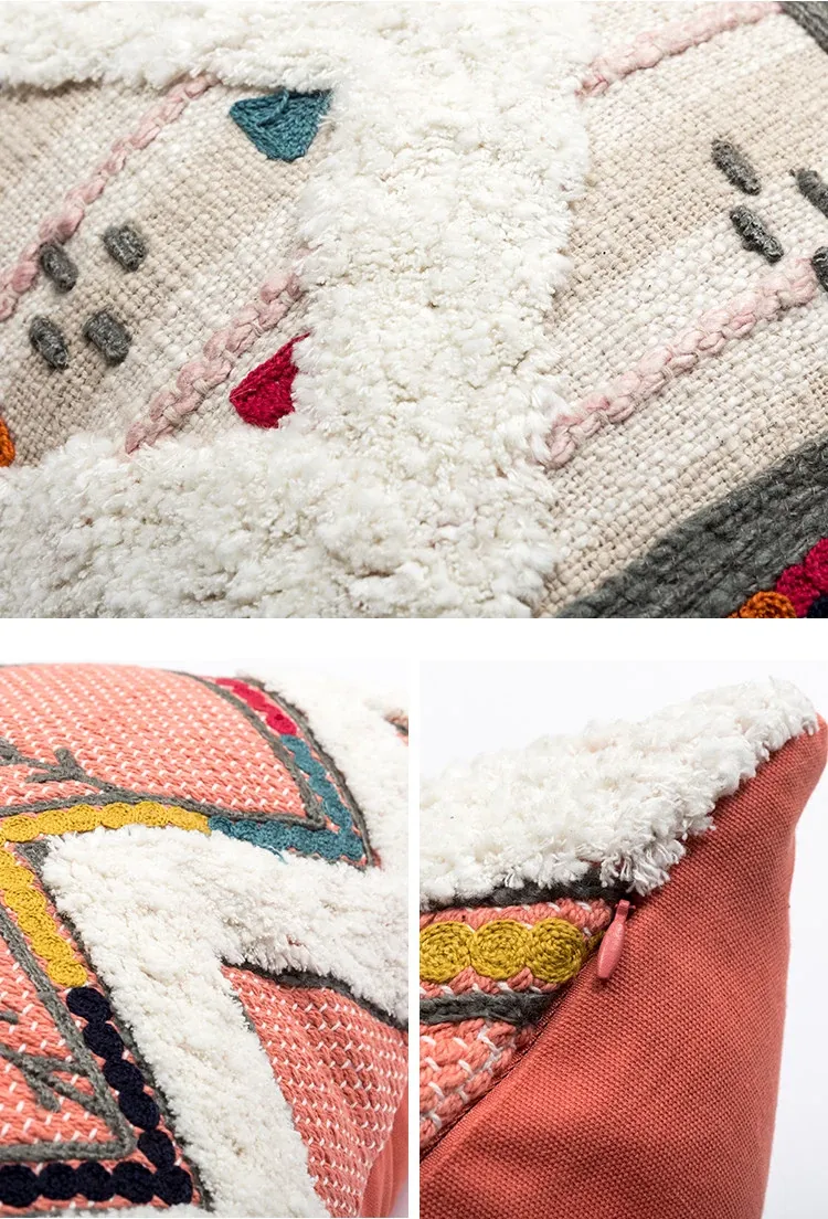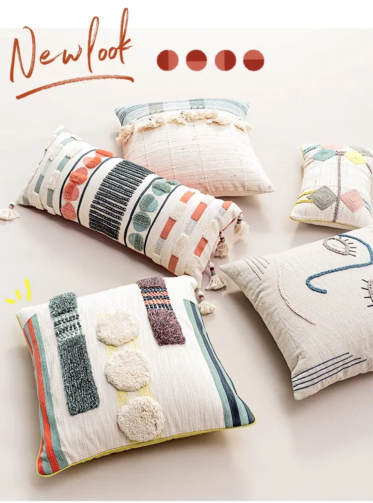輸入手作刺繍クッション|北欧風インスピレーションデザイン|ソファや車用に最適な長方形抱き枕|おしゃれで心地よい腰サポートクッション