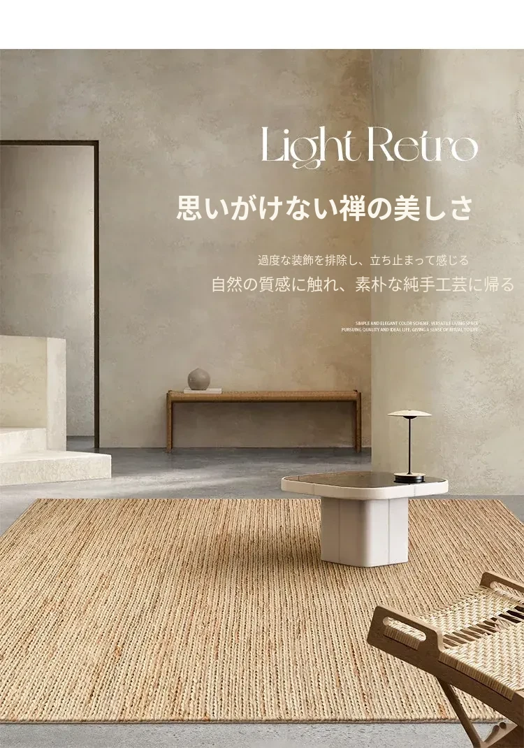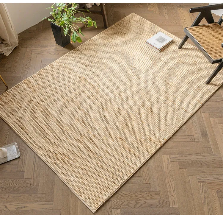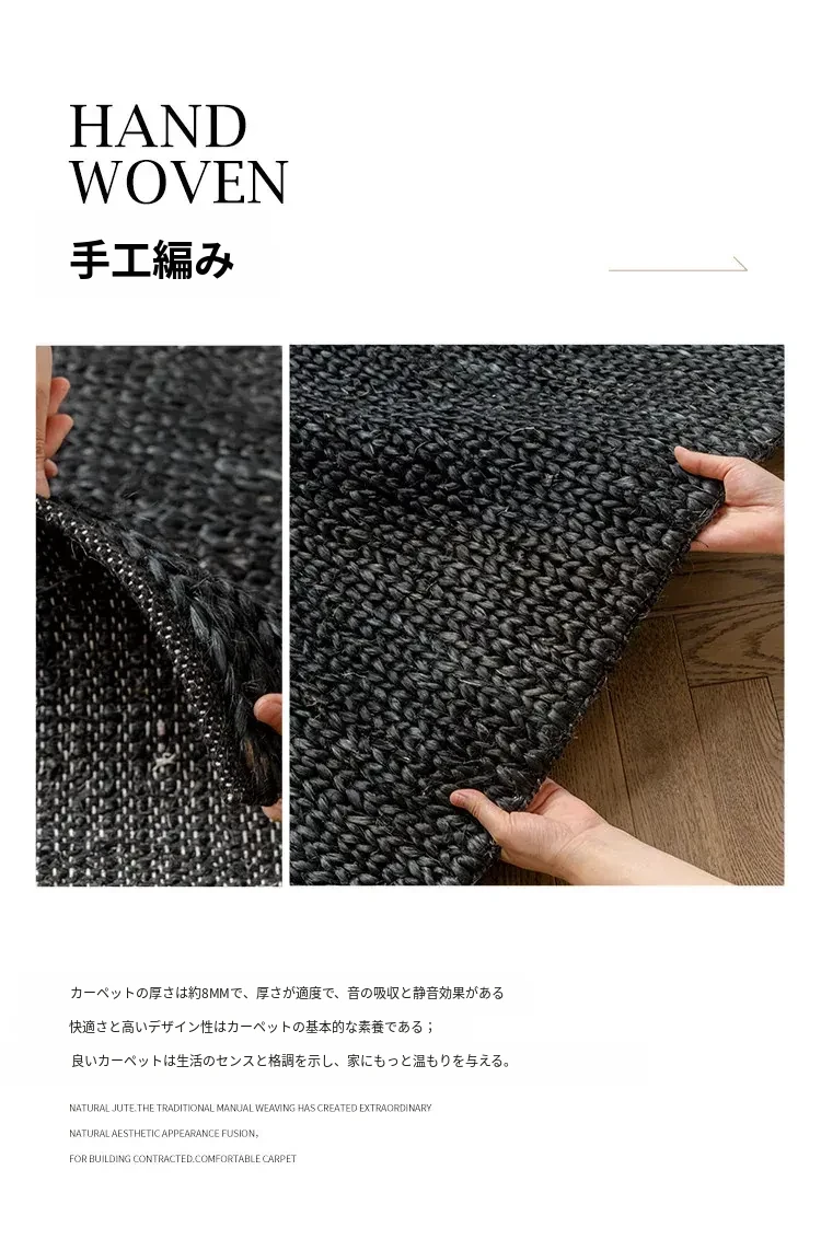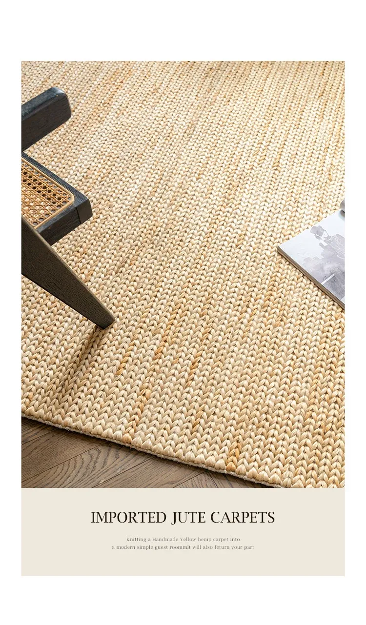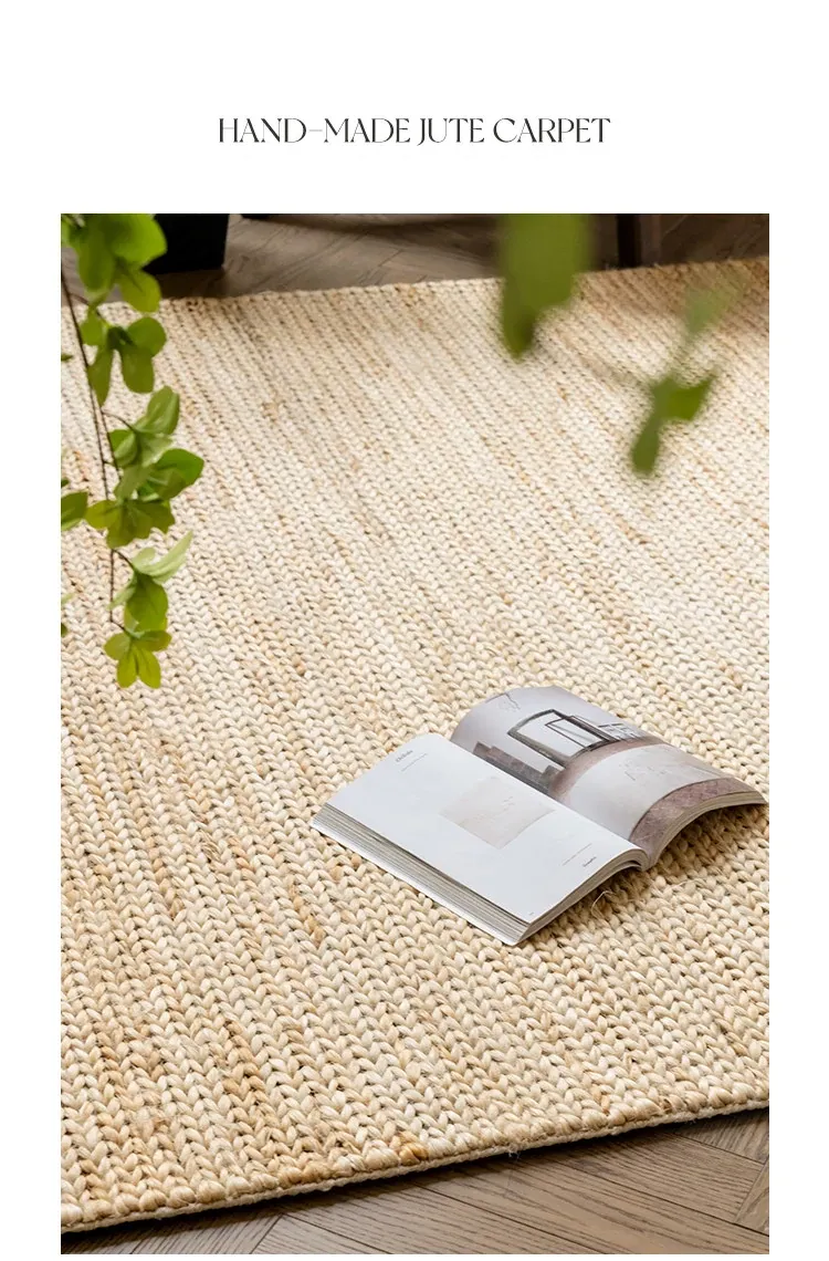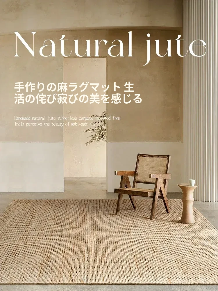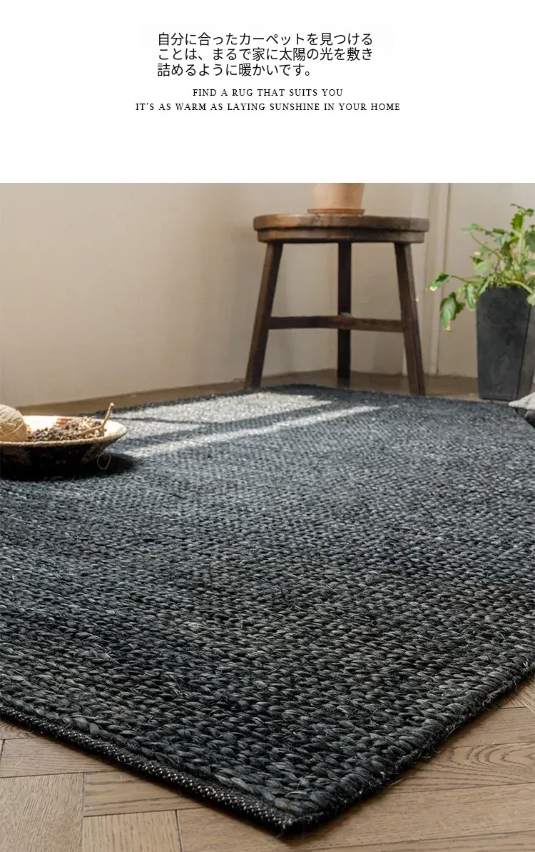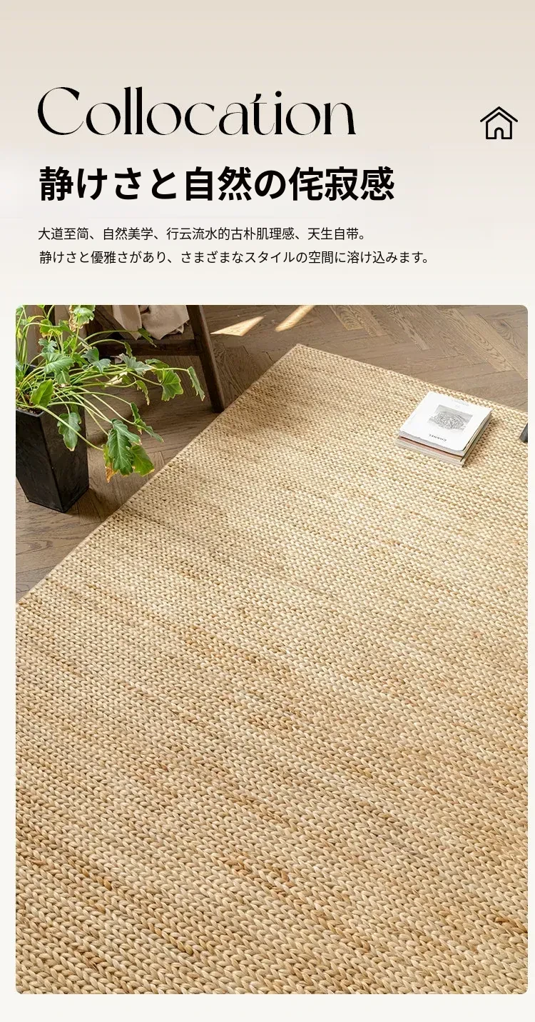 インド直輸入の北欧風シンプルモダン手作りジュートカーペット - アメリカンカントリーと中華禅の融合、リビングや寝室に最適な心地よい一品!