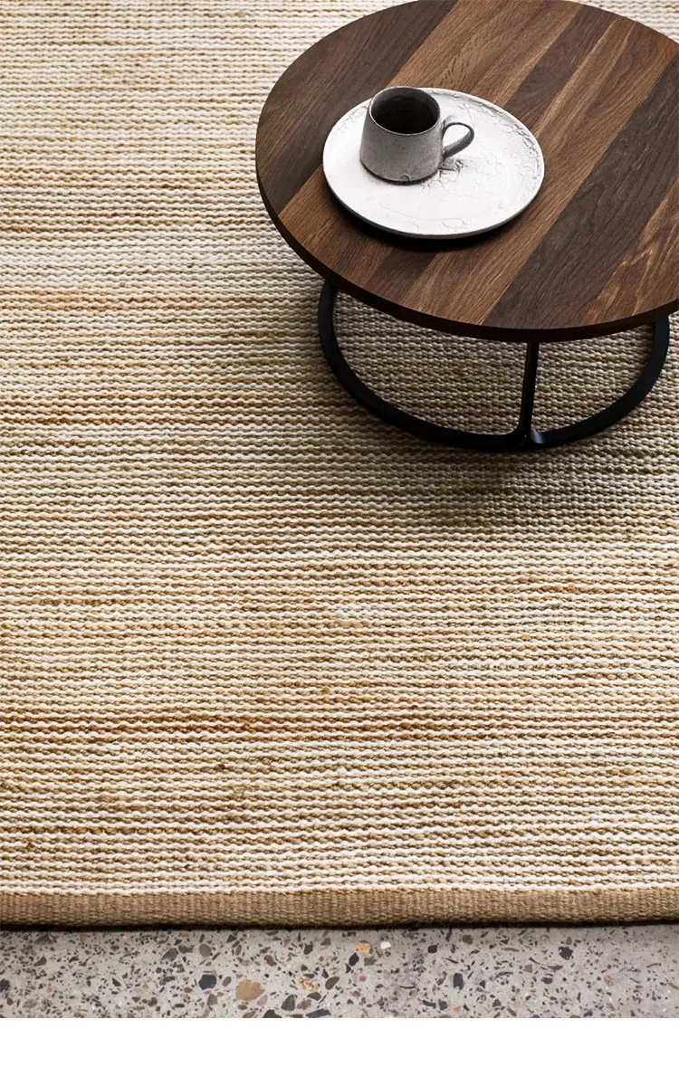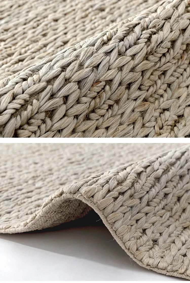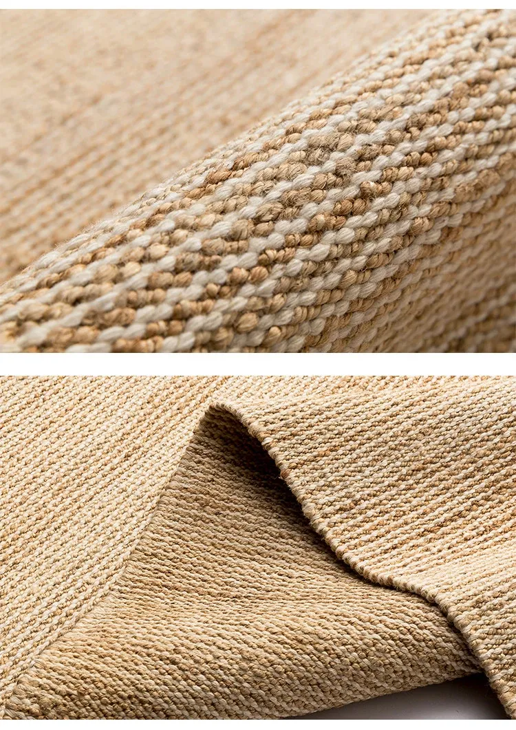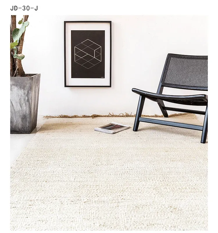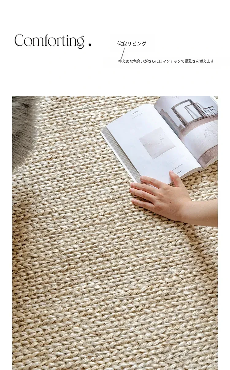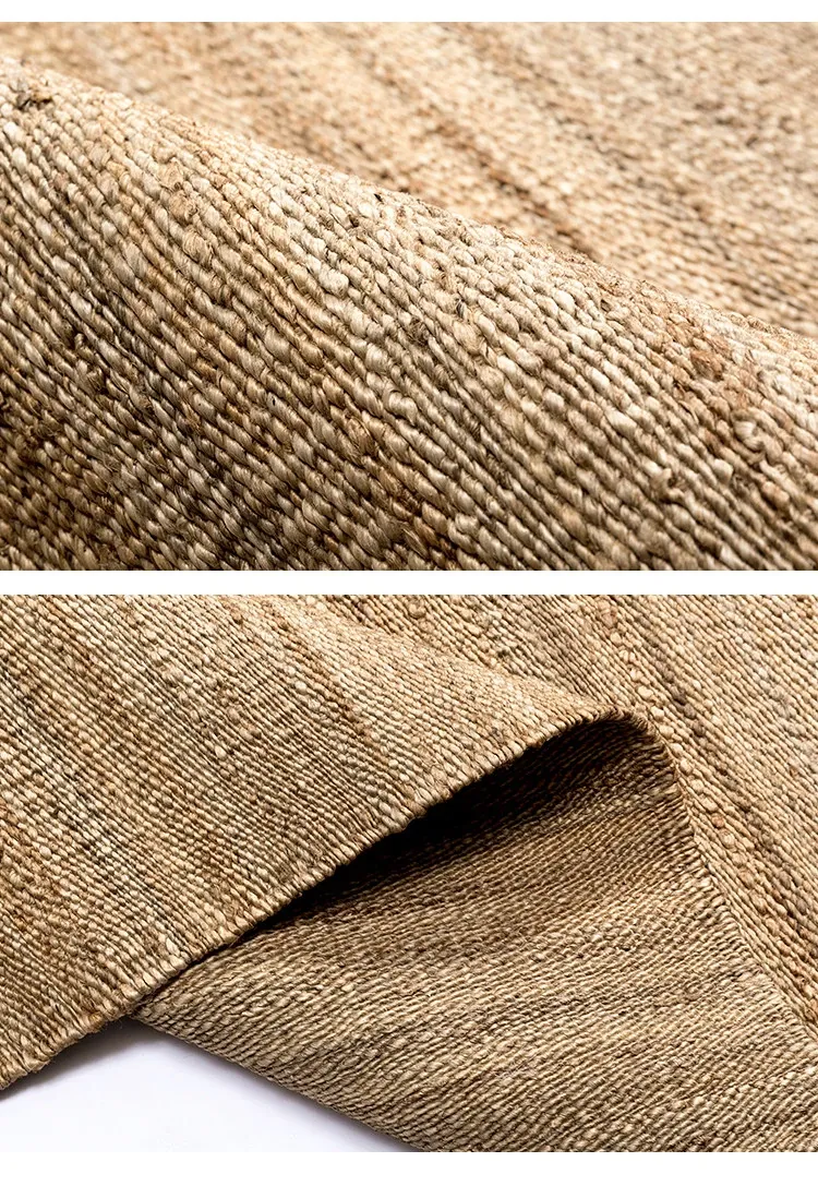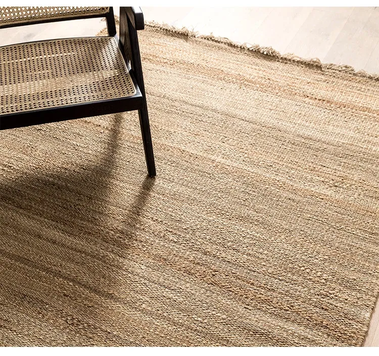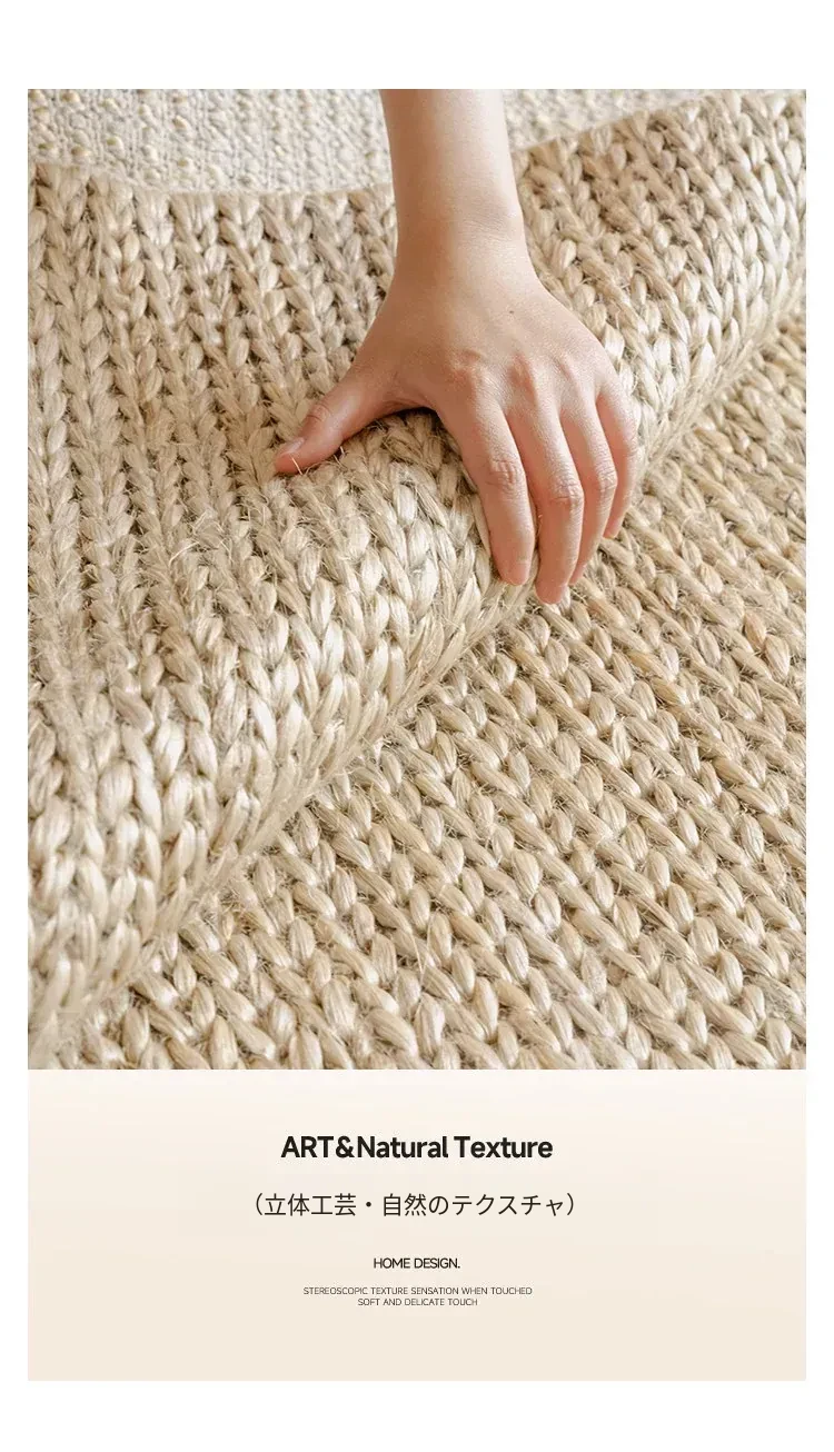 インド直輸入の北欧風シンプルモダン手作りジュートカーペット - アメリカンカントリーと中華禅の融合、リビングや寝室に最適な心地よい一品!
