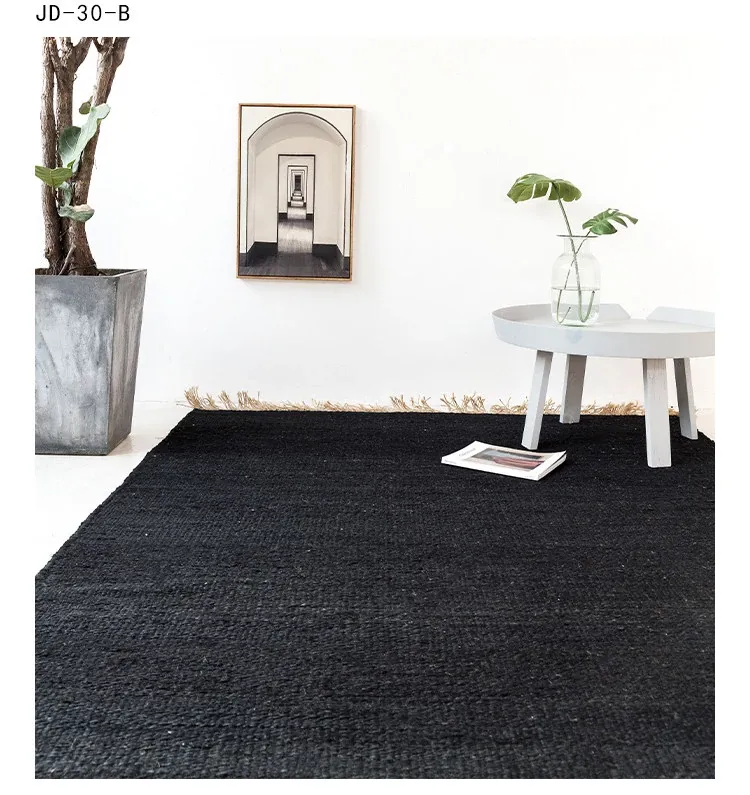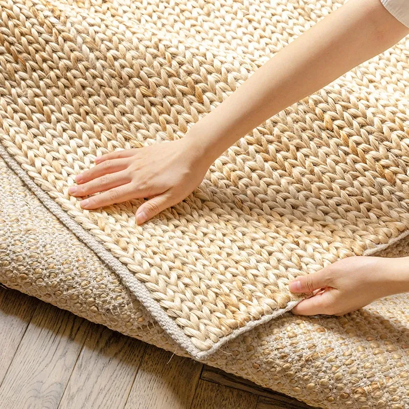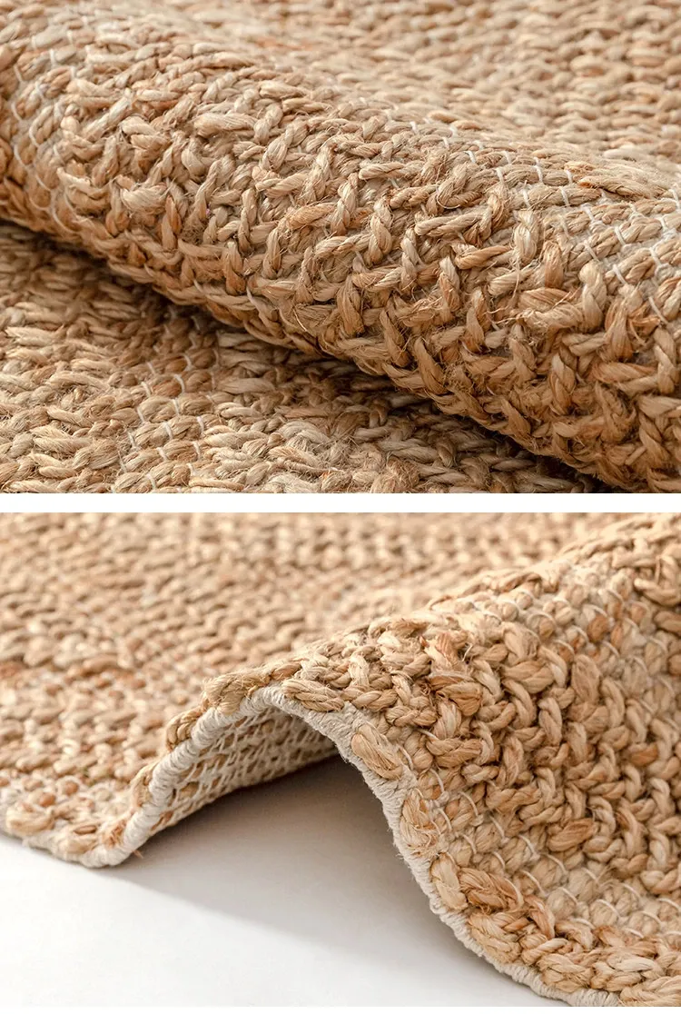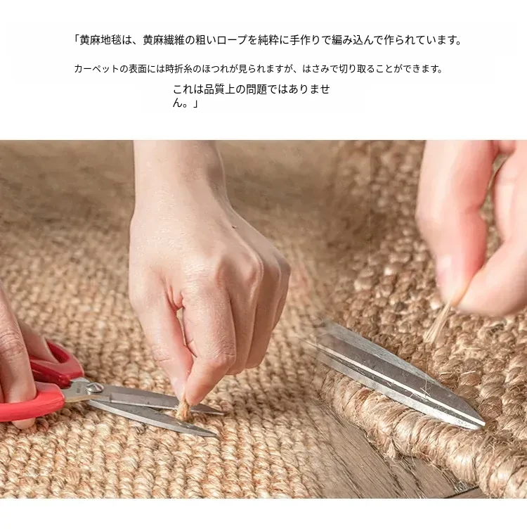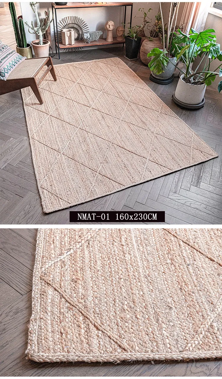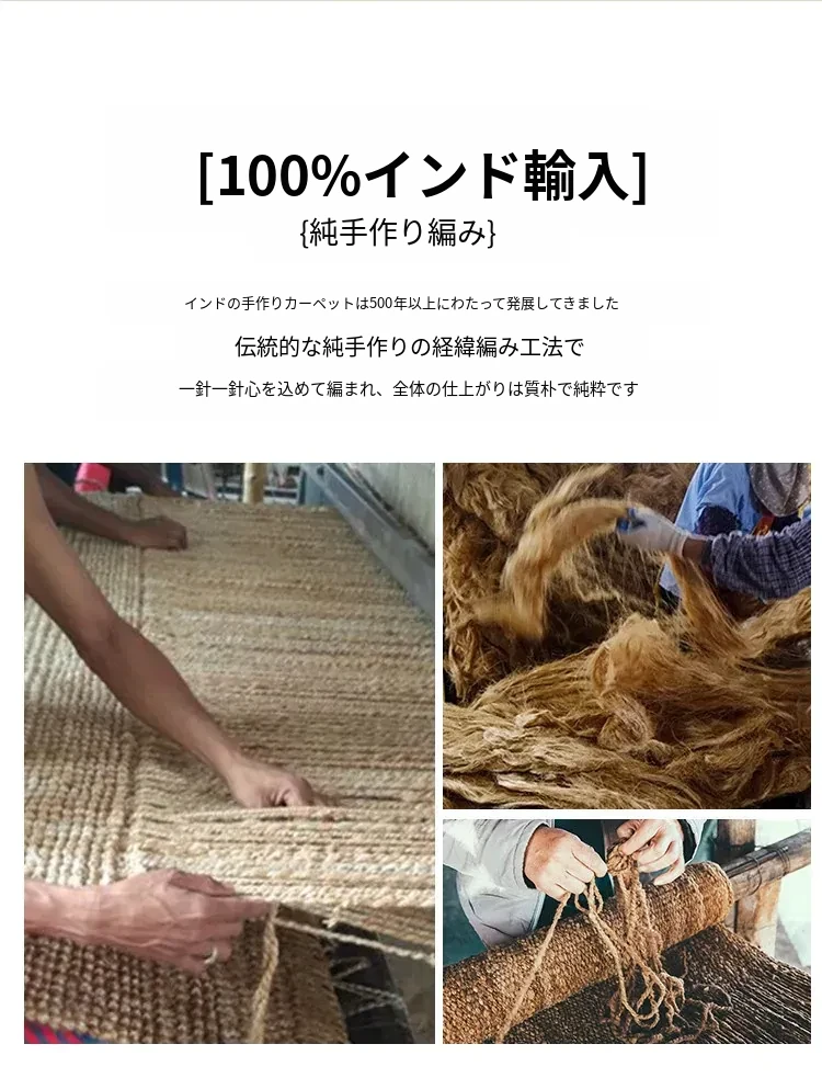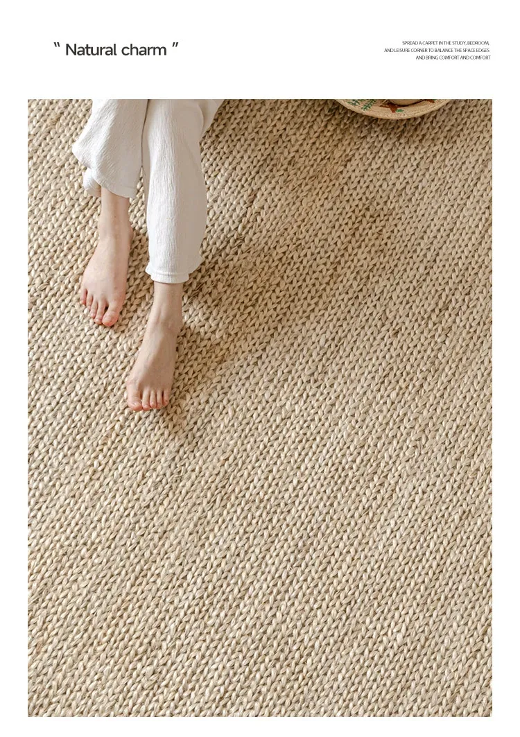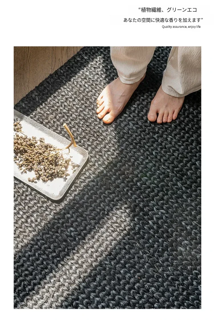 インド直輸入の北欧風シンプルモダン手作りジュートカーペット - アメリカンカントリーと中華禅の融合、リビングや寝室に最適な心地よい一品!