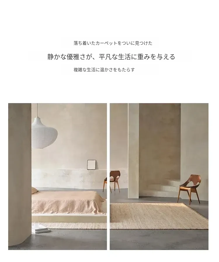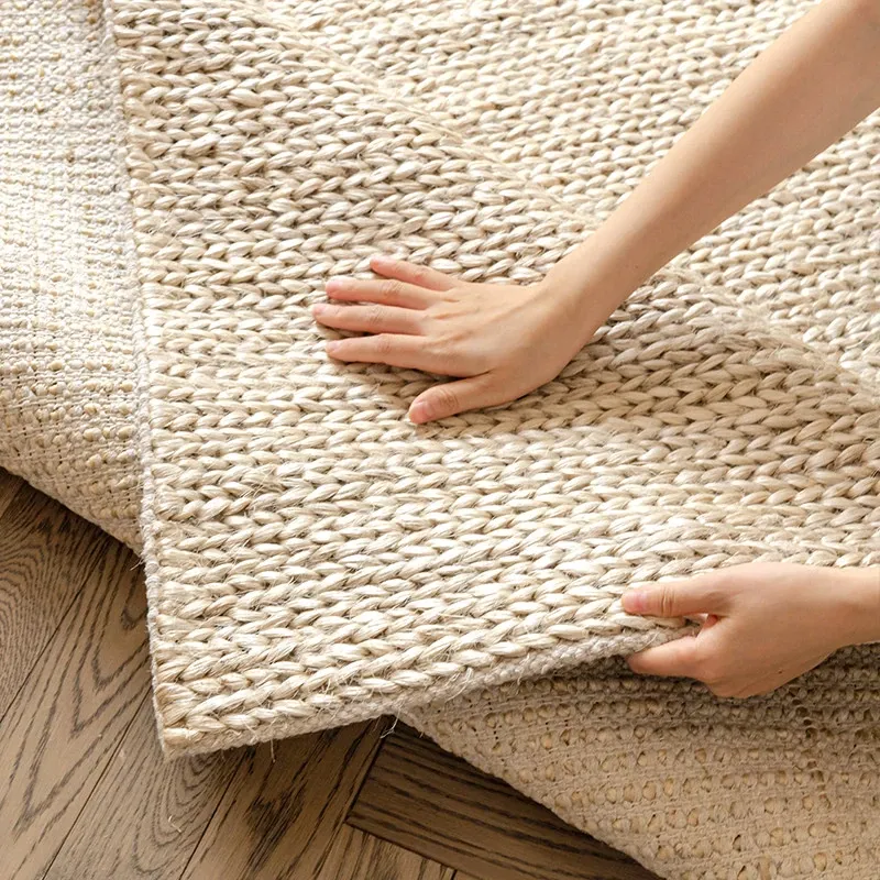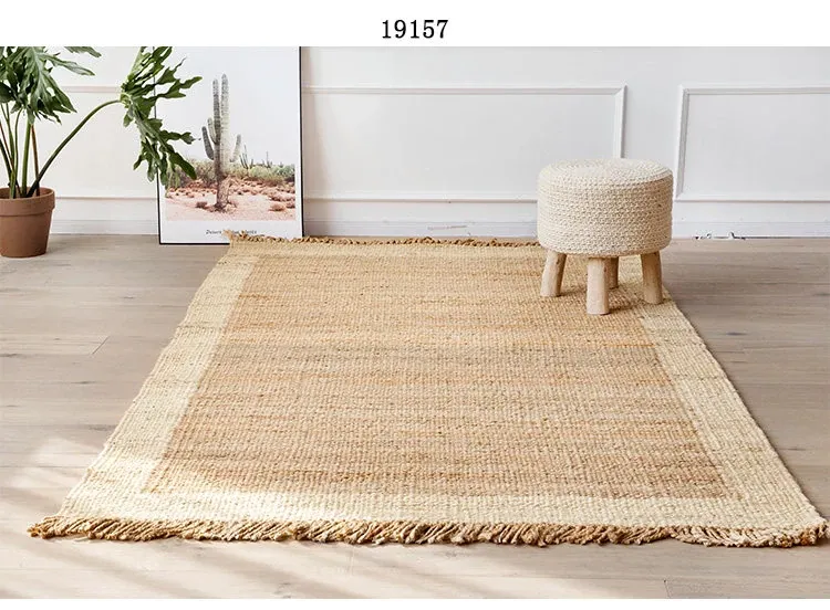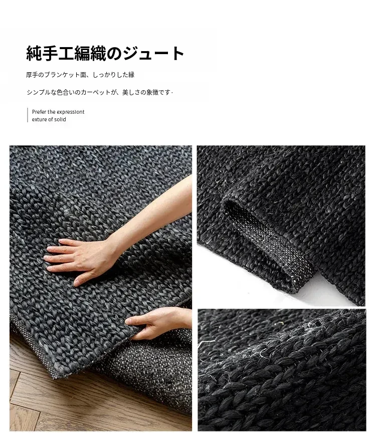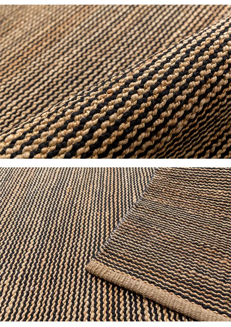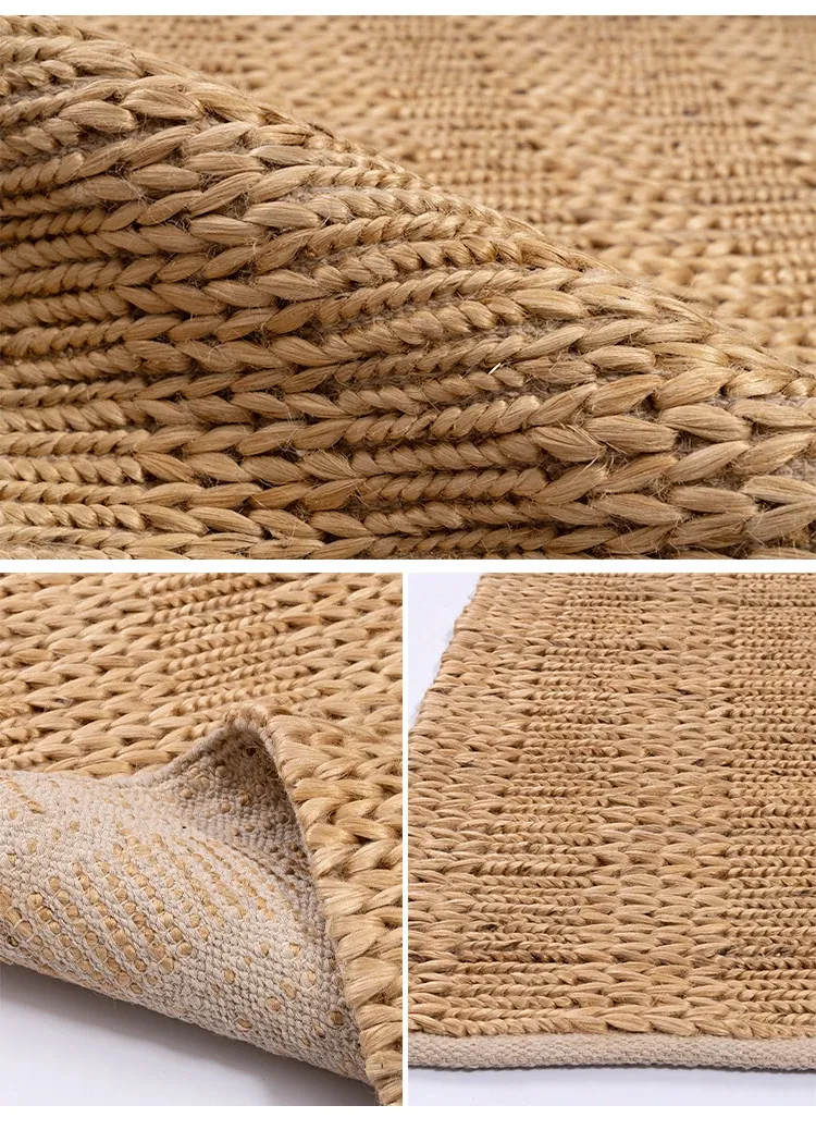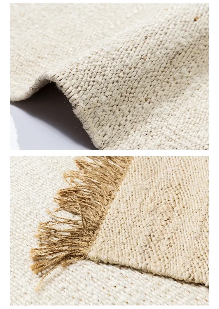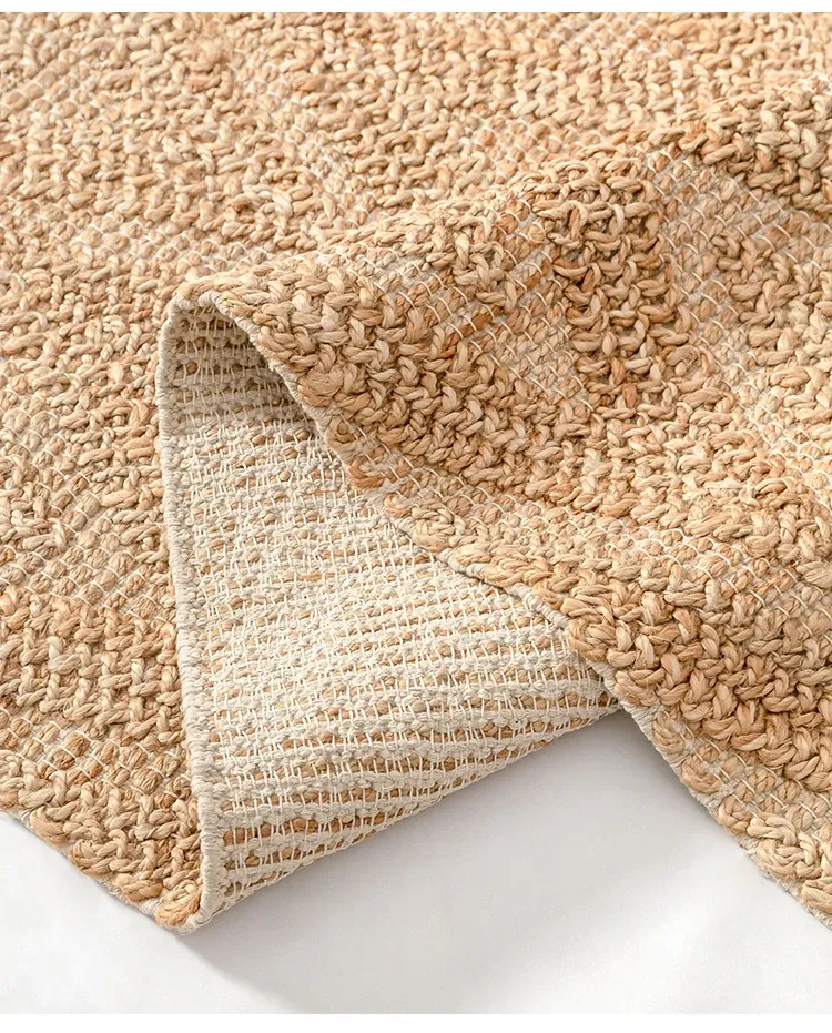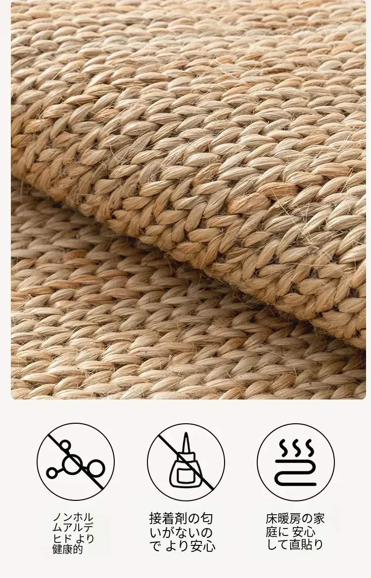 インド直輸入の北欧風シンプルモダン手作りジュートカーペット - アメリカンカントリーと中華禅の融合、リビングや寝室に最適な心地よい一品!