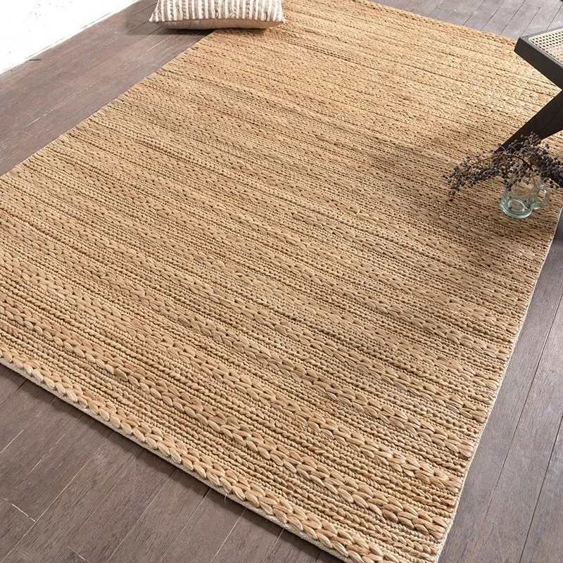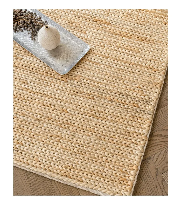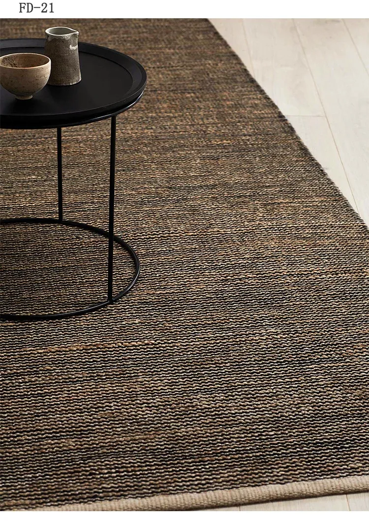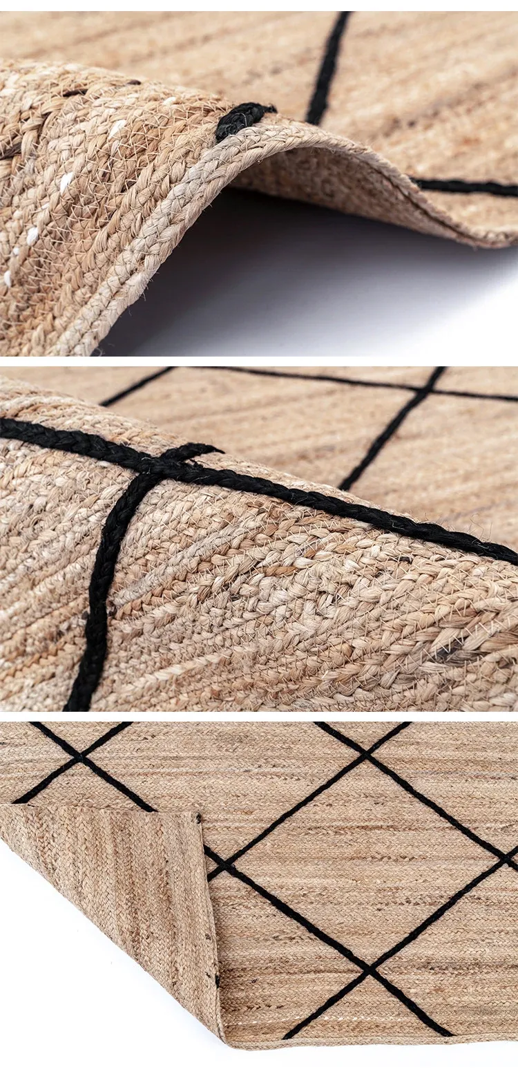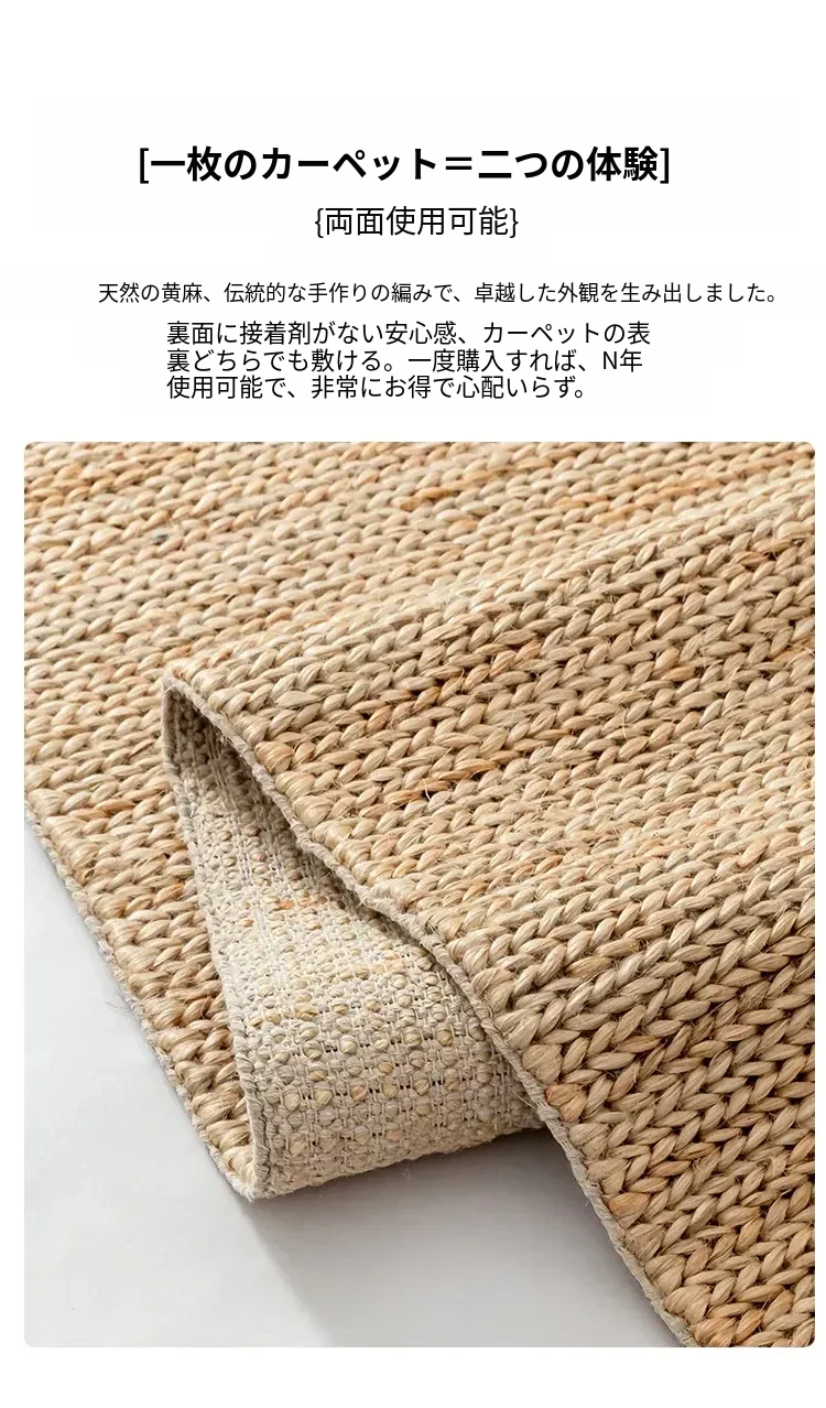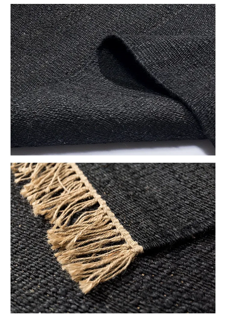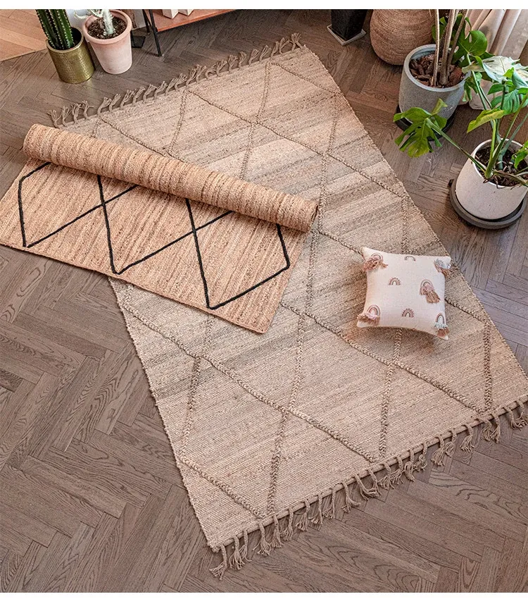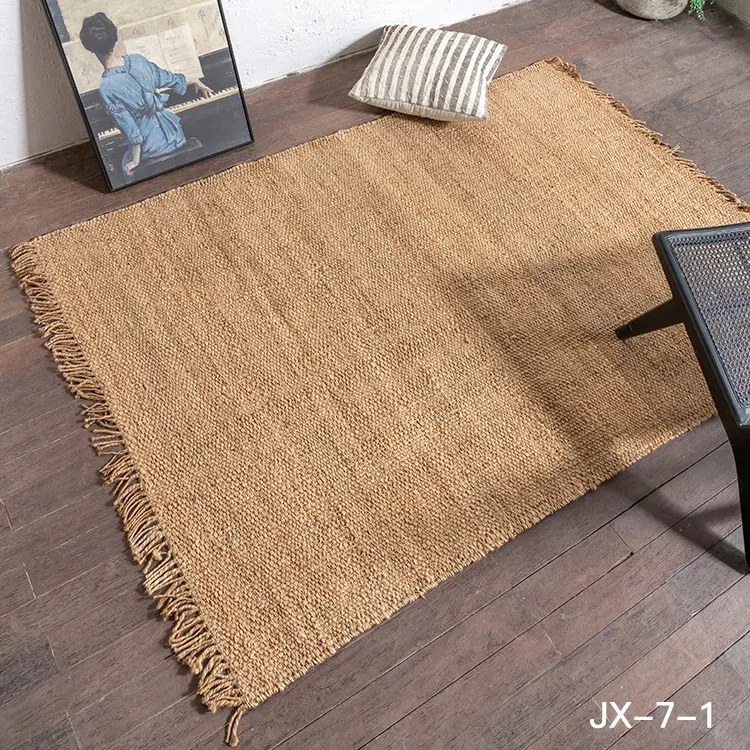 インド直輸入の北欧風シンプルモダン手作りジュートカーペット - アメリカンカントリーと中華禅の融合、リビングや寝室に最適な心地よい一品!