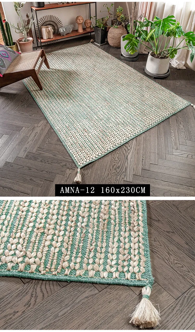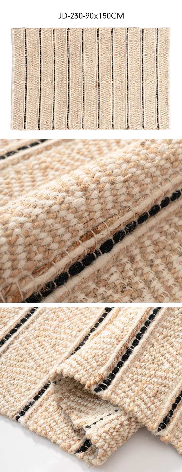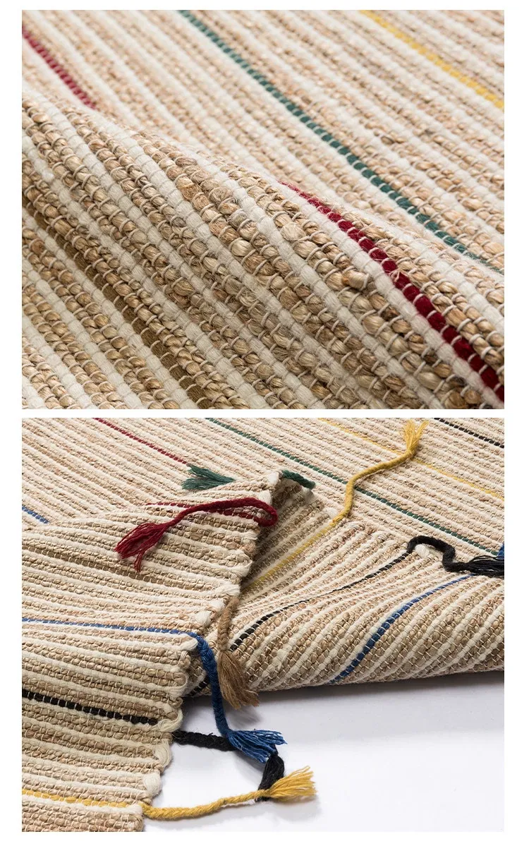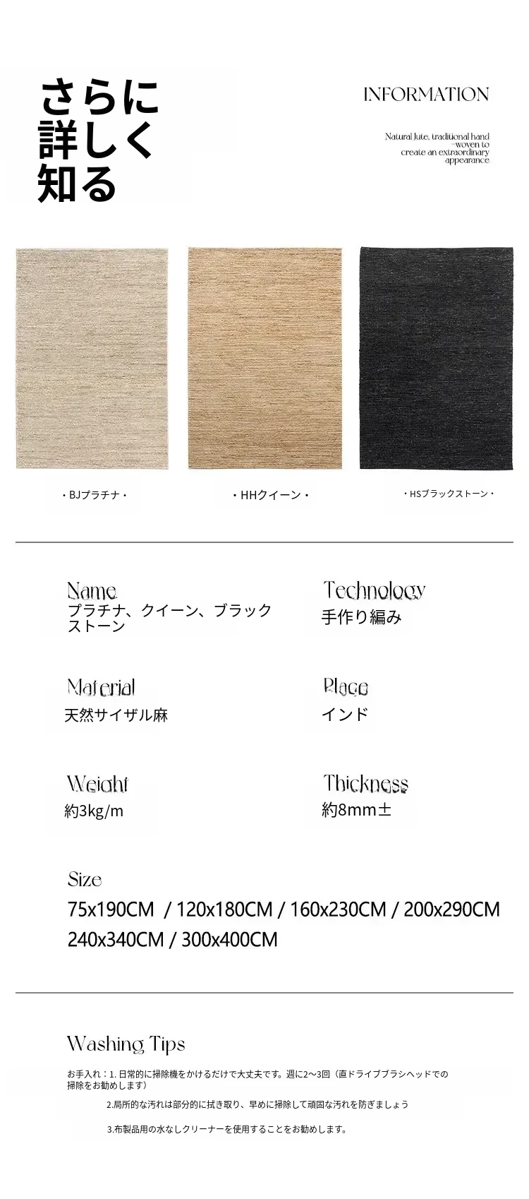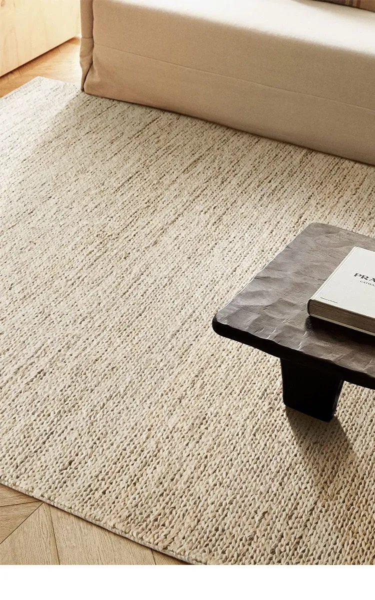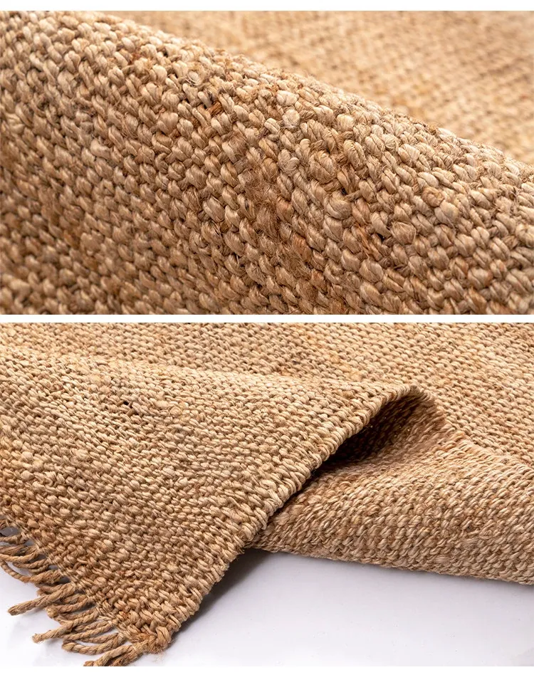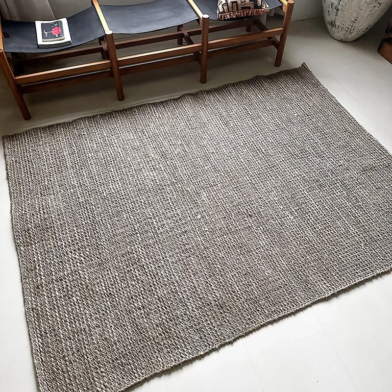 インド直輸入の北欧風シンプルモダン手作りジュートカーペット - アメリカンカントリーと中華禅の融合、リビングや寝室に最適な心地よい一品!