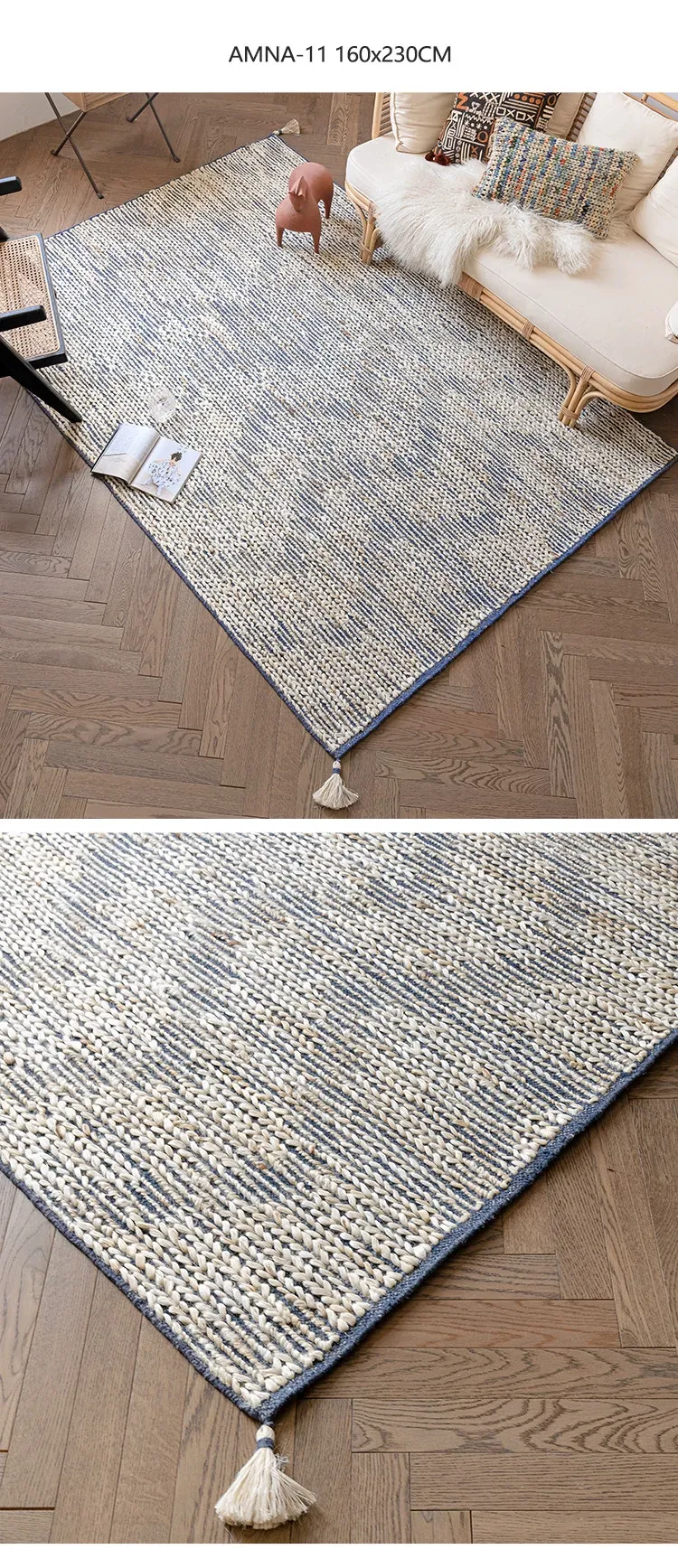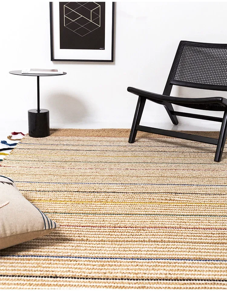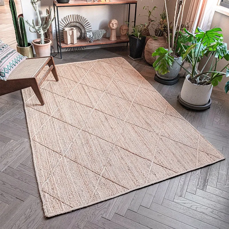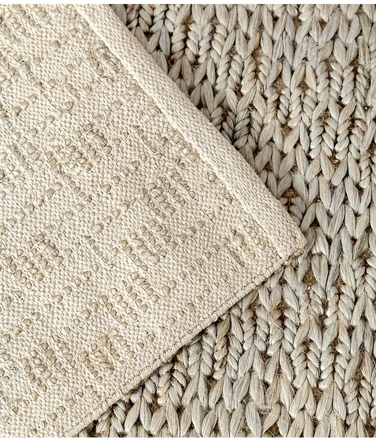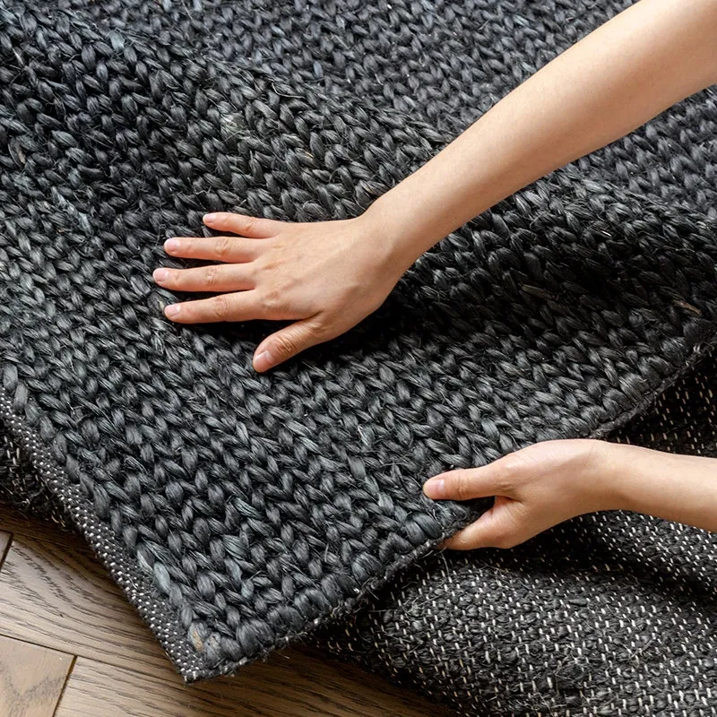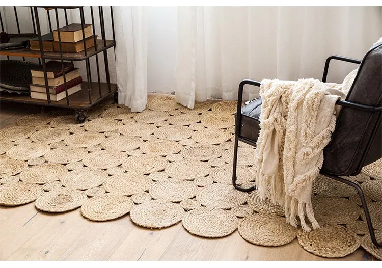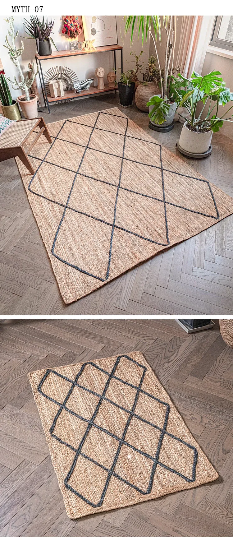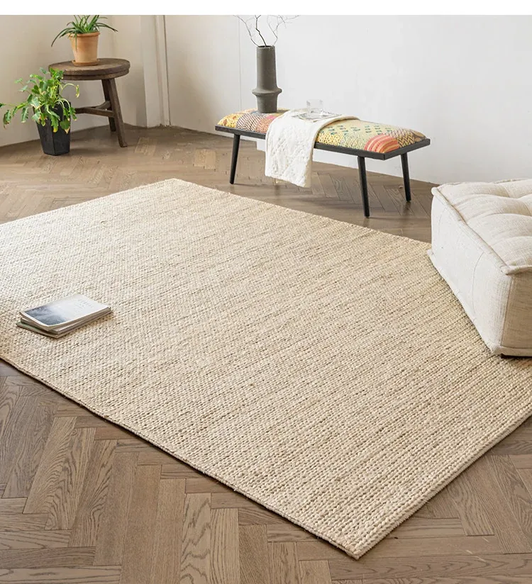 インド直輸入の北欧風シンプルモダン手作りジュートカーペット - アメリカンカントリーと中華禅の融合、リビングや寝室に最適な心地よい一品!