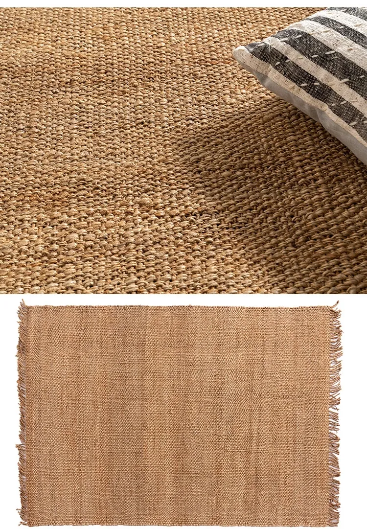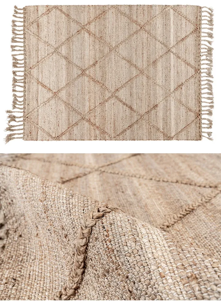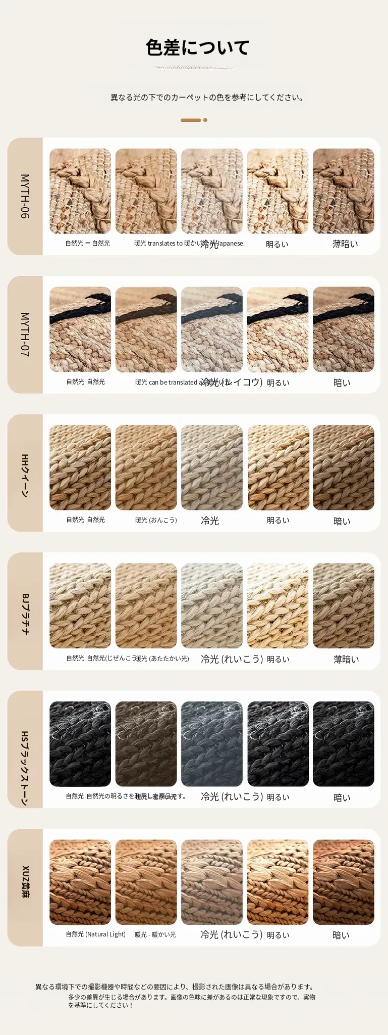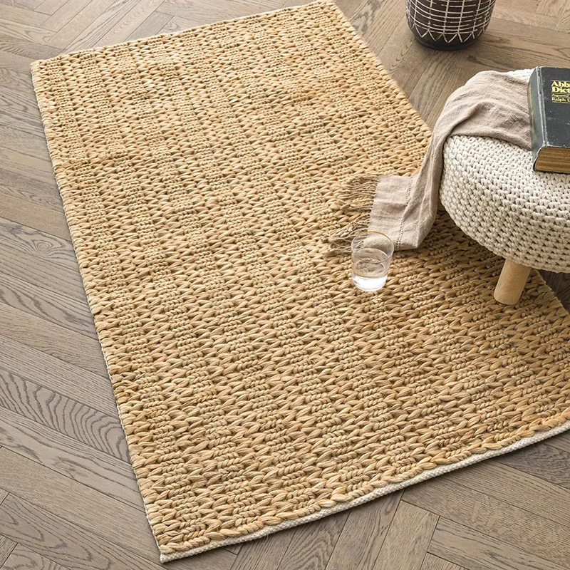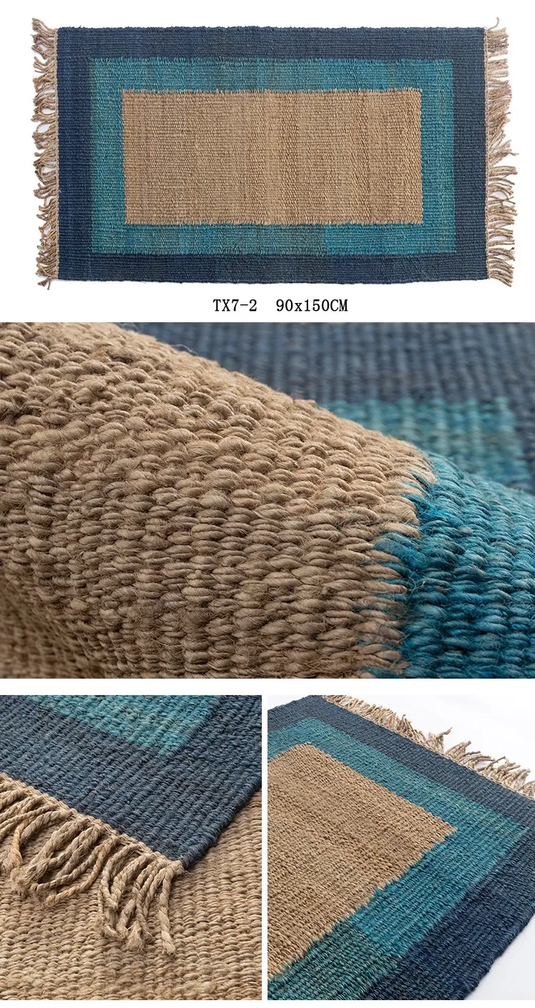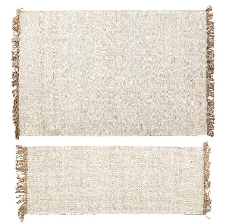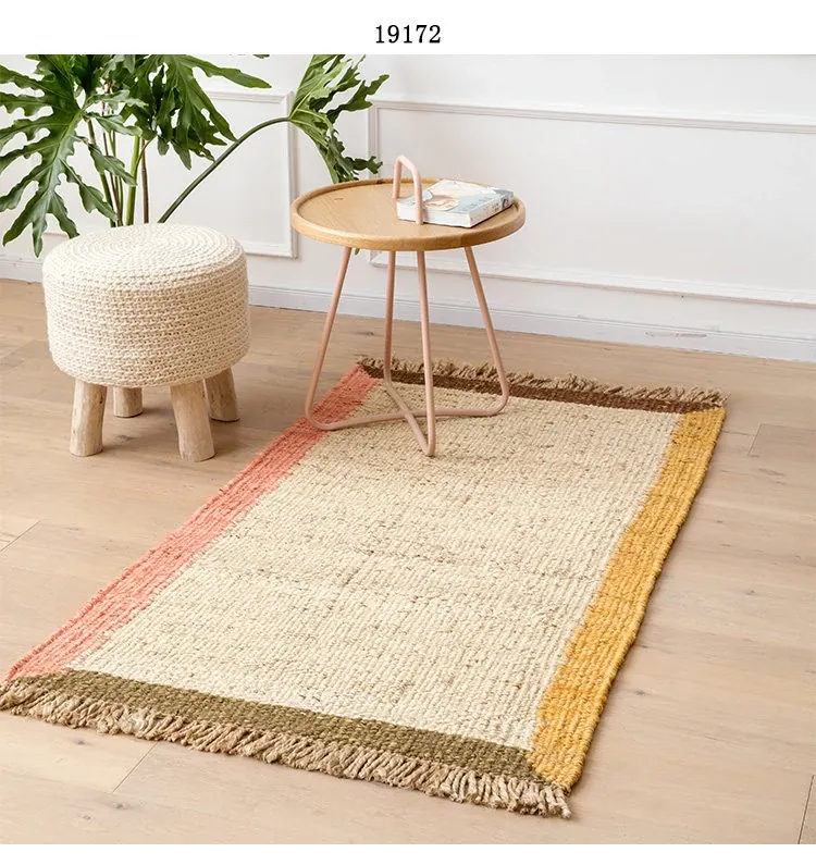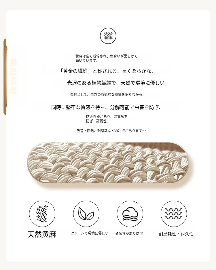 インド直輸入の北欧風シンプルモダン手作りジュートカーペット - アメリカンカントリーと中華禅の融合、リビングや寝室に最適な心地よい一品!