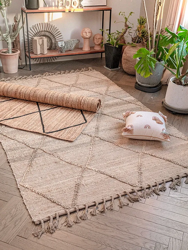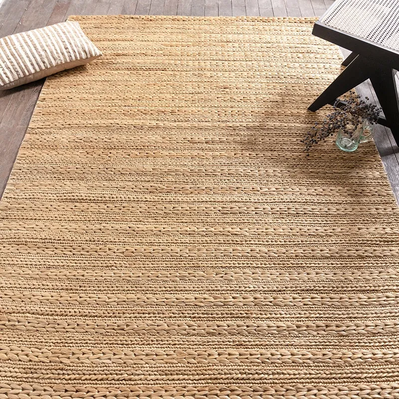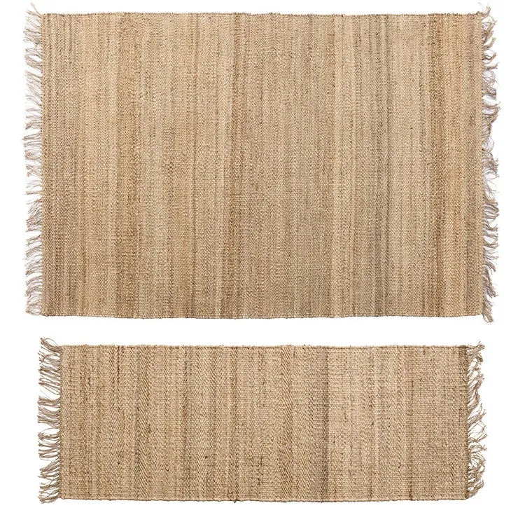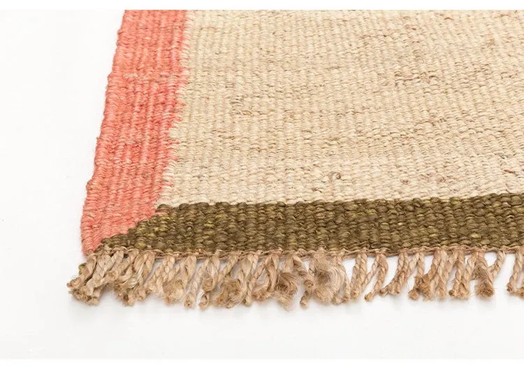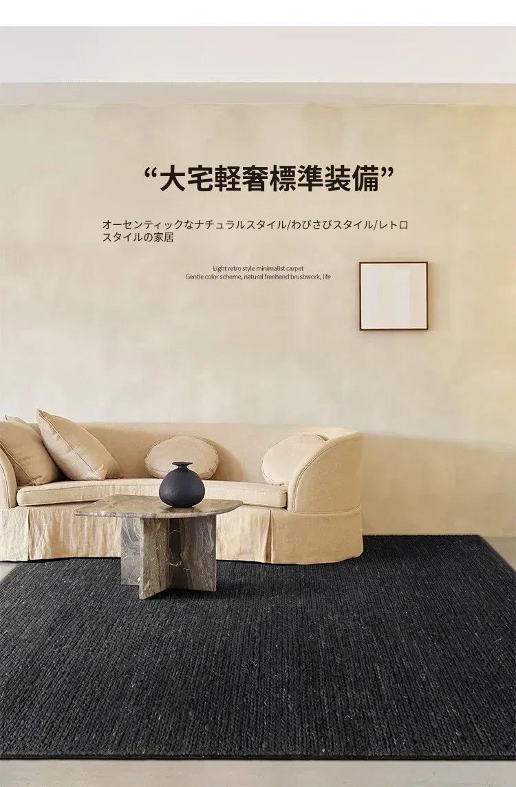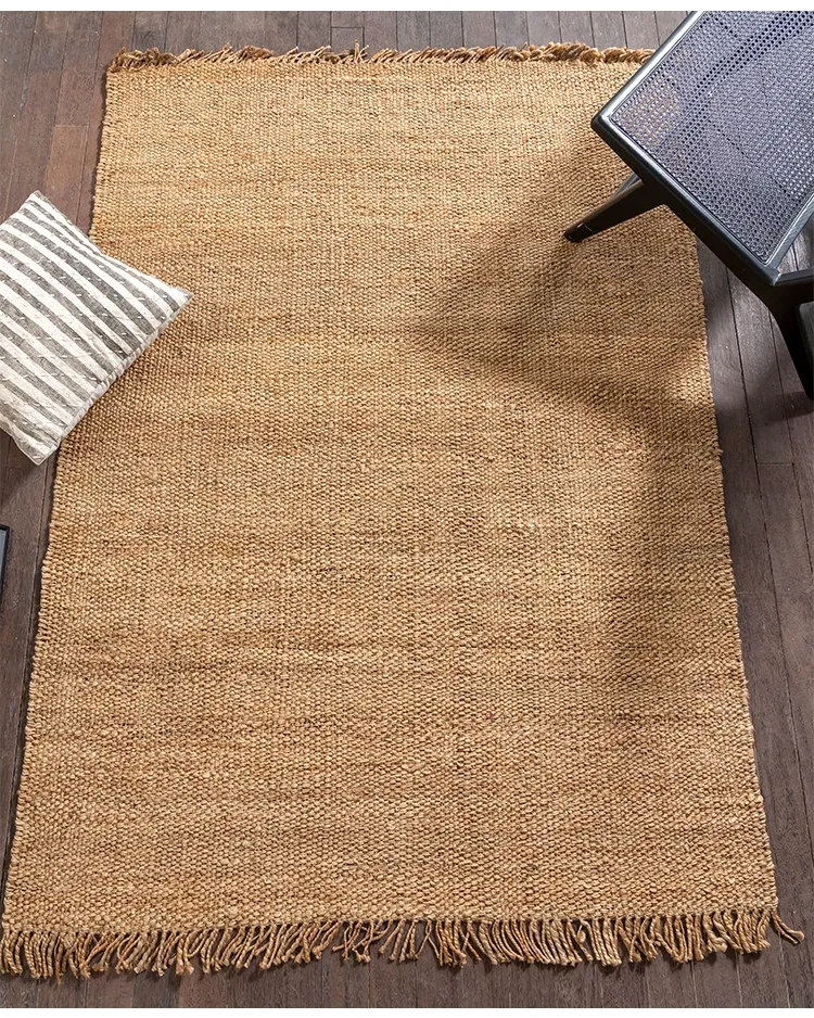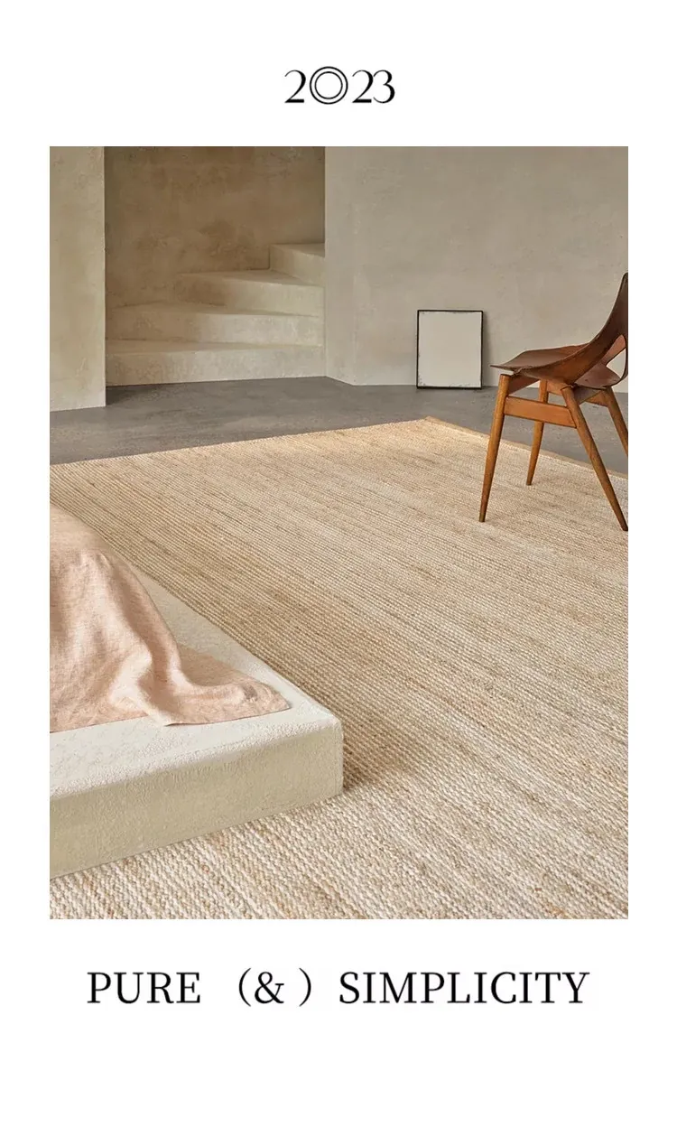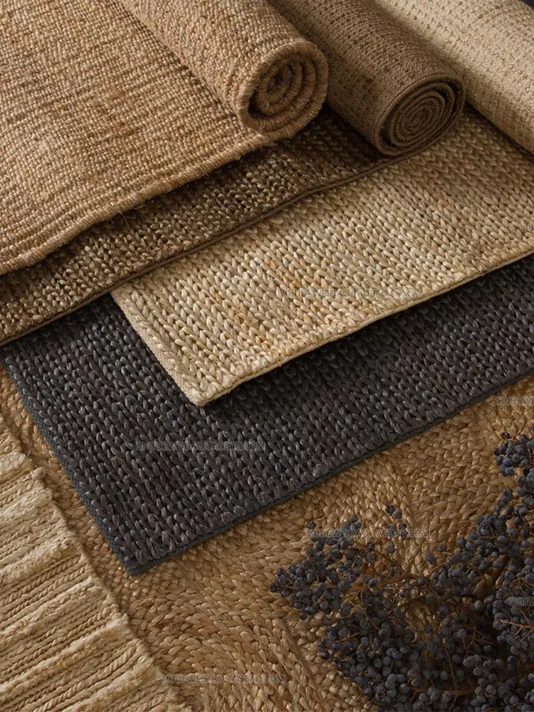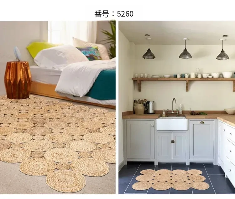 インド直輸入の北欧風シンプルモダン手作りジュートカーペット - アメリカンカントリーと中華禅の融合、リビングや寝室に最適な心地よい一品!