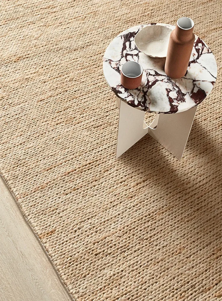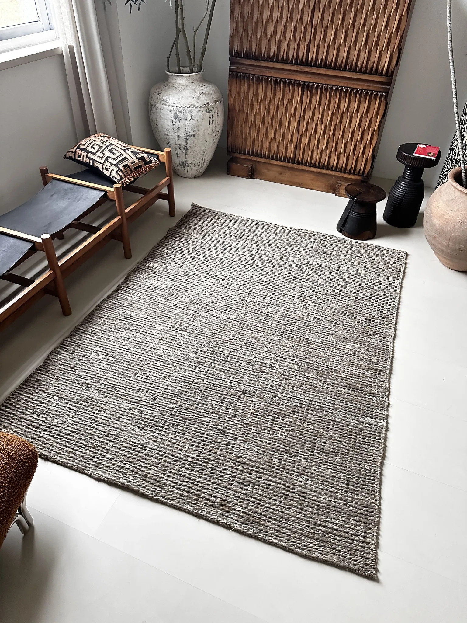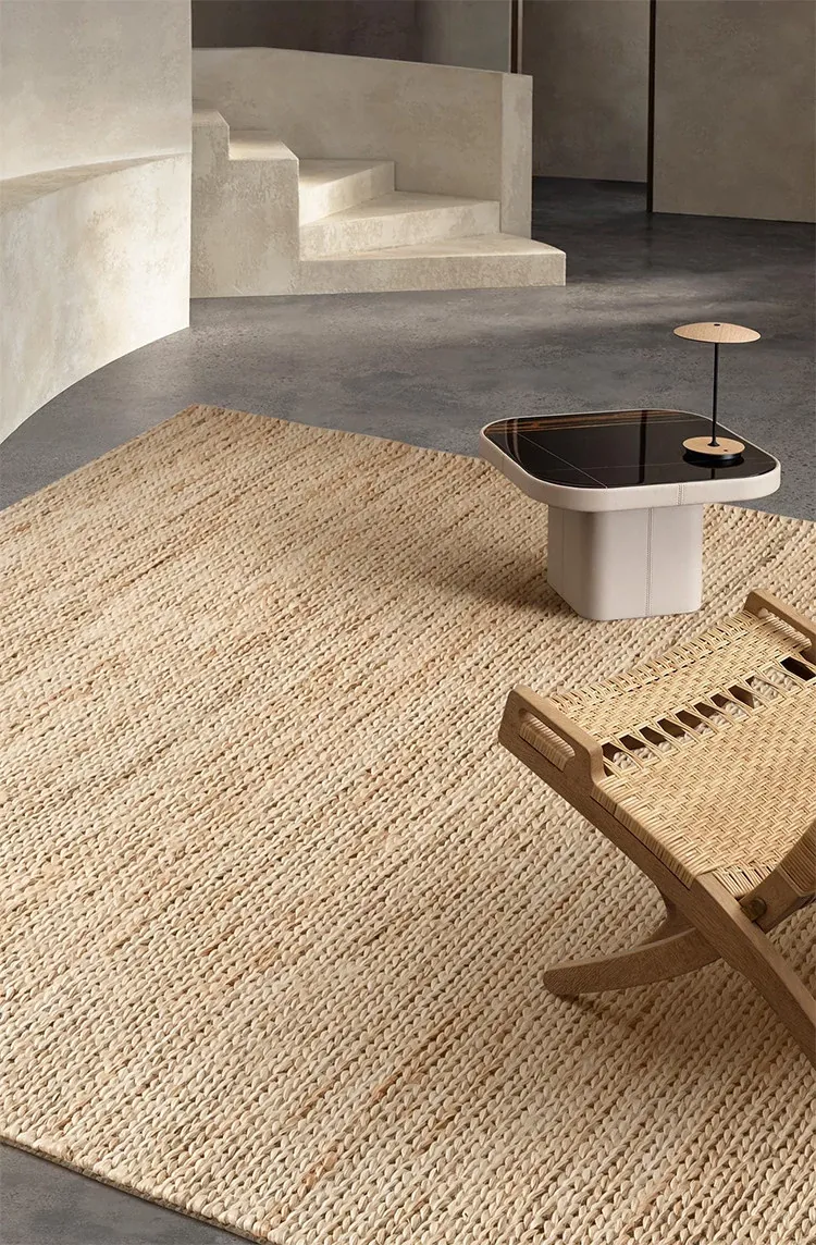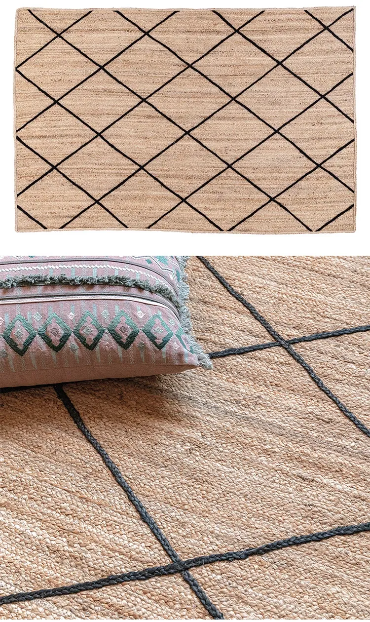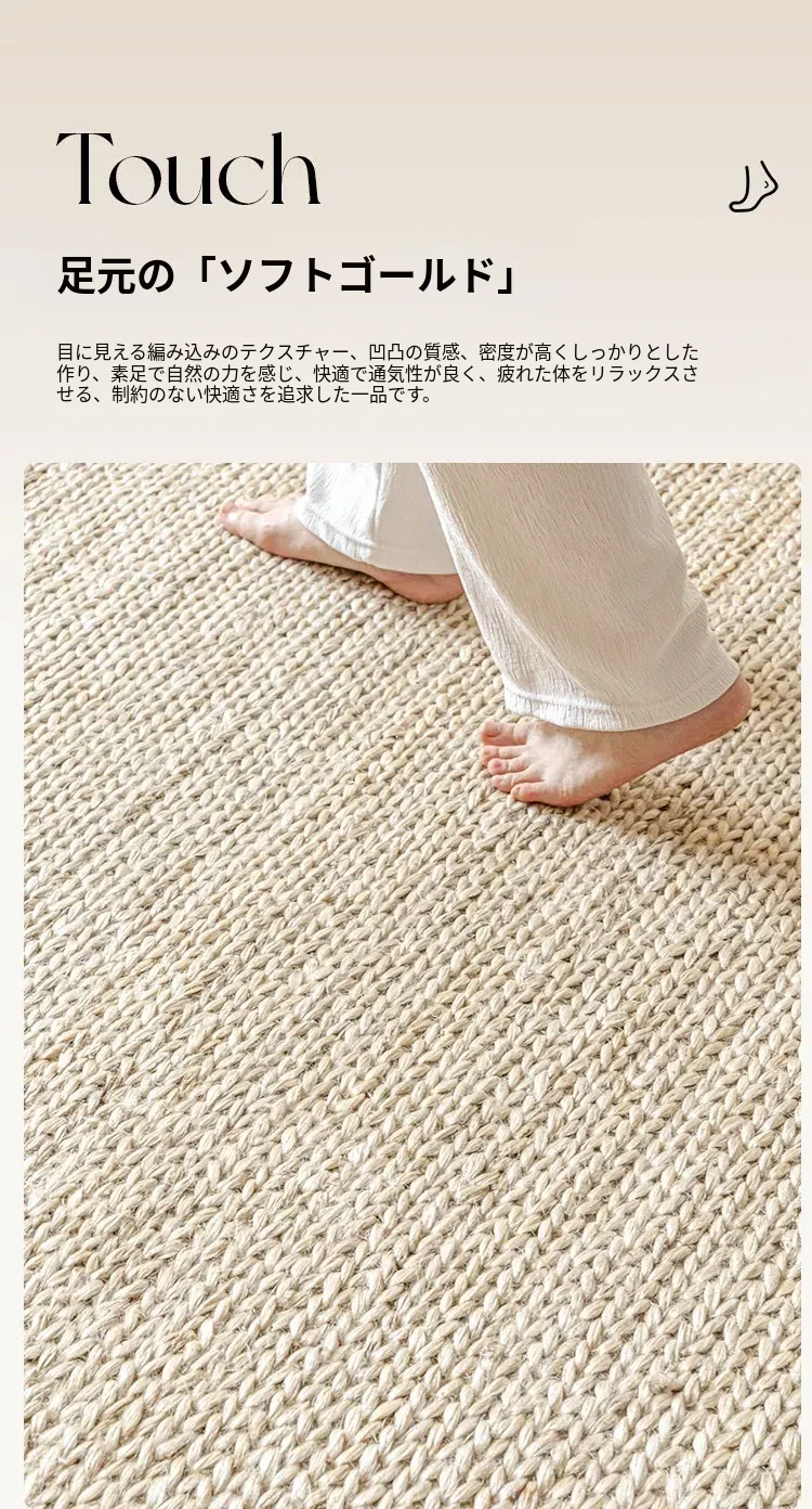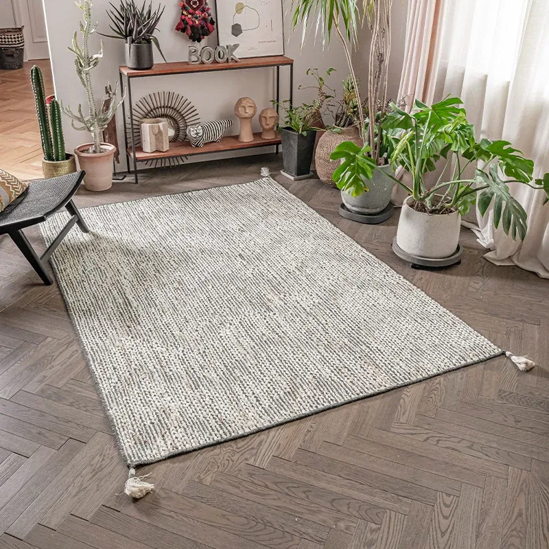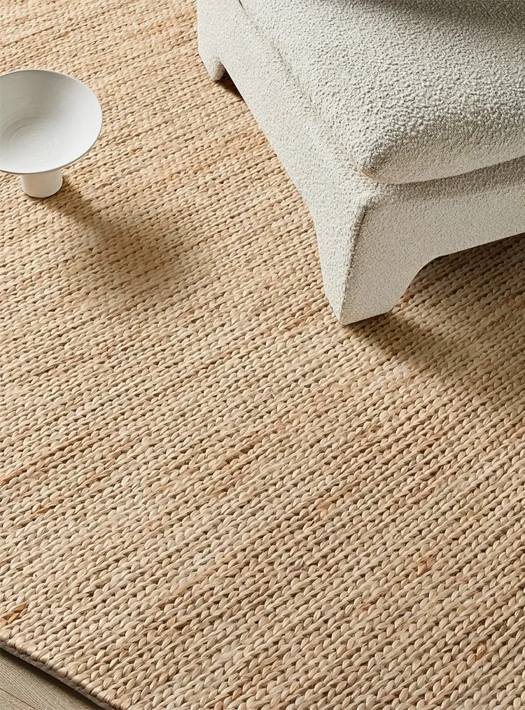インド直輸入の北欧風シンプルモダン手作りジュートカーペット - アメリカンカントリーと中華禅の融合、リビングや寝室に最適な心地よい一品!