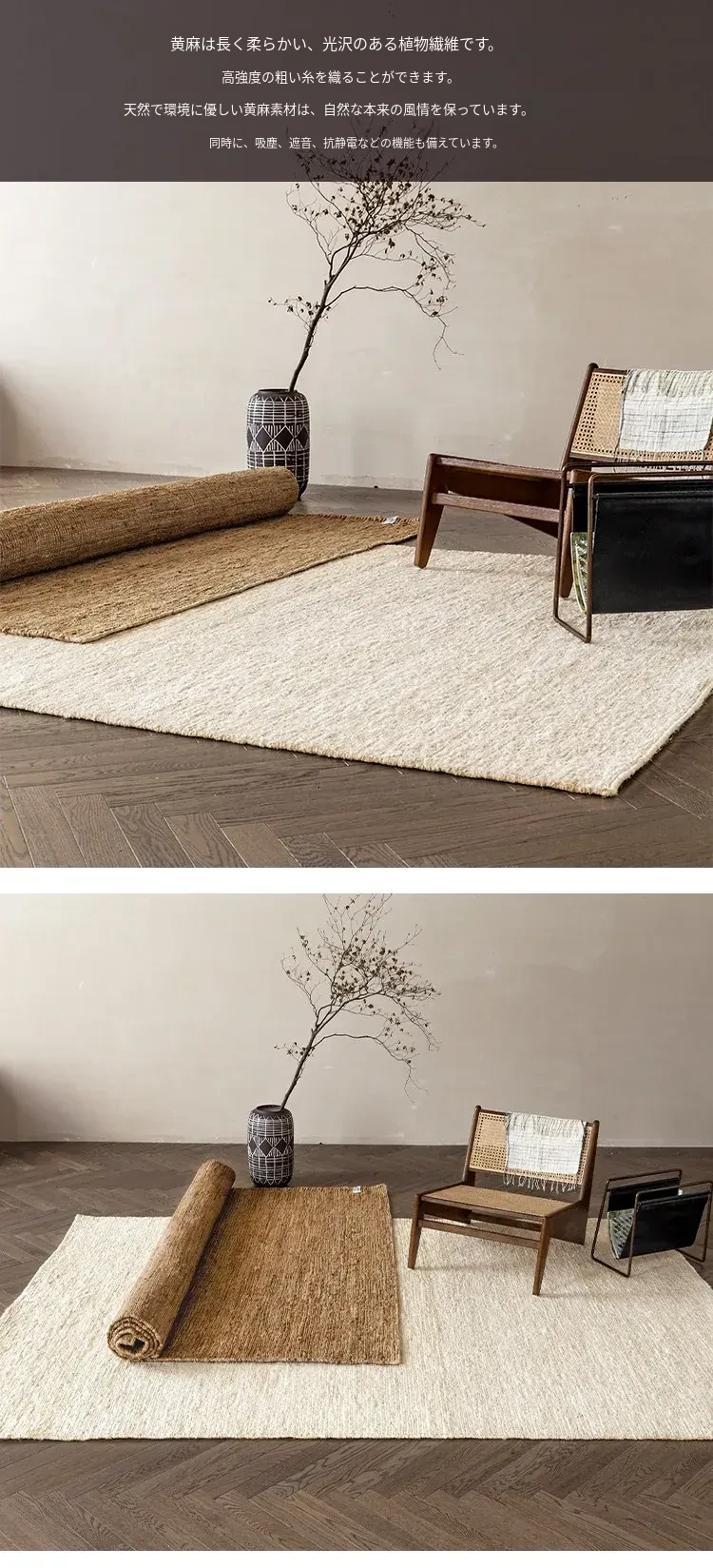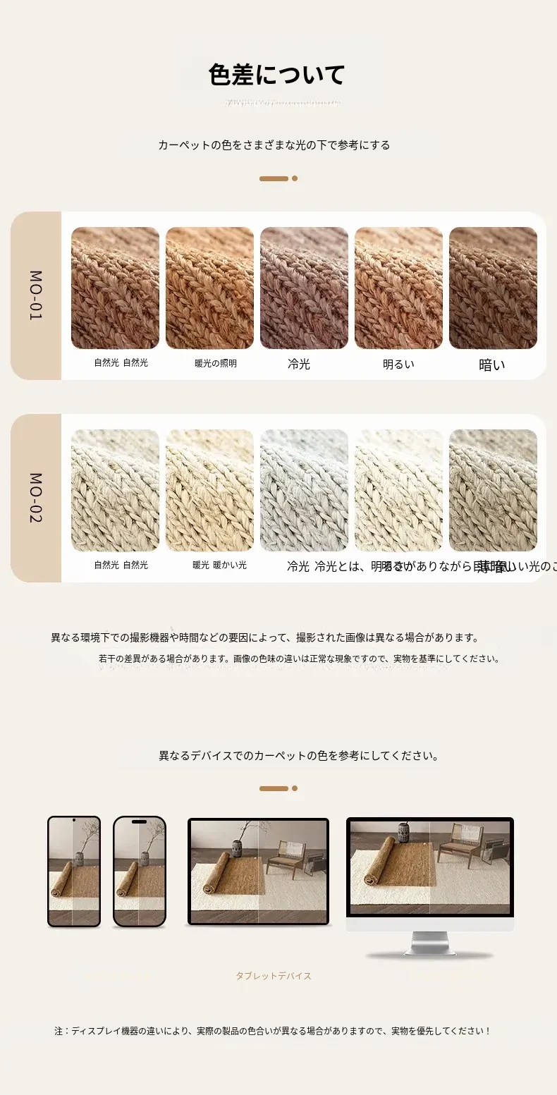 視覚と味覚を楽しむインポートジュートラグ、モダンでシンプルなデザインが魅力!田舎風の新中式スタイルにぴったりな、リビングルーム用の手作り和風ソファ&テーブルマット。