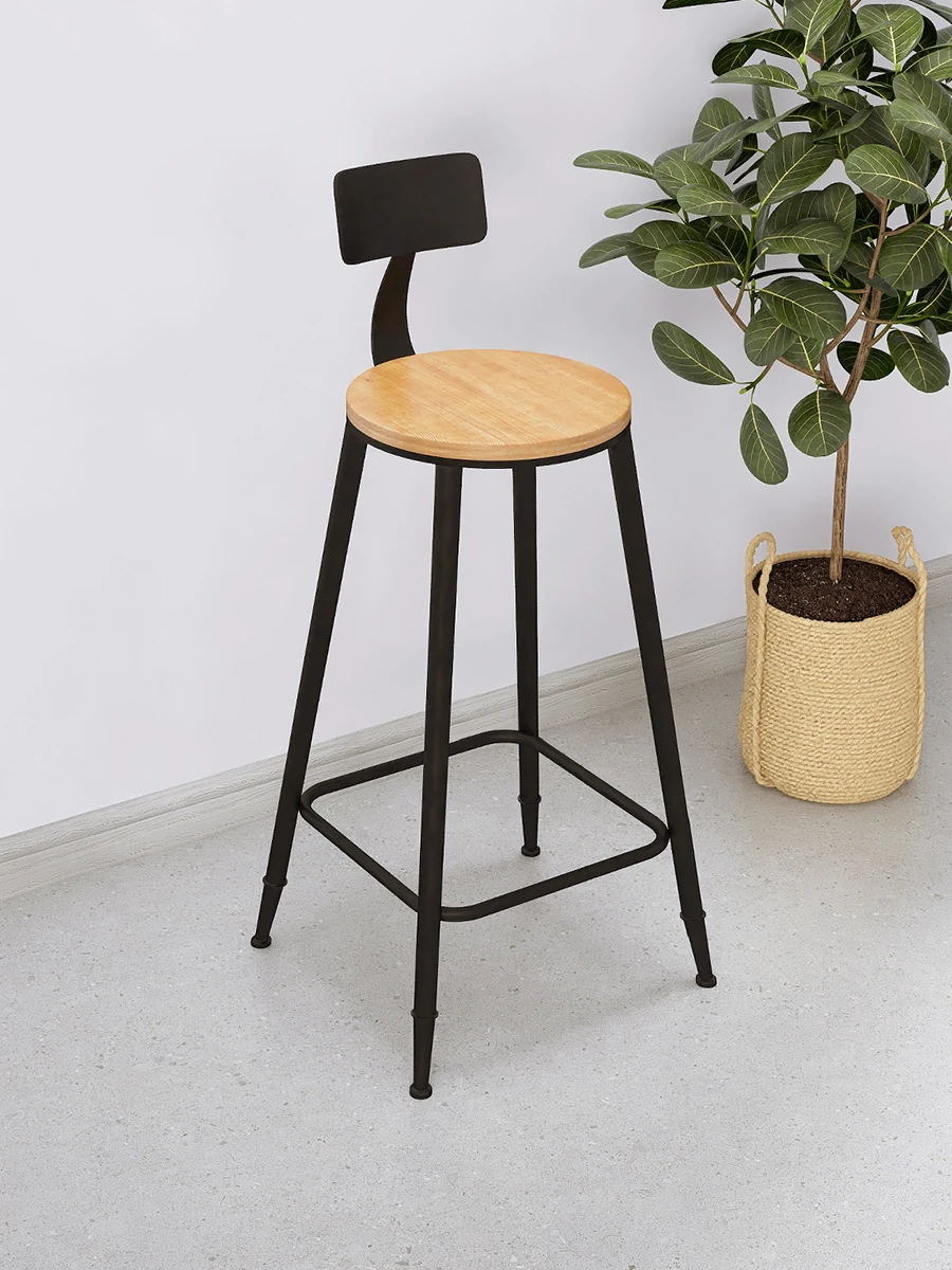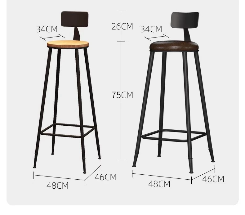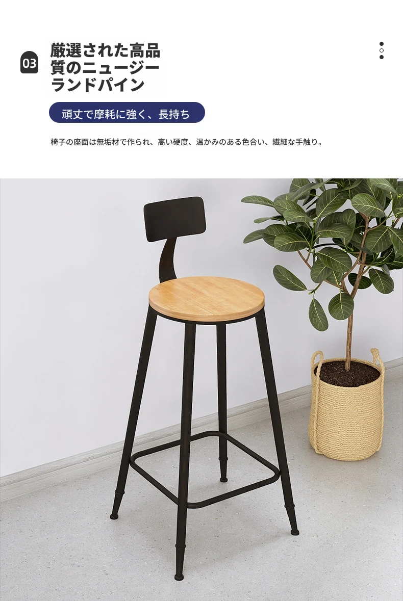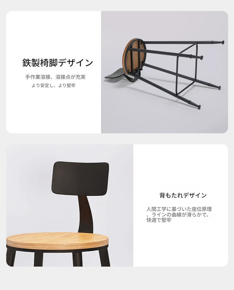 インダストリアルスタイル バースツール 鉄製&無垢材 高さ調節可能 カフェ・バー・レストランに最適 背もたれ付き おしゃれなデザインで快適な座り心地 1251