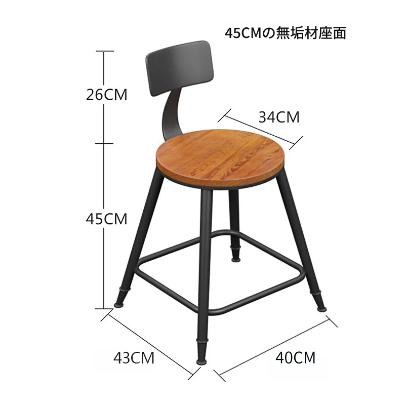 座面高45CM【背もたれ付き 木製】