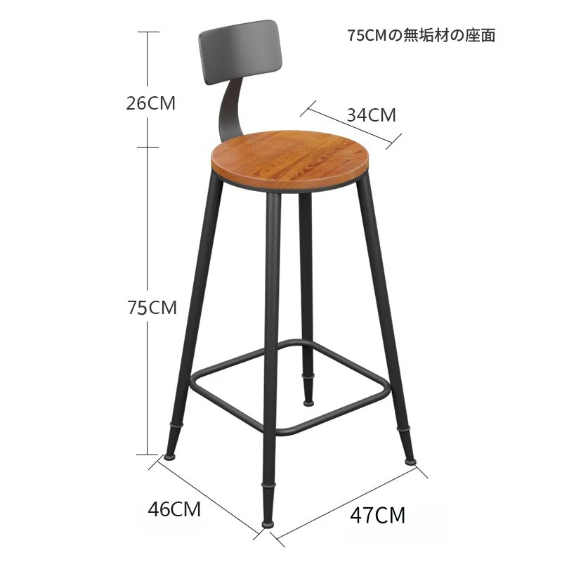 座面高75CM【背もたれ付き 木製】