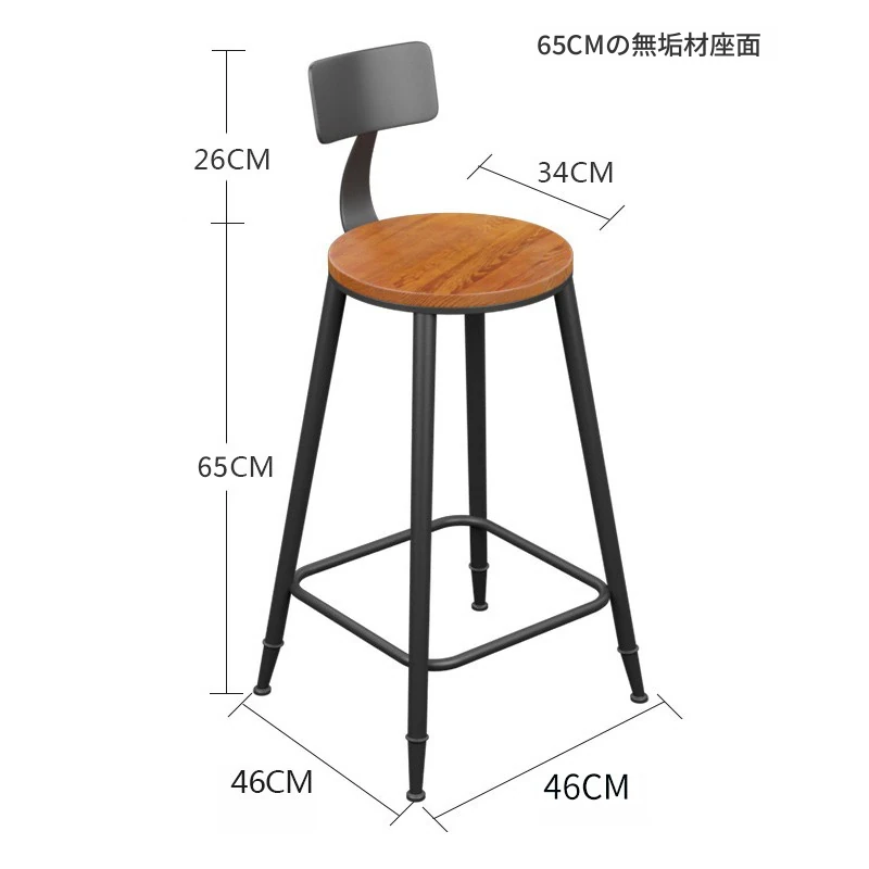 座面高65CM【背もたれ付き 木製】