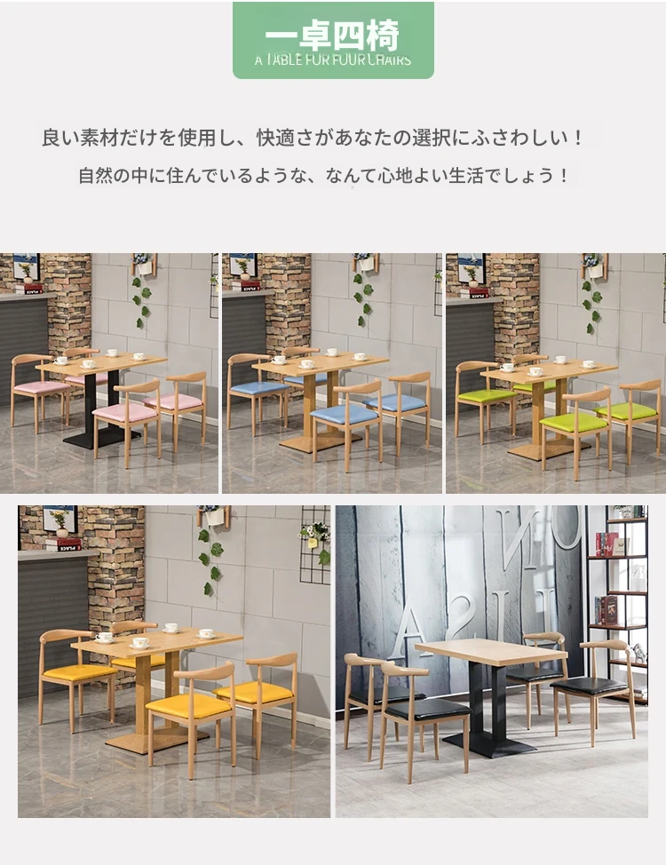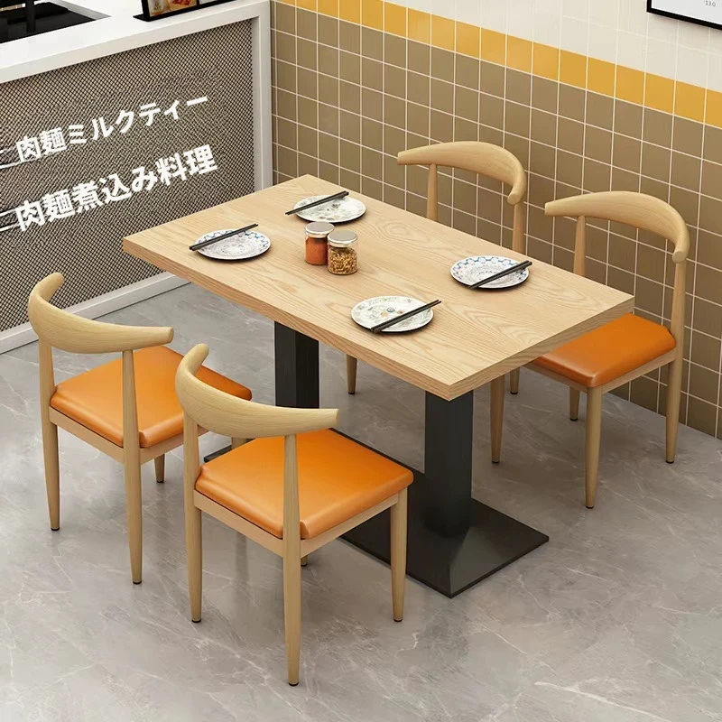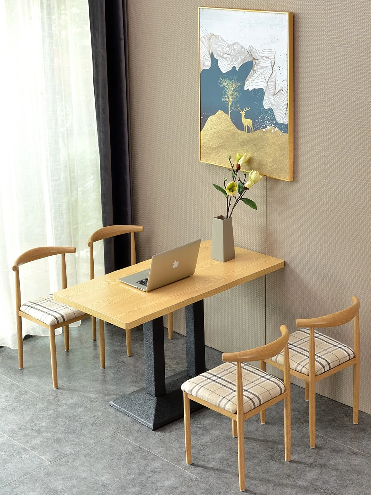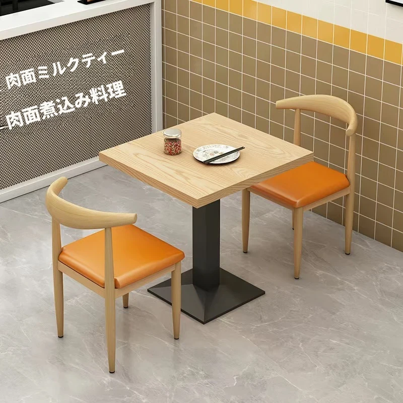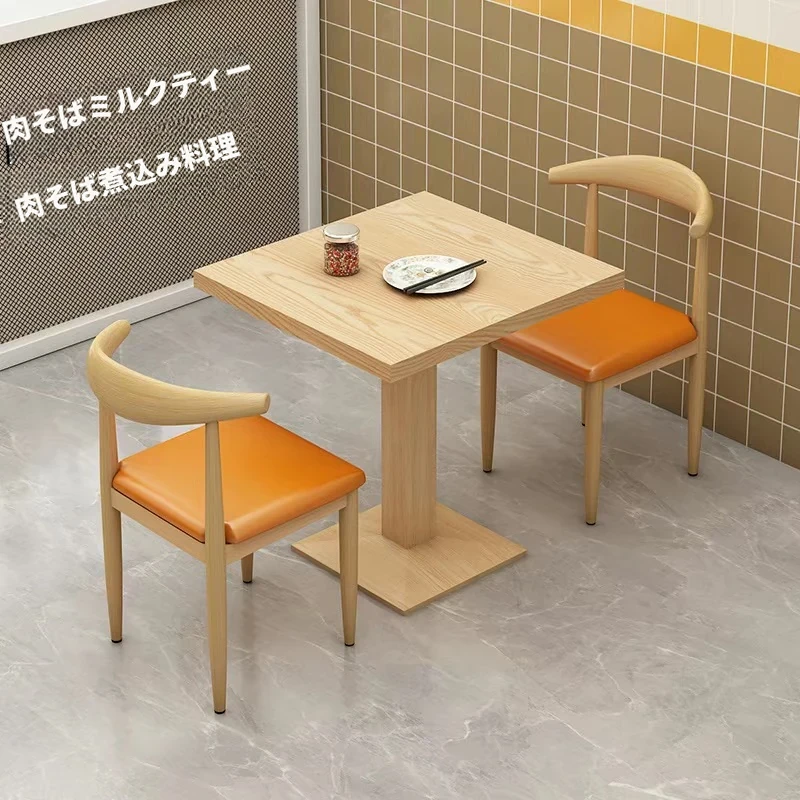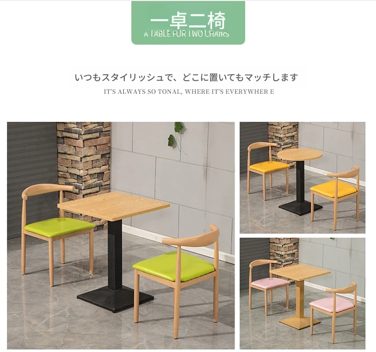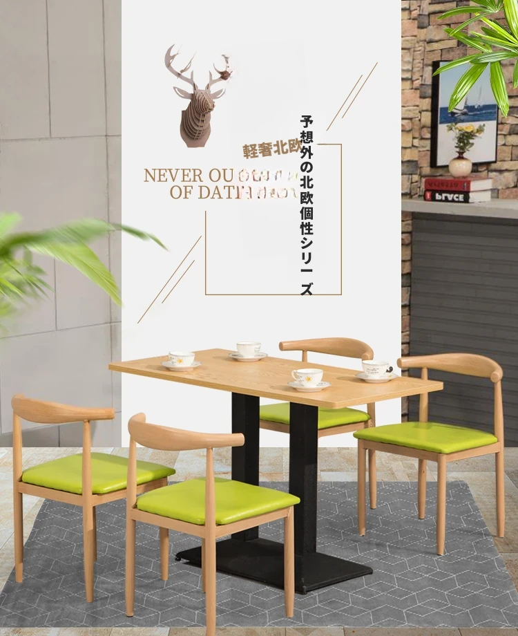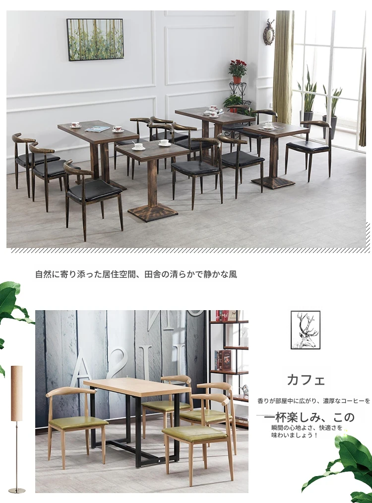アイアン製の牛角チェアと木目調のファストフードテーブルセット!スイーツ、ミルクティー、小吃、カフェに最適な商用デザイン。おしゃれで機能的な組み合わせで、心地よいダイニング体験を提供します。