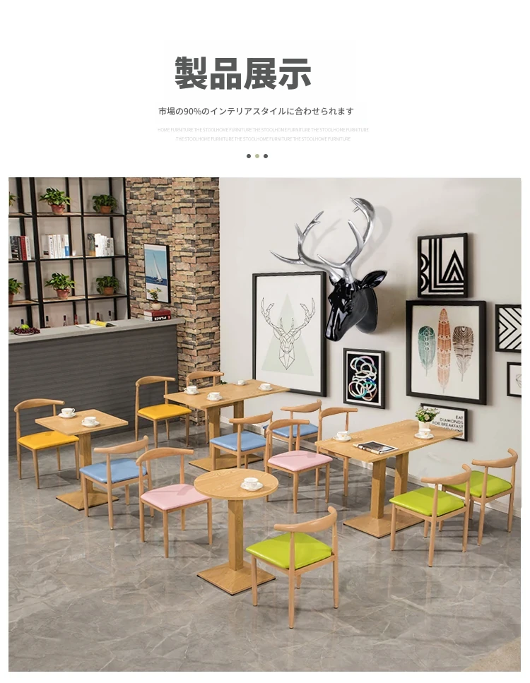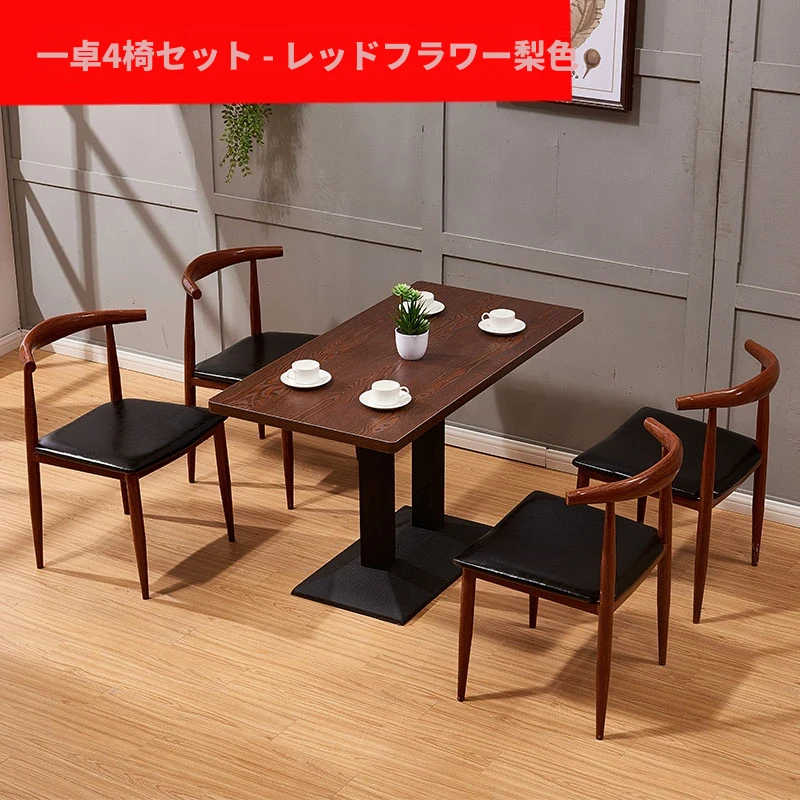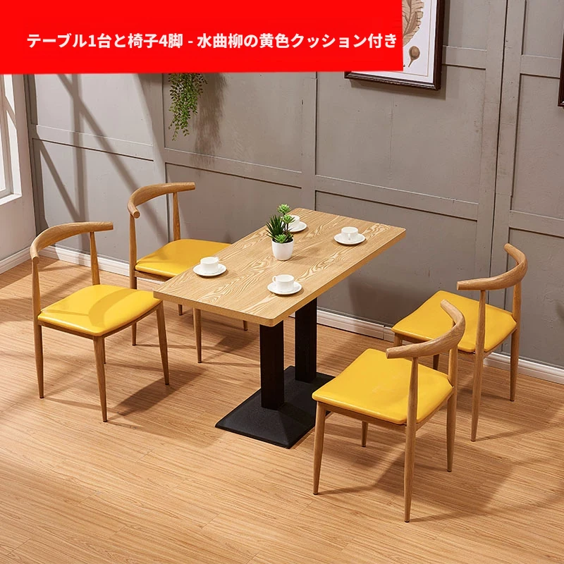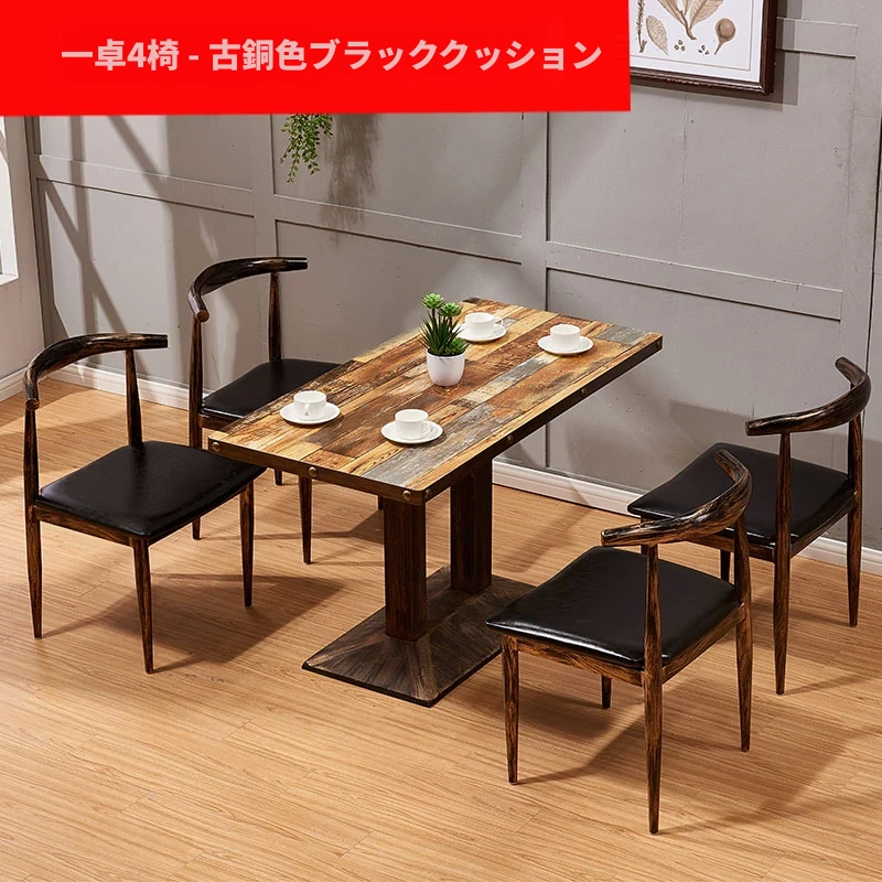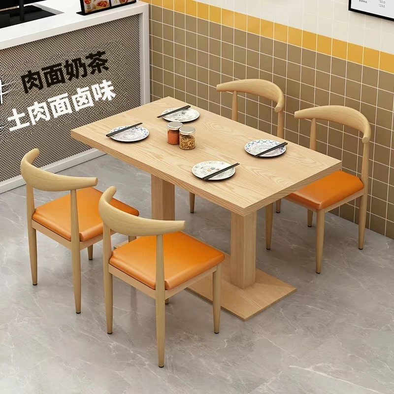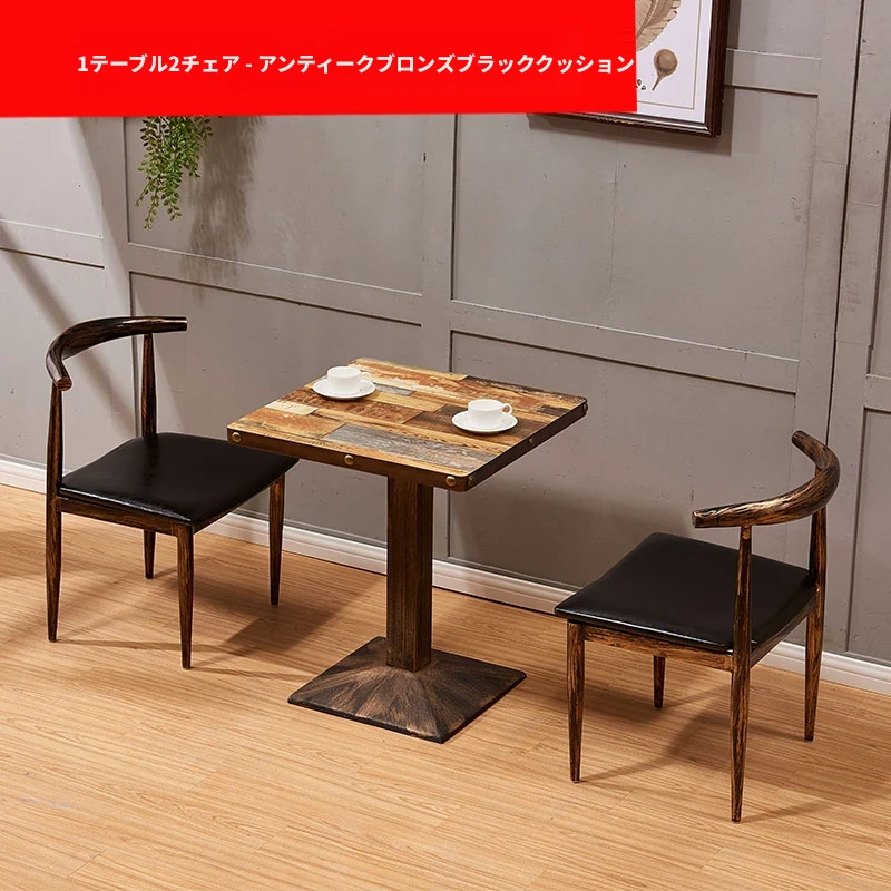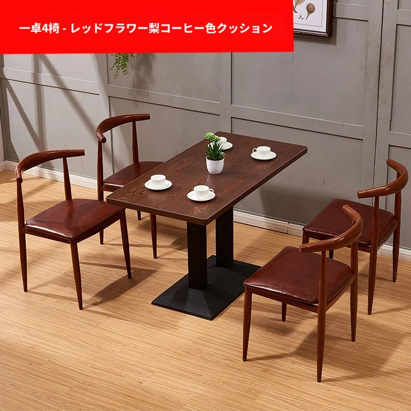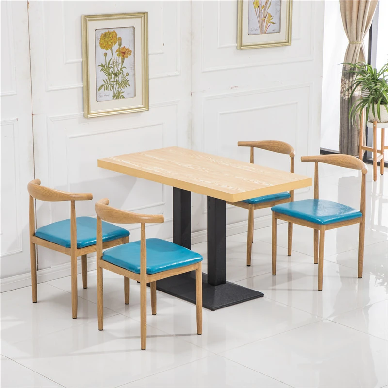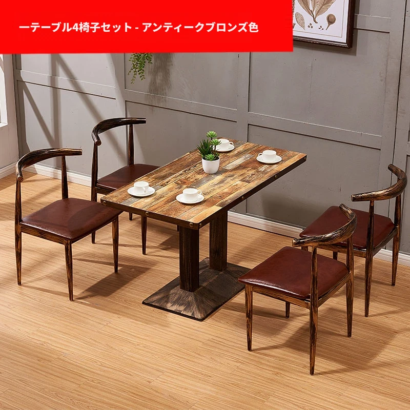 アイアン製の牛角チェアと木目調のファストフードテーブルセット!スイーツ、ミルクティー、小吃、カフェに最適な商用デザイン。おしゃれで機能的な組み合わせで、心地よいダイニング体験を提供します。