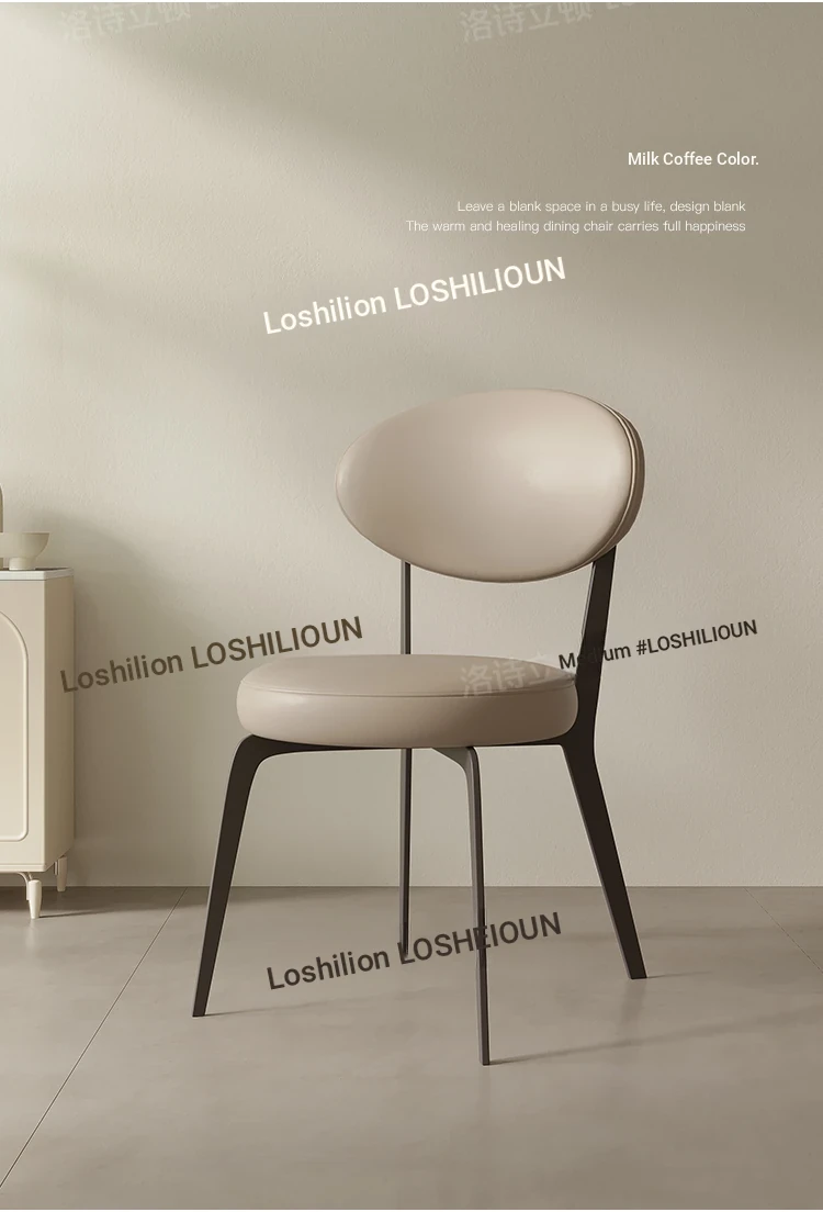 Italian Minimalist Dining Chair - Modern Luxury Round Back Stool for Home, French Cream Style, Perfect for Dining Rooms and Tables