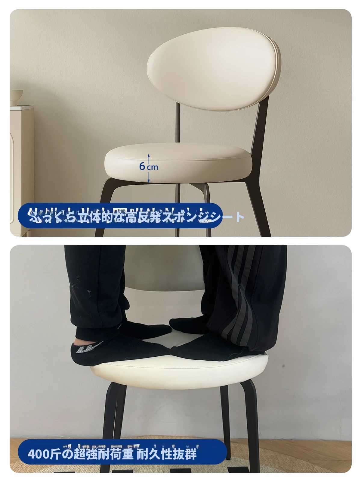 【Aタイプ_アイボリー】Nappa合成皮革黒スチールフレーム