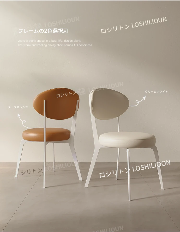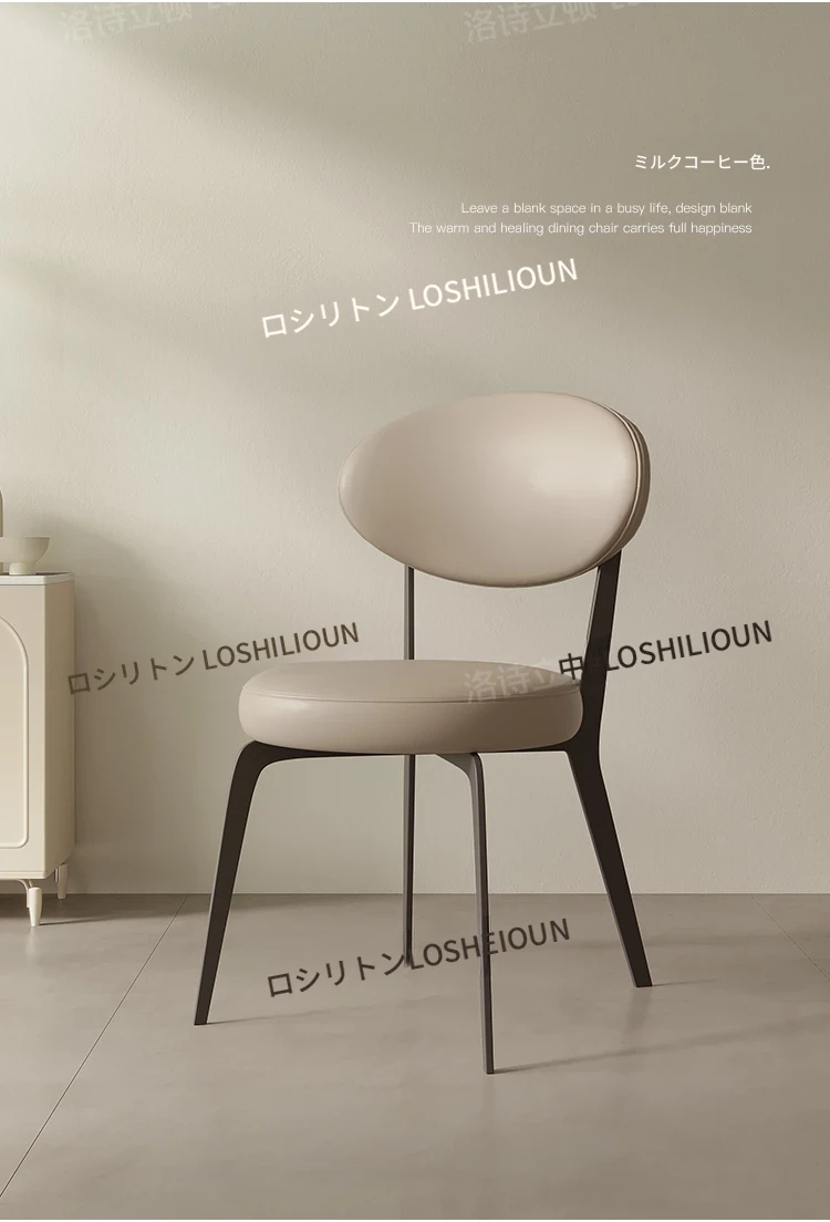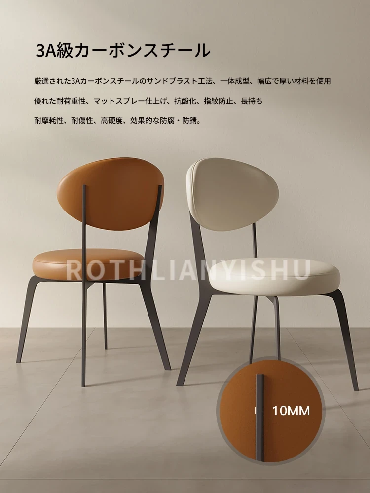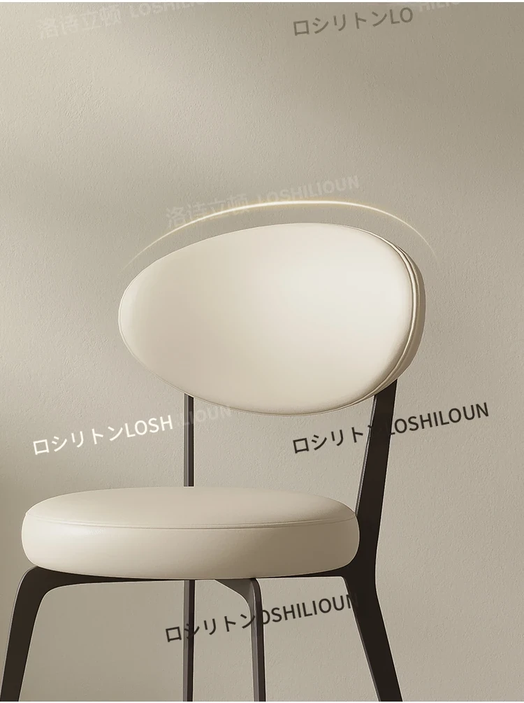 イタリアンミニマリストダイニングチェア - 家庭用の軽やかなラグジュアリー、現代的でシンプルなデザイン。円形の背もたれ付きスツール、フレンチクリーム風の優雅さが食卓を彩ります。