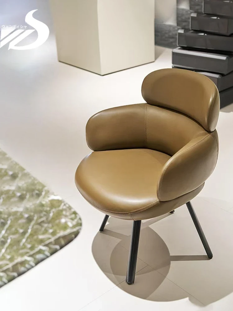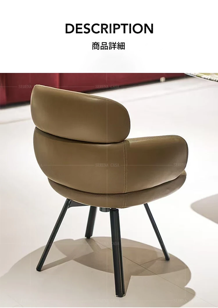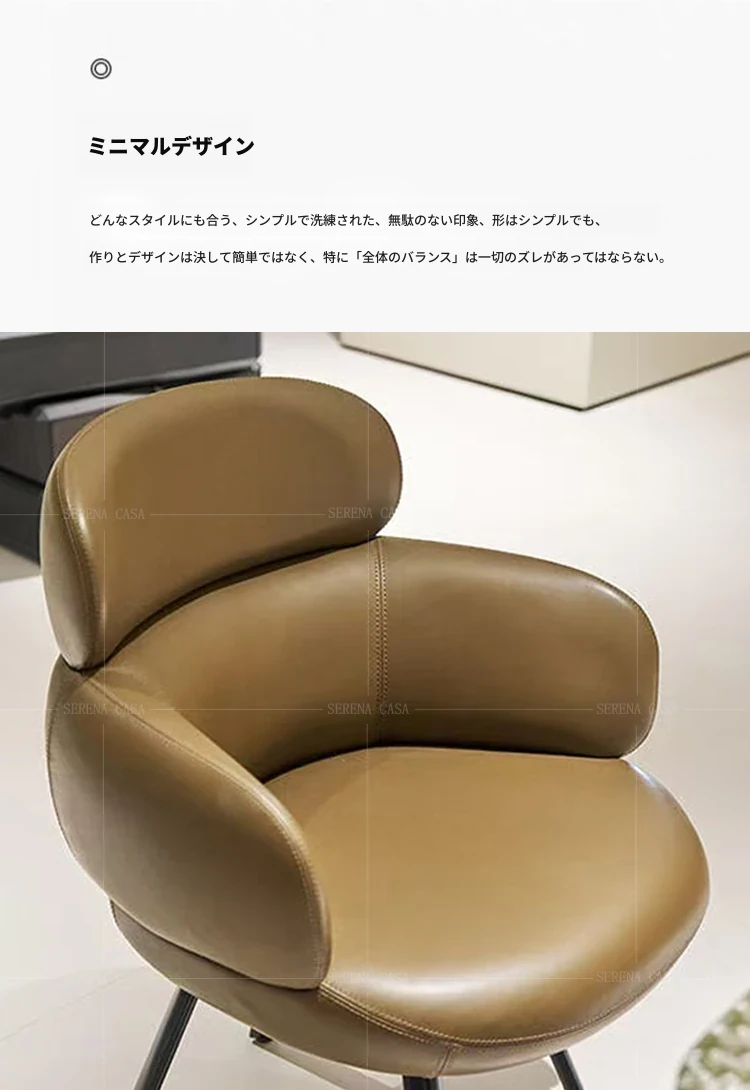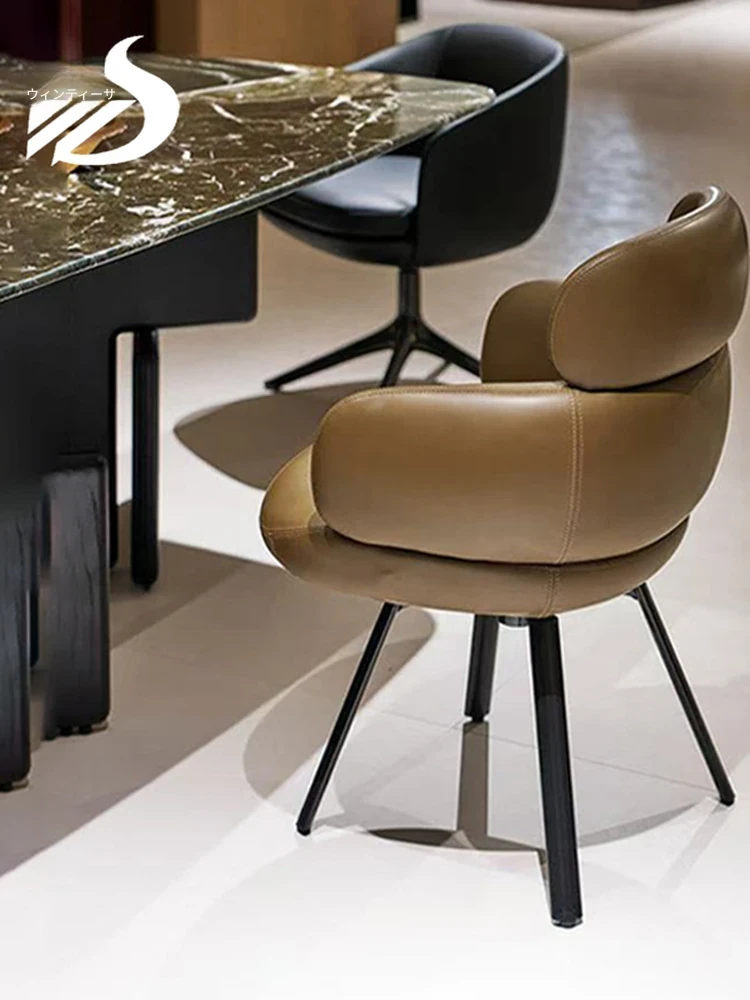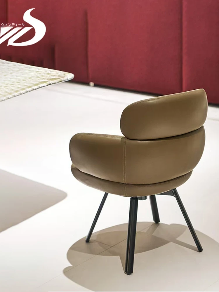 イタリアンミニマルデザインの本革ダイニングテーブルチェア - 家庭用アームレスト付きの回転式シングルチェア、オフィスチェア、バルコニーレジャーチェアに最適!快適な座り心地と洗練されたスタイルをお楽しみください。
