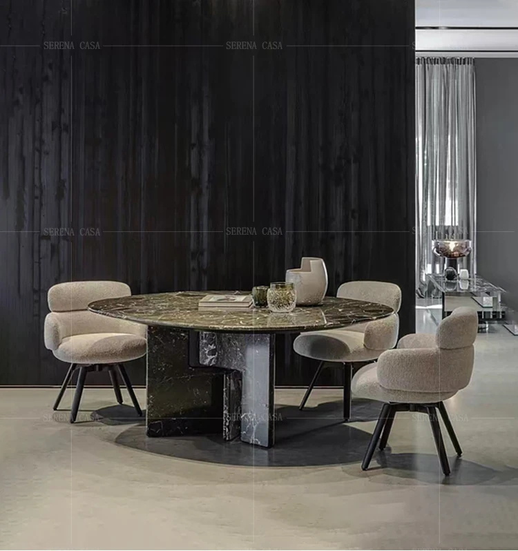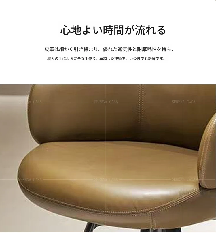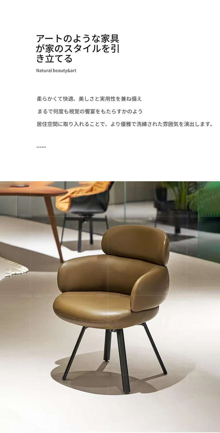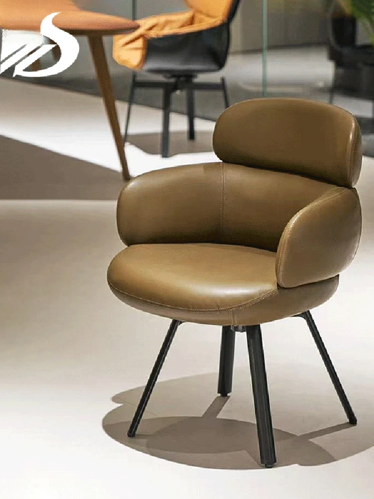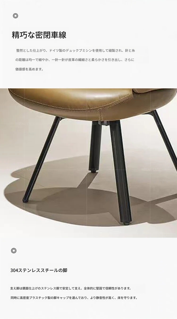 イタリアンミニマルデザインの本革ダイニングテーブルチェア - 家庭用アームレスト付きの回転式シングルチェア、オフィスチェア、バルコニーレジャーチェアに最適!快適な座り心地と洗練されたスタイルをお楽しみください。