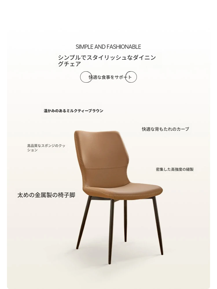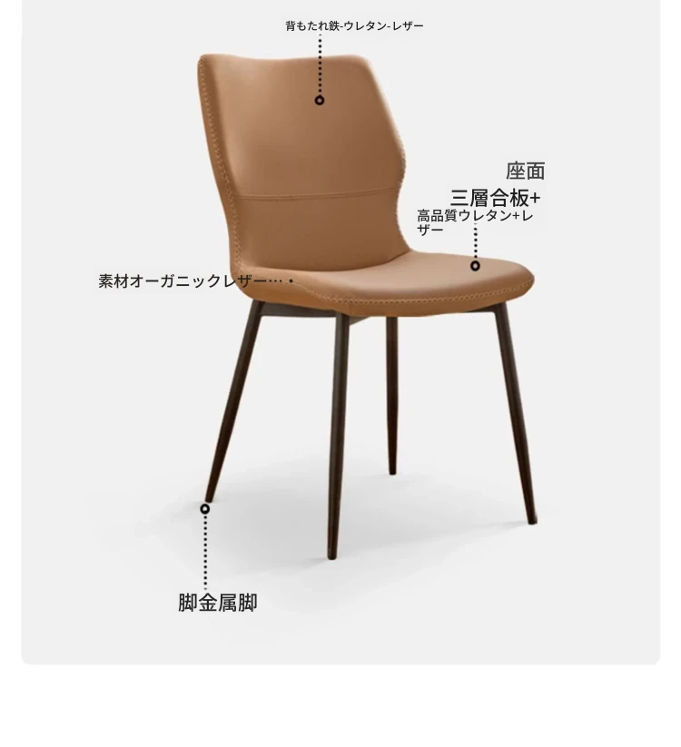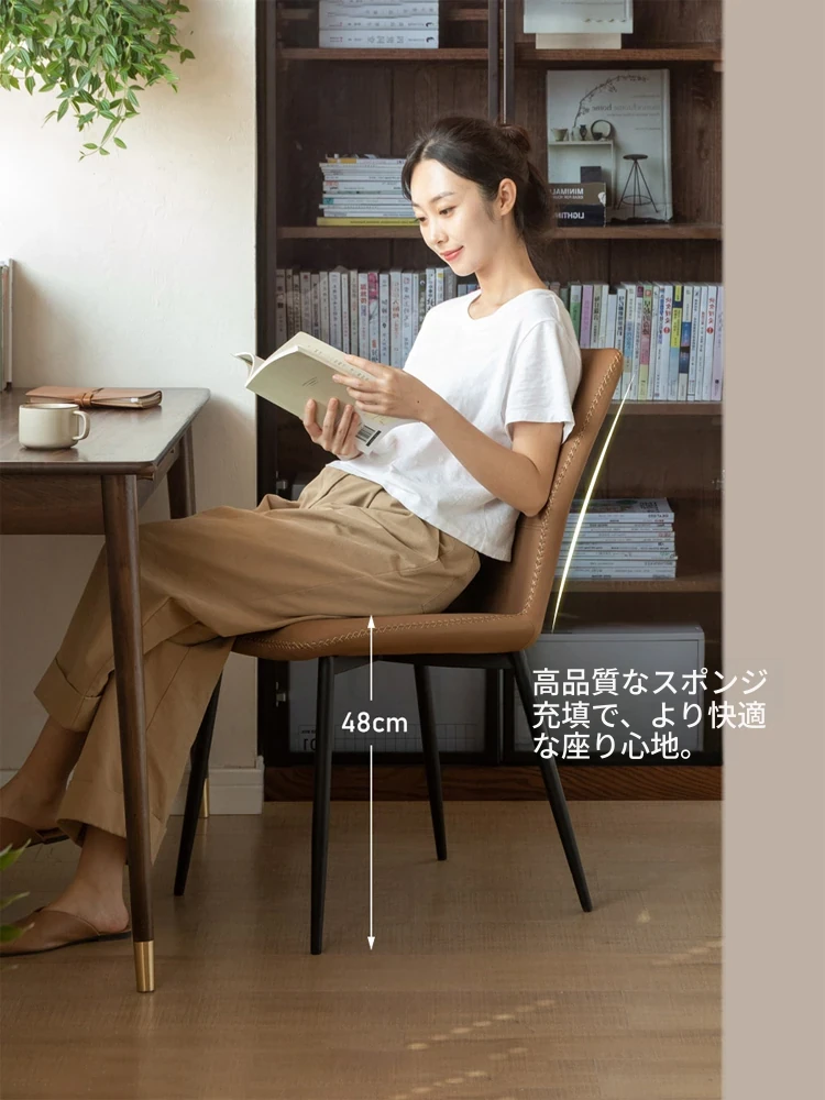 イタリアンミニマリズム鉄製ダイニングチェア|背もたれ付きで快適|軽やかな高級感|書斎や寝室にも最適なソフトパッケージデザイン|シンプルでスタイリッシュなダイニングテーブルチェア