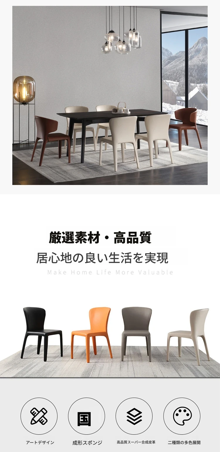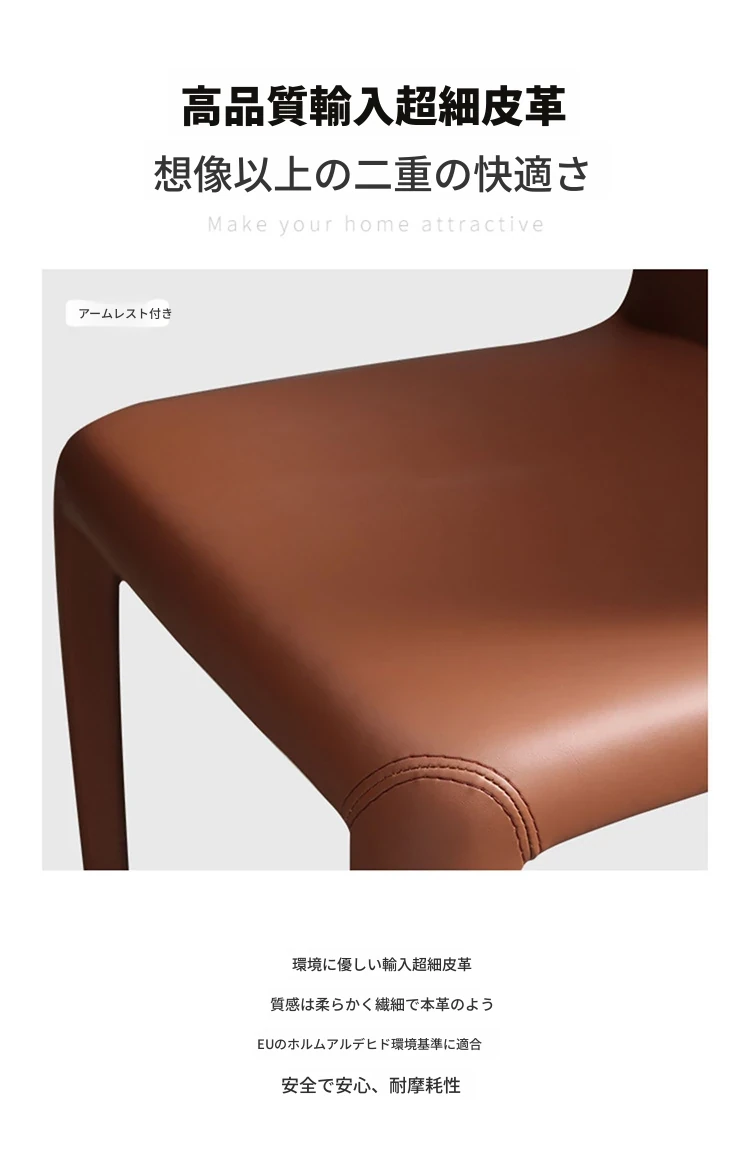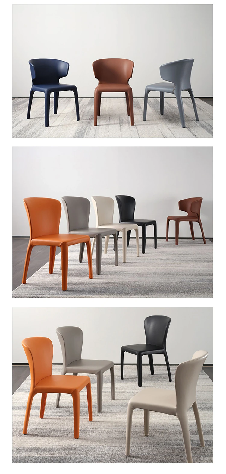 イタリアンスタイルの軽奢華でモダンなダイニングチェア - 家庭用・レストラン用の背もたれ付き、低めの形状、ラテックス素材の高級レザー椅子。優雅なデザインで、くつろぎのひとときを提供します。