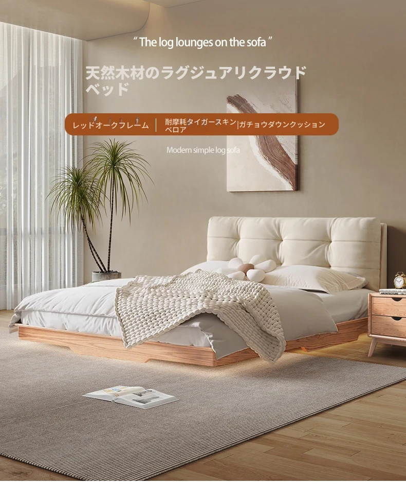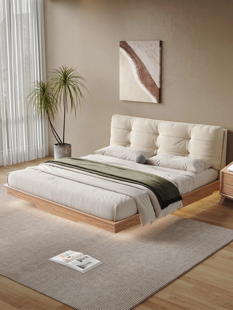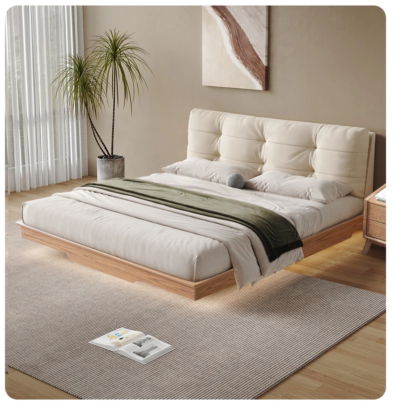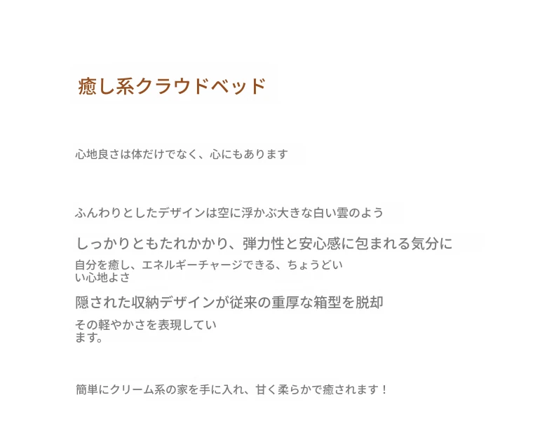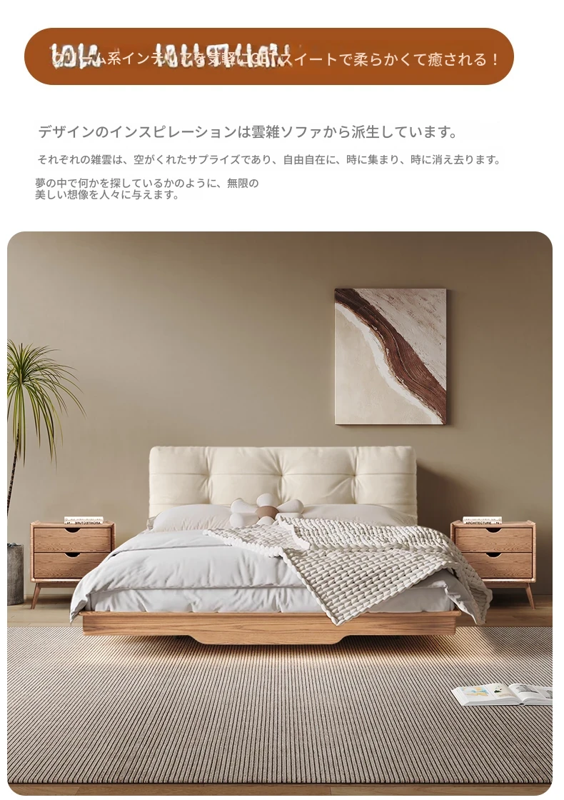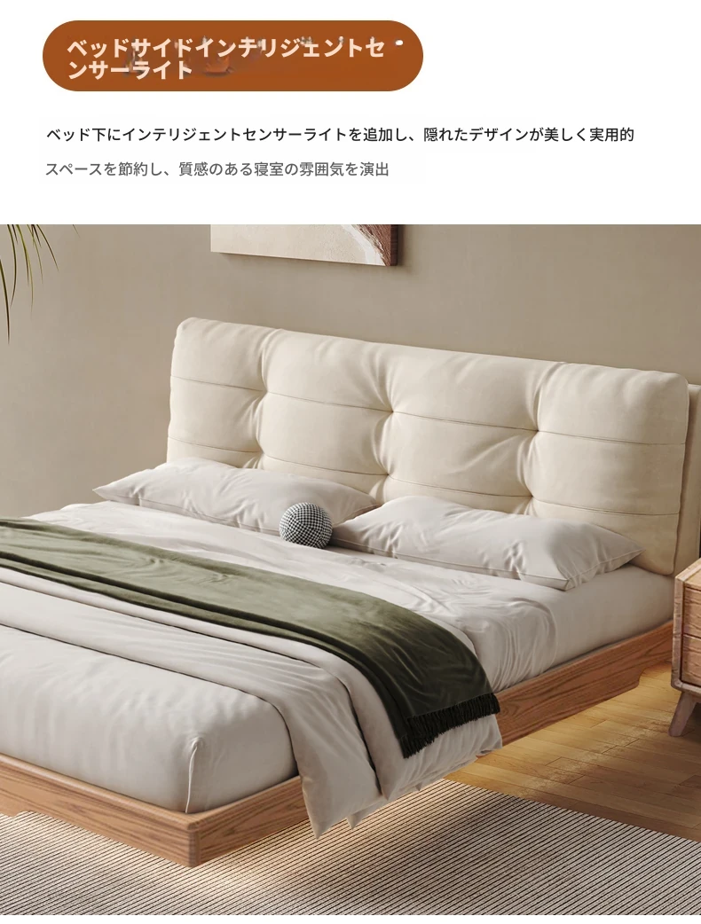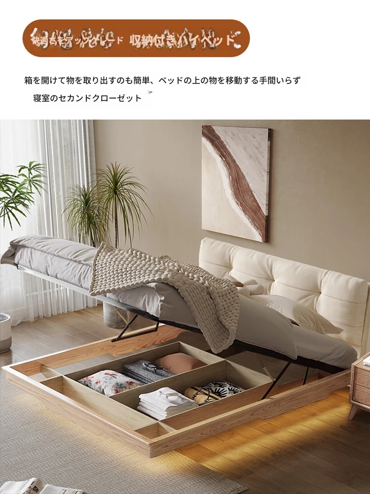 北欧風シンプル美学!1.8メートルダブル用浮遊式クッション付き収納ベッド - 働きやすさとスタイルの完璧な融合をご自宅に。