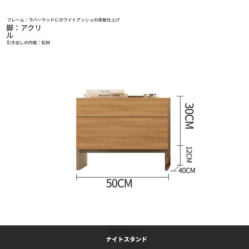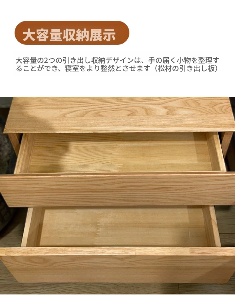 アッシュ材ベッド ソフトパックなし(2cm厚松材プランク)+22cmラテックススプリングマットレス+ナイトテーブル*1